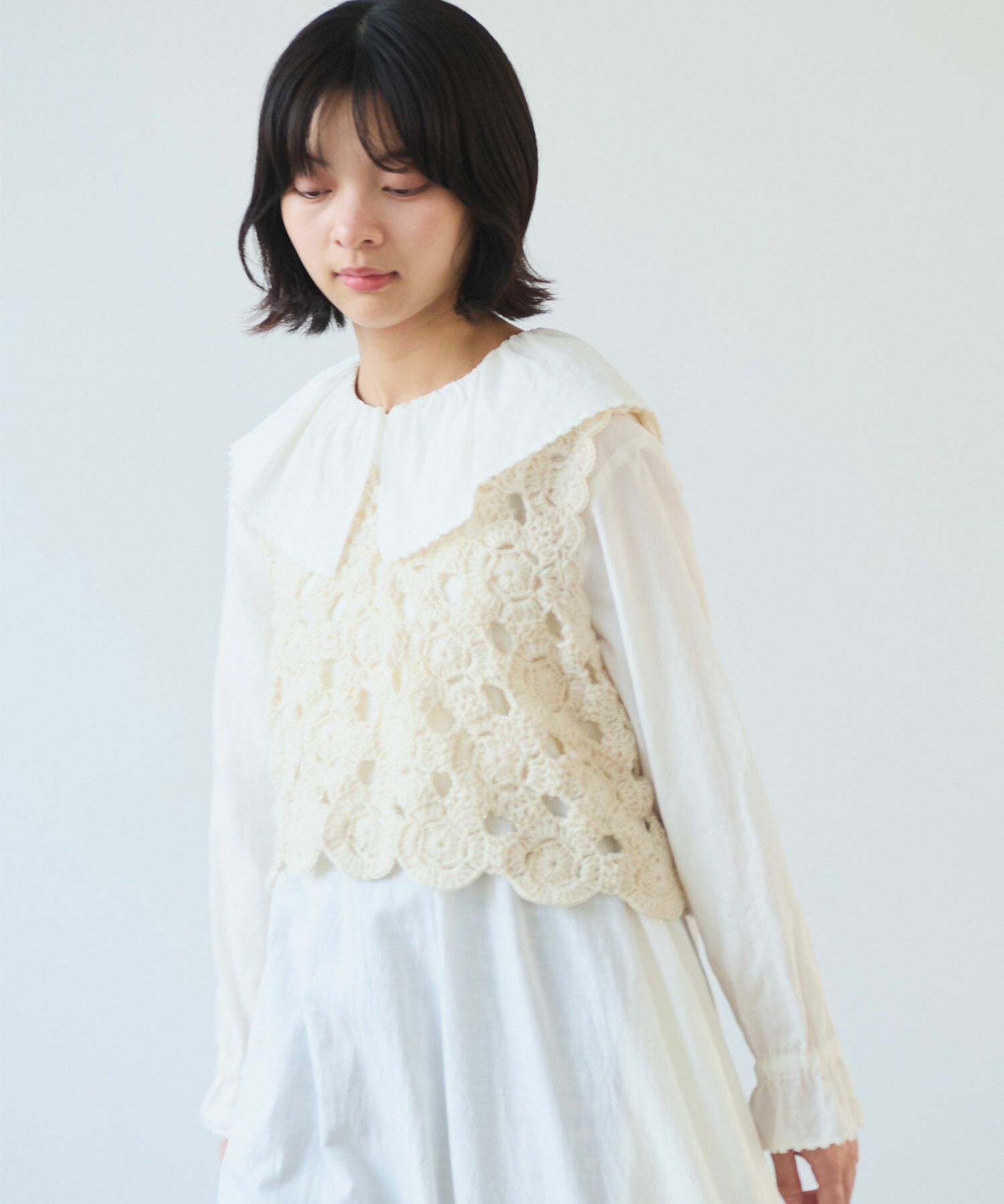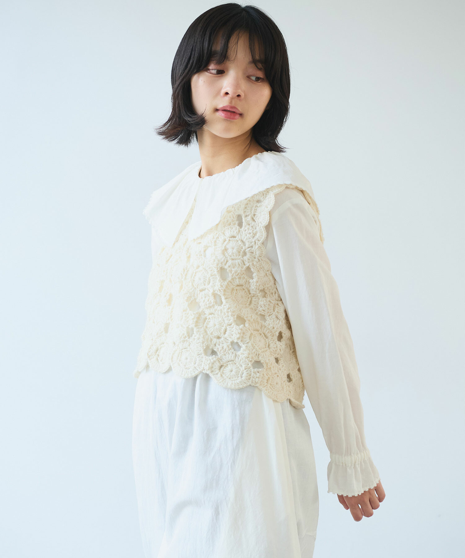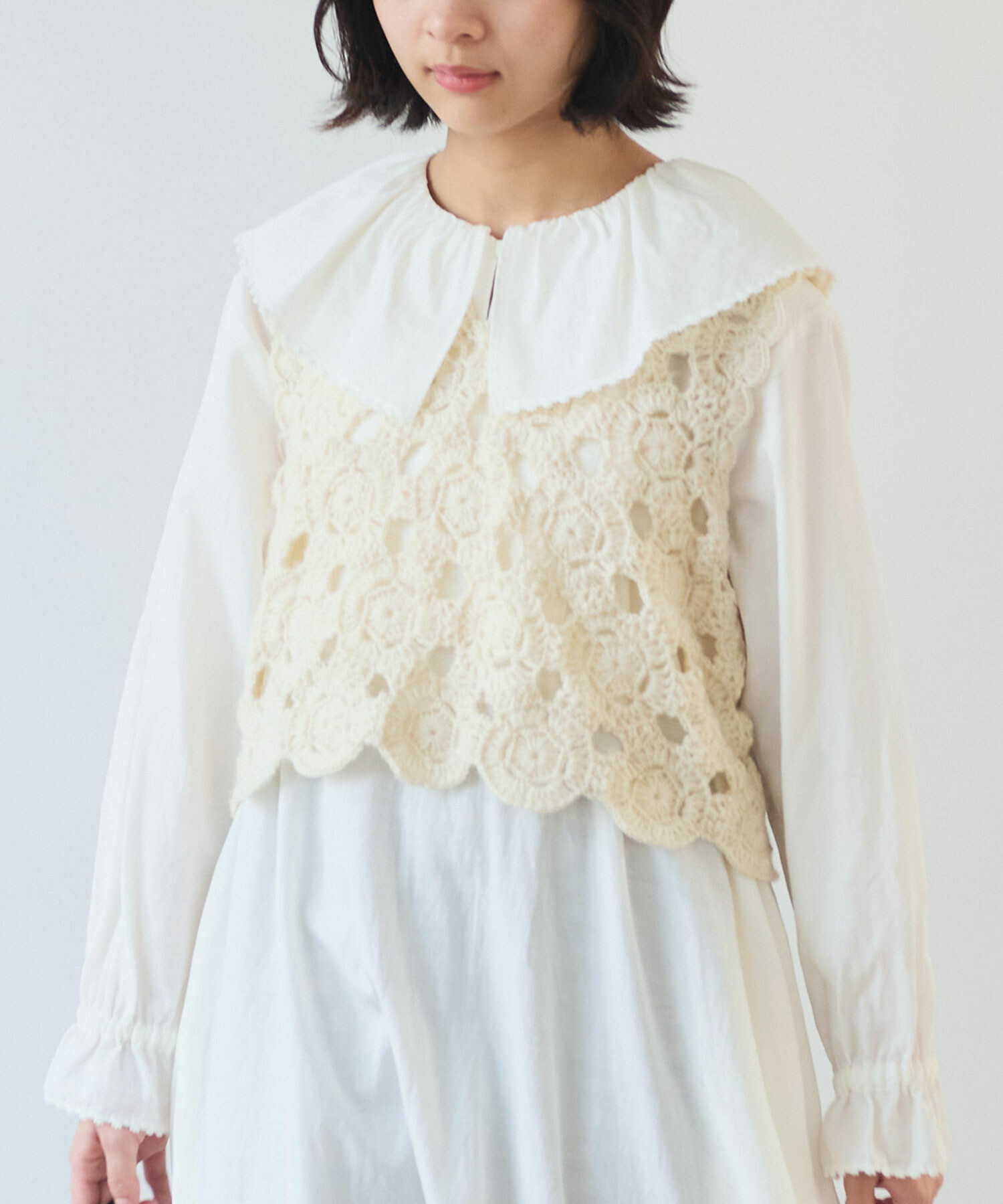 手編みならではの細やかな技術が光る1枚です。