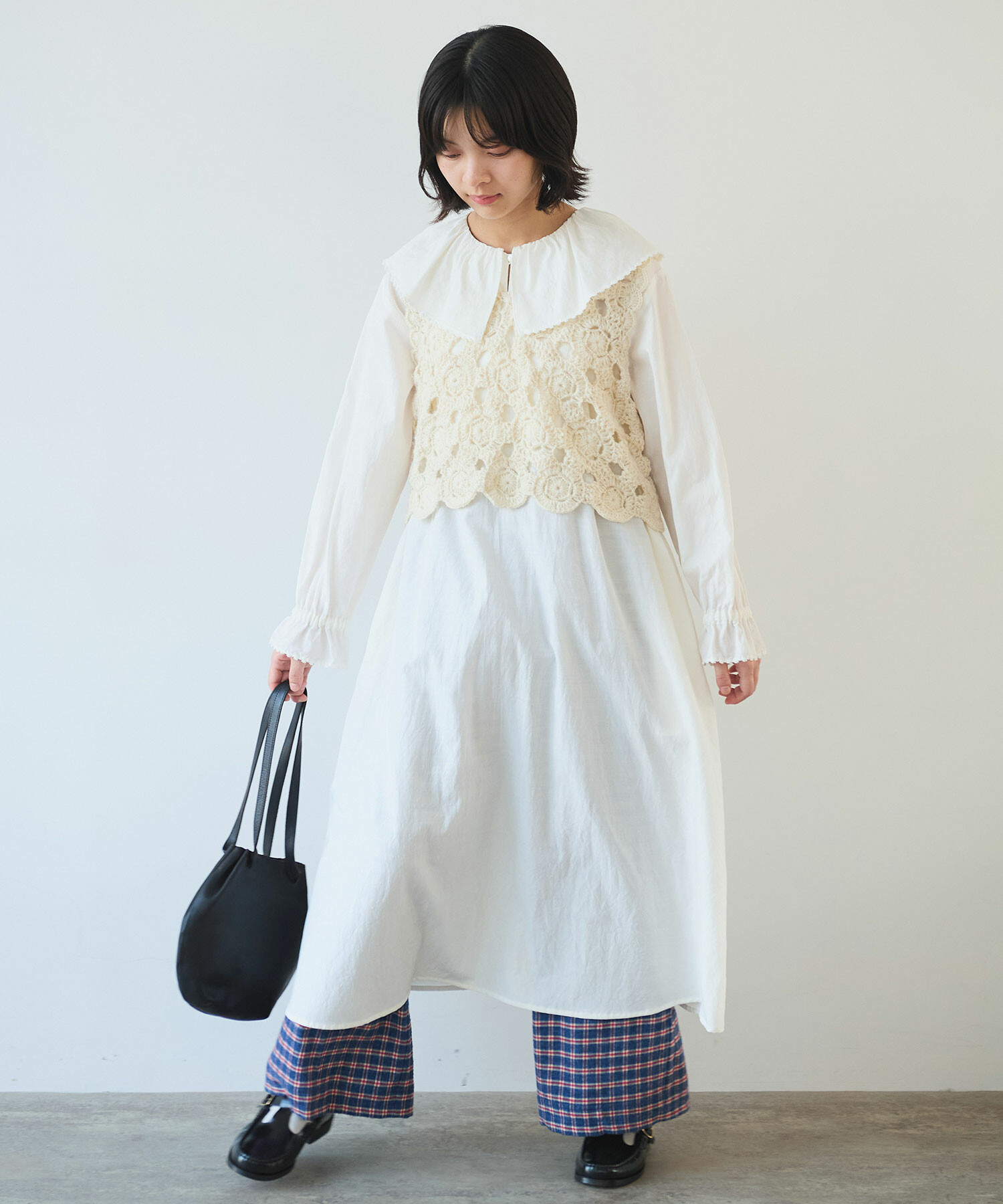 カットソーやワンピースの上から合わせて、