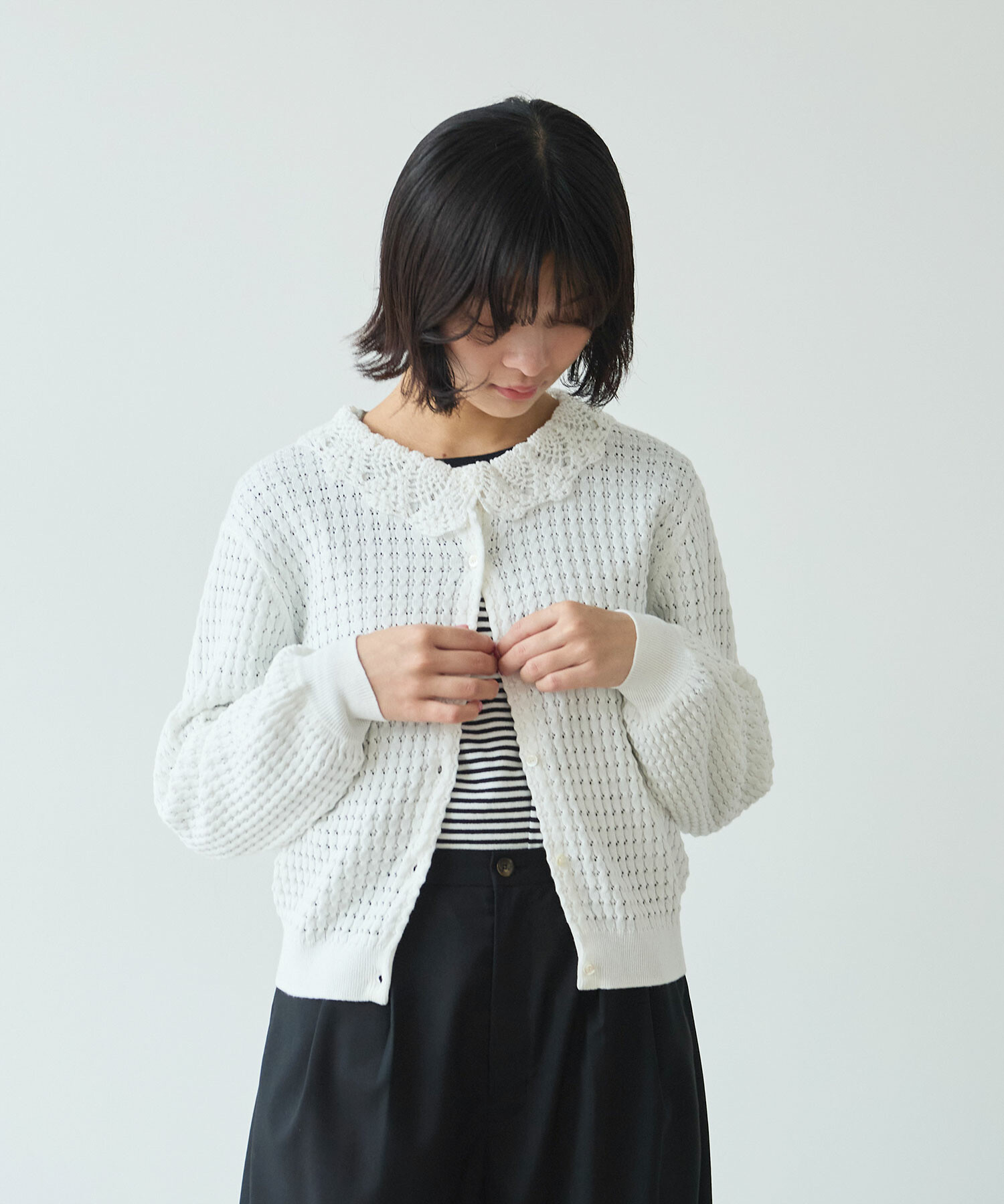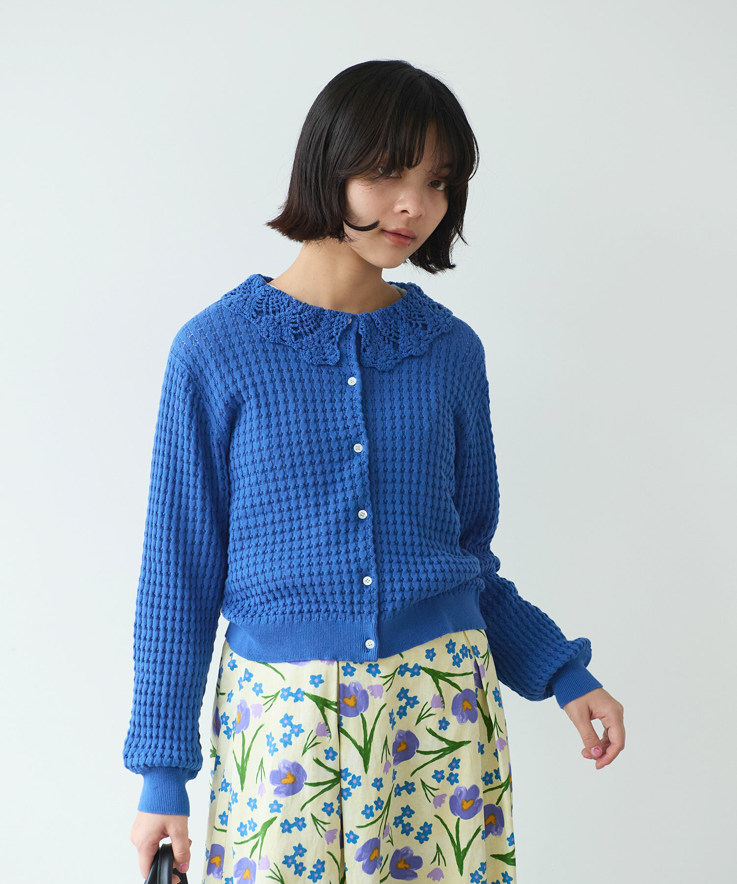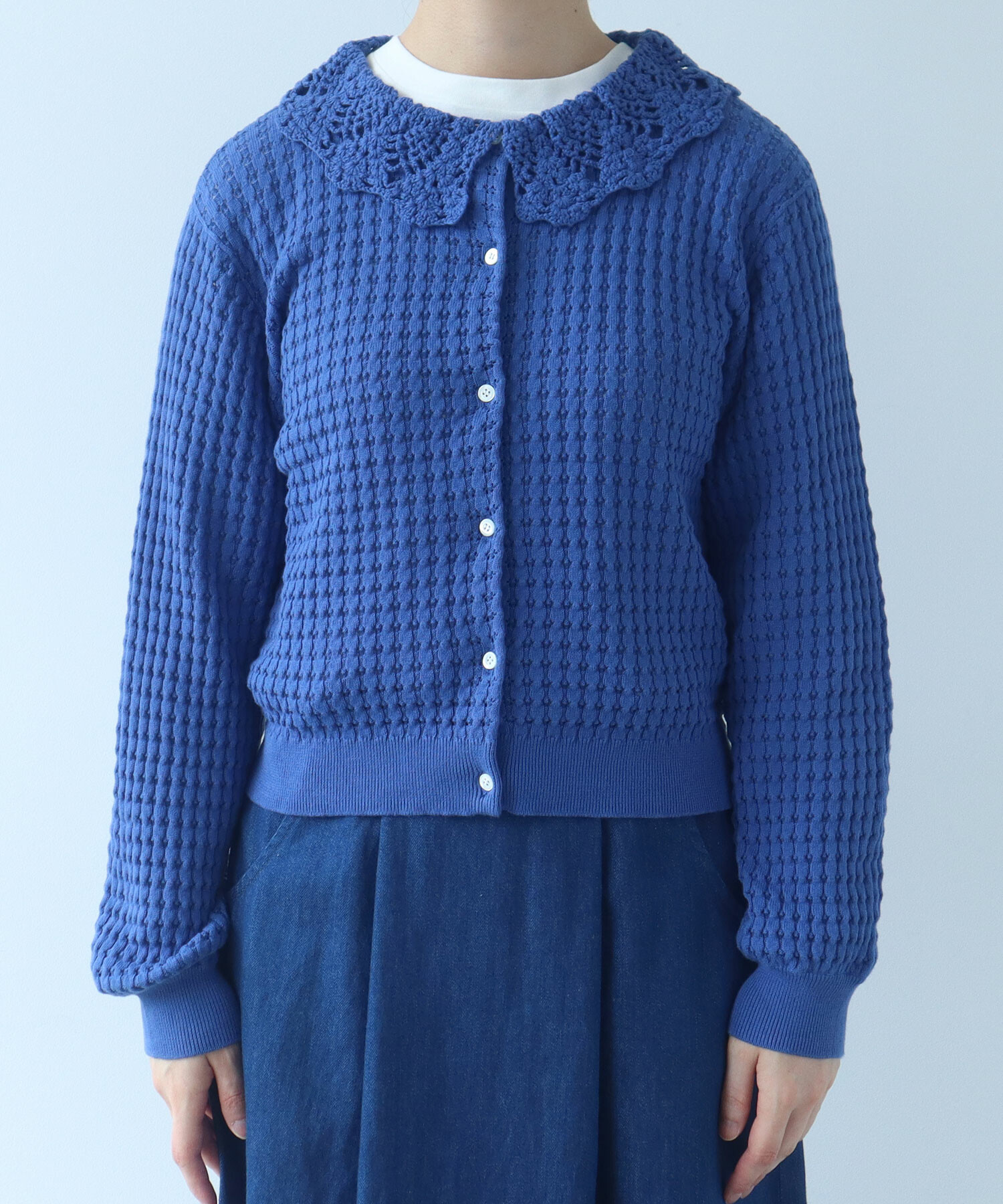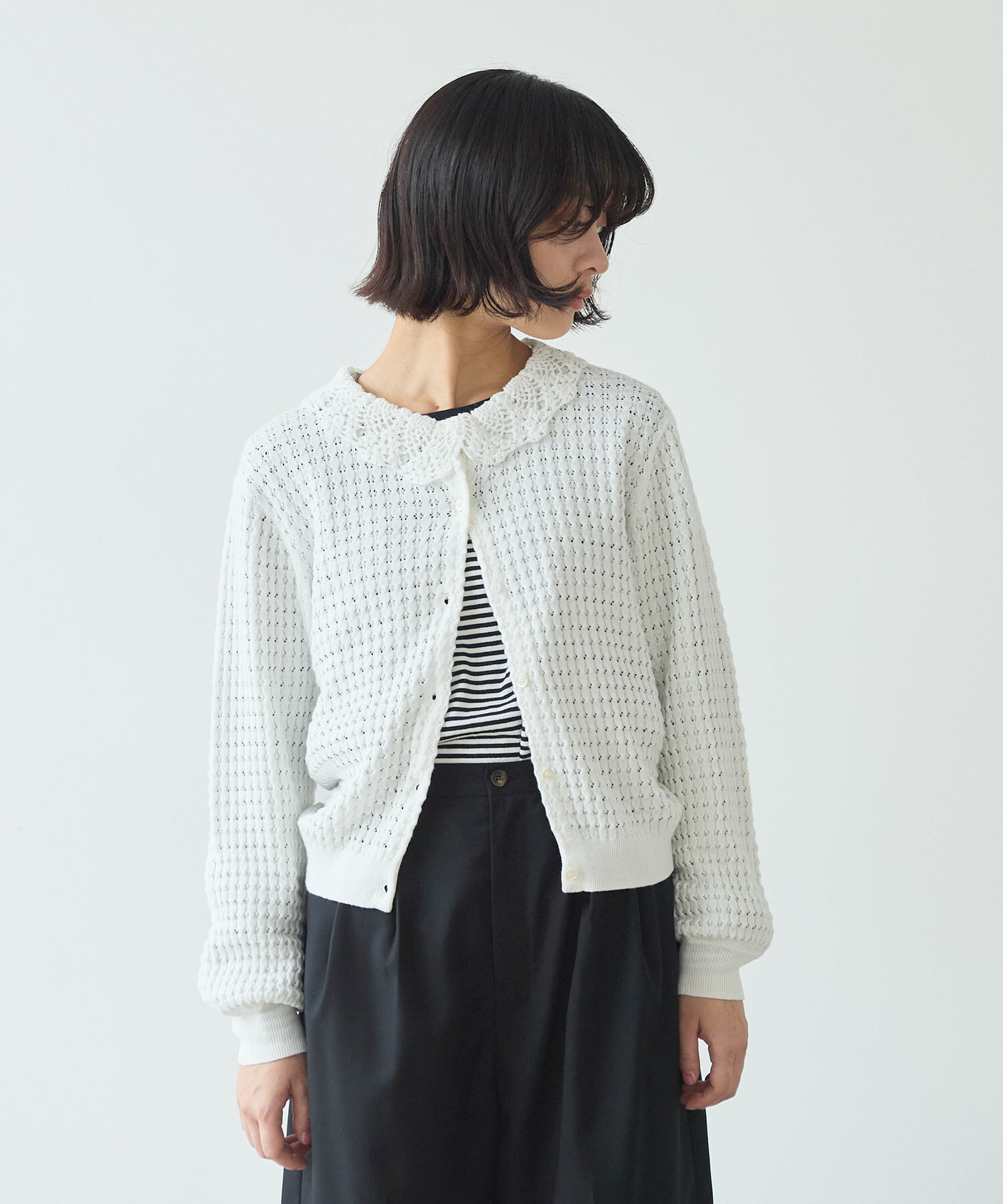 ・この製品のカギ針部分は手編みの為、一点一点多少柄の表情が異なりますので、御了承下さい。 乱暴に扱いますと破損しやすく、引掛けや引きつれが起こりやすいので着用中、着脱時には十分御注意下さい。