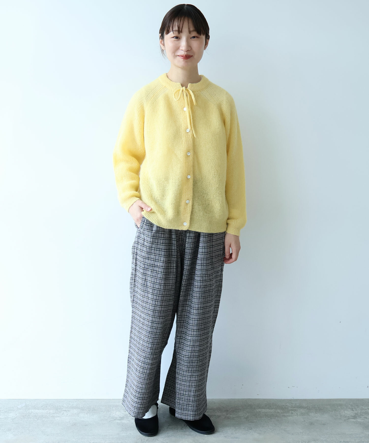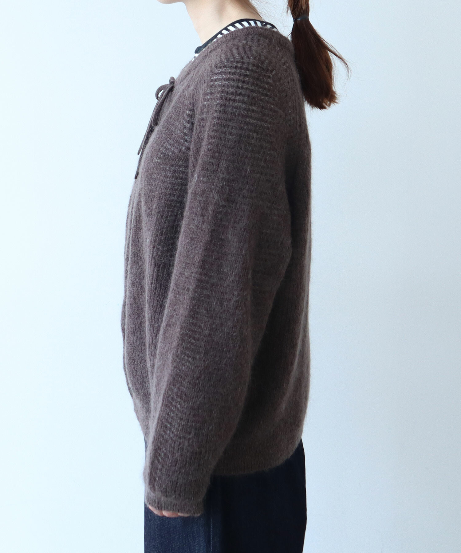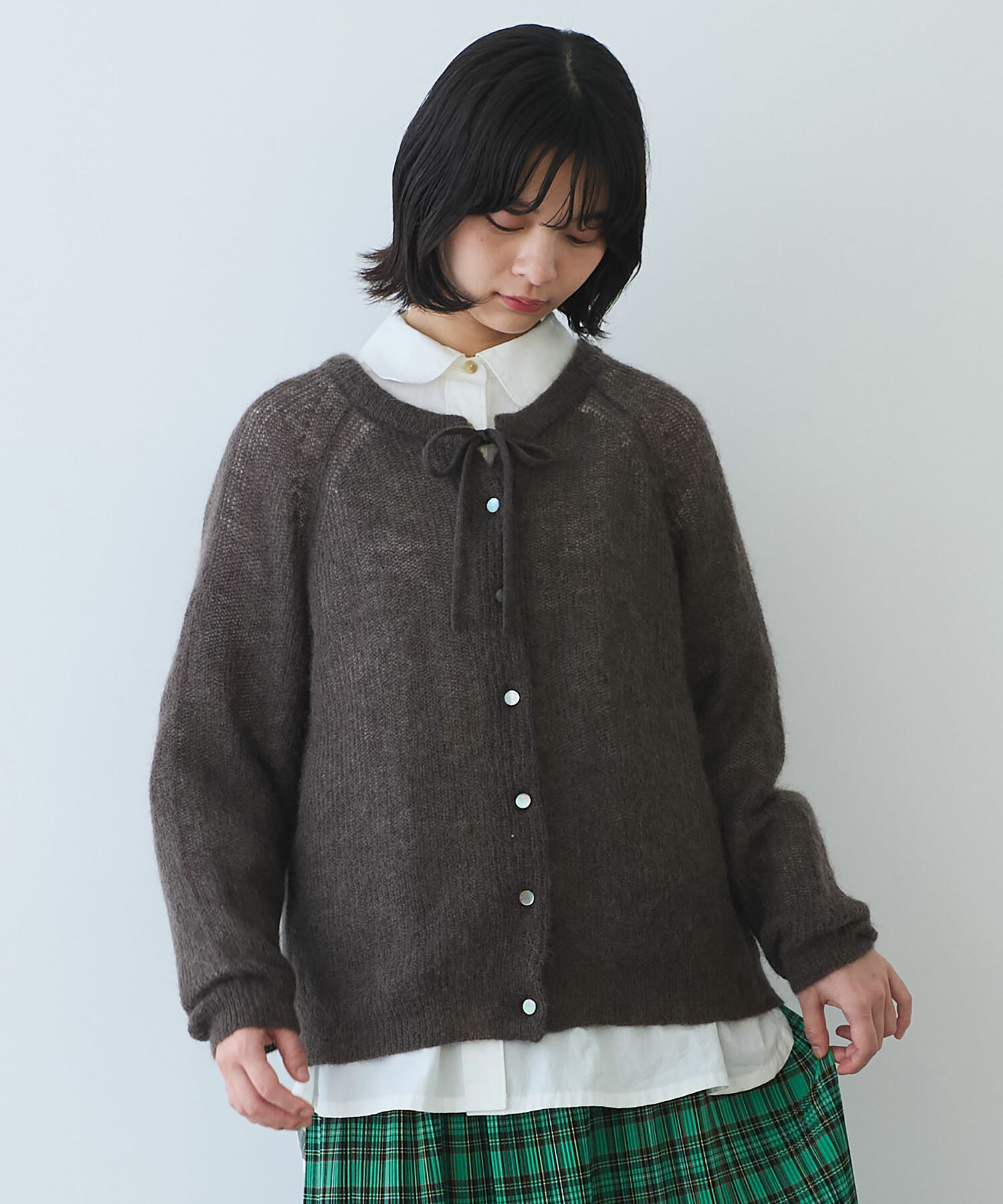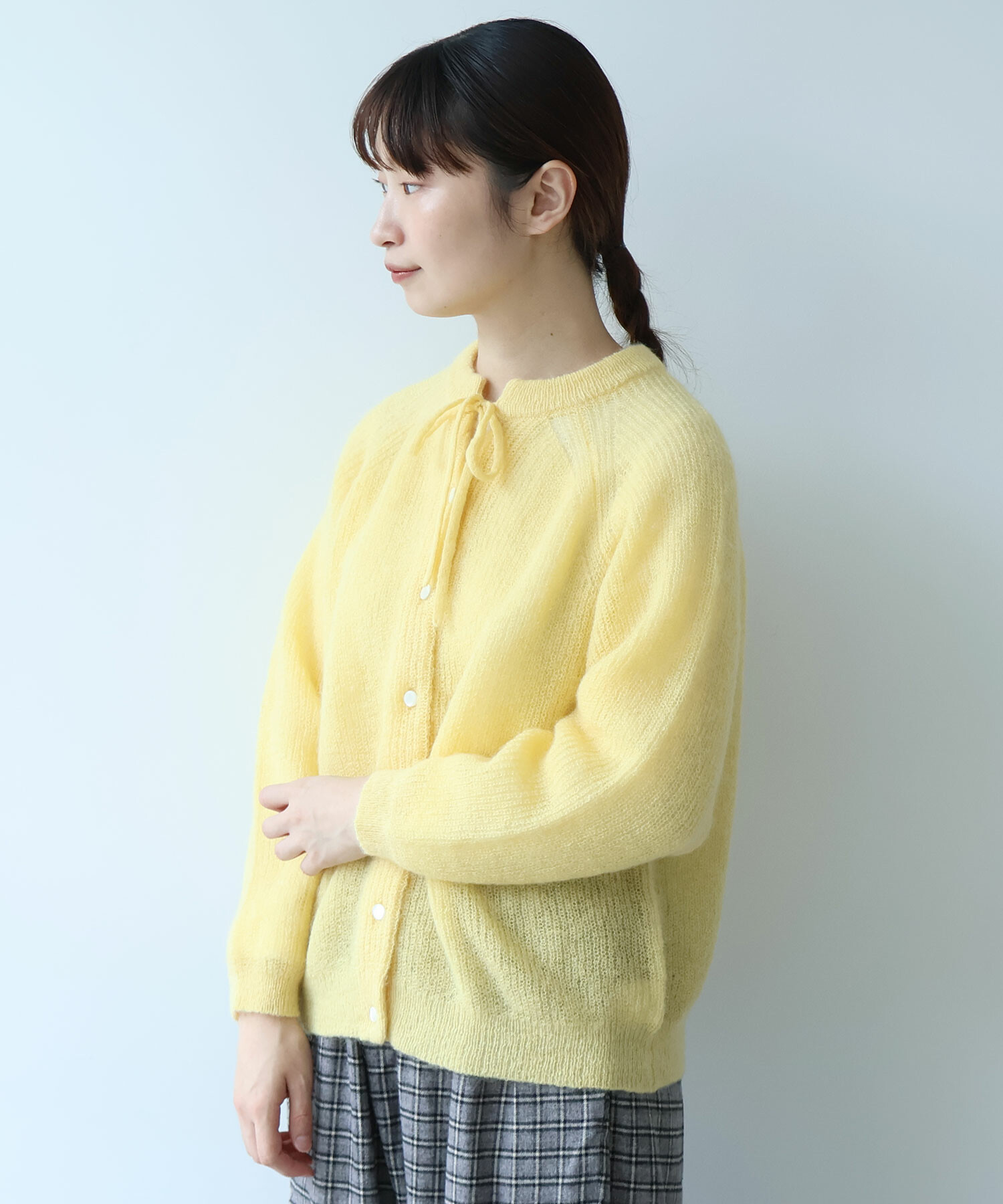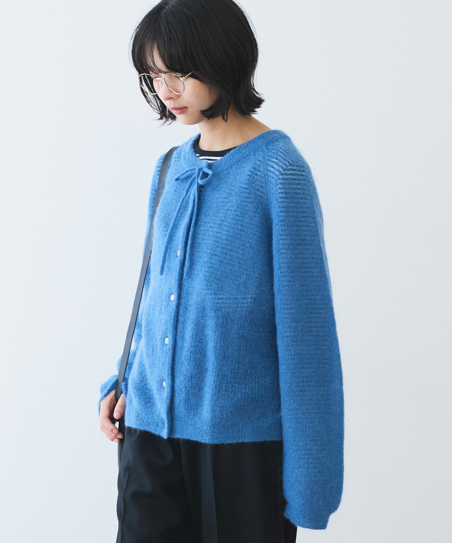 首元にはリボンのアクセントを添えて、さりげなく可愛さもプラス。