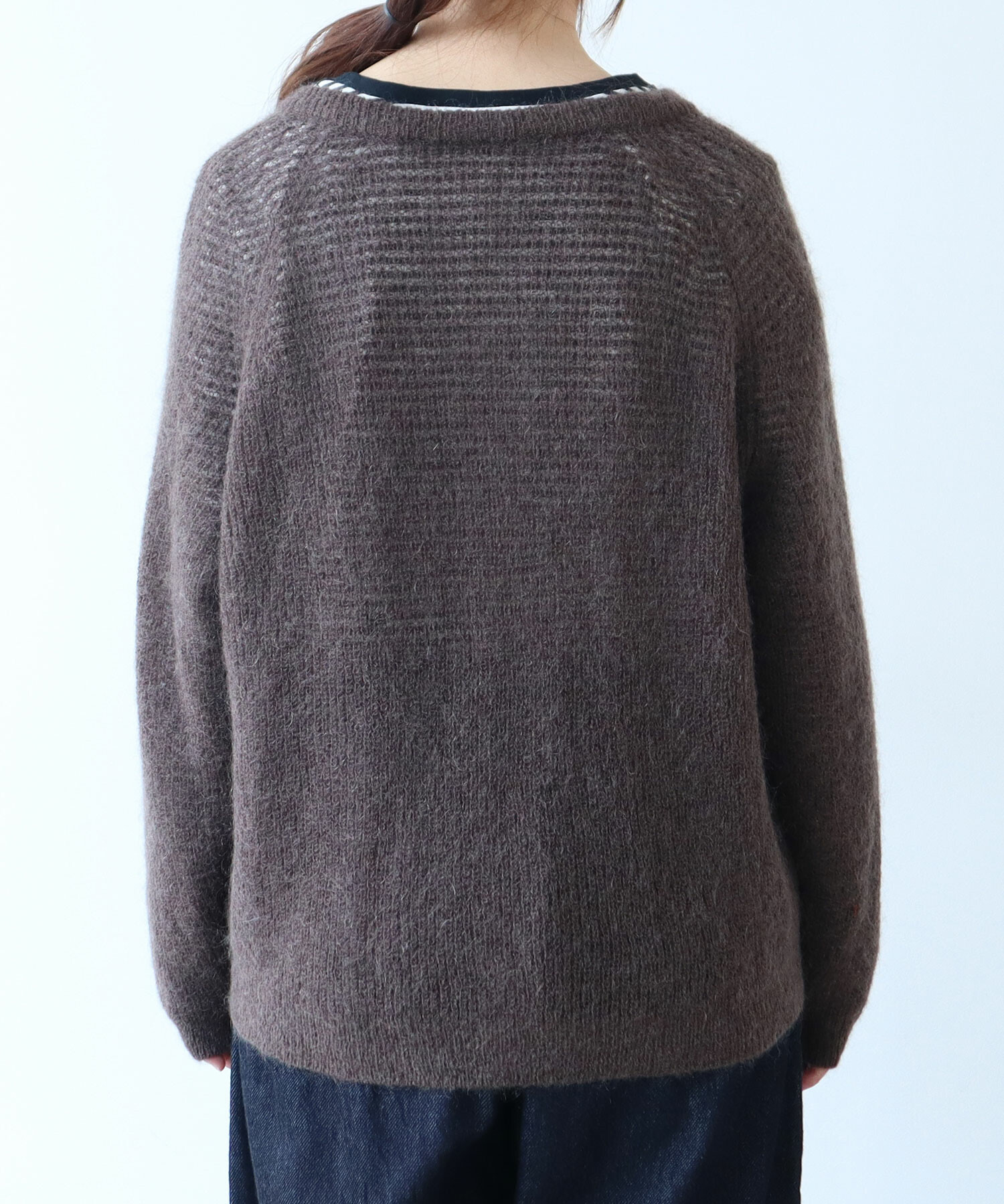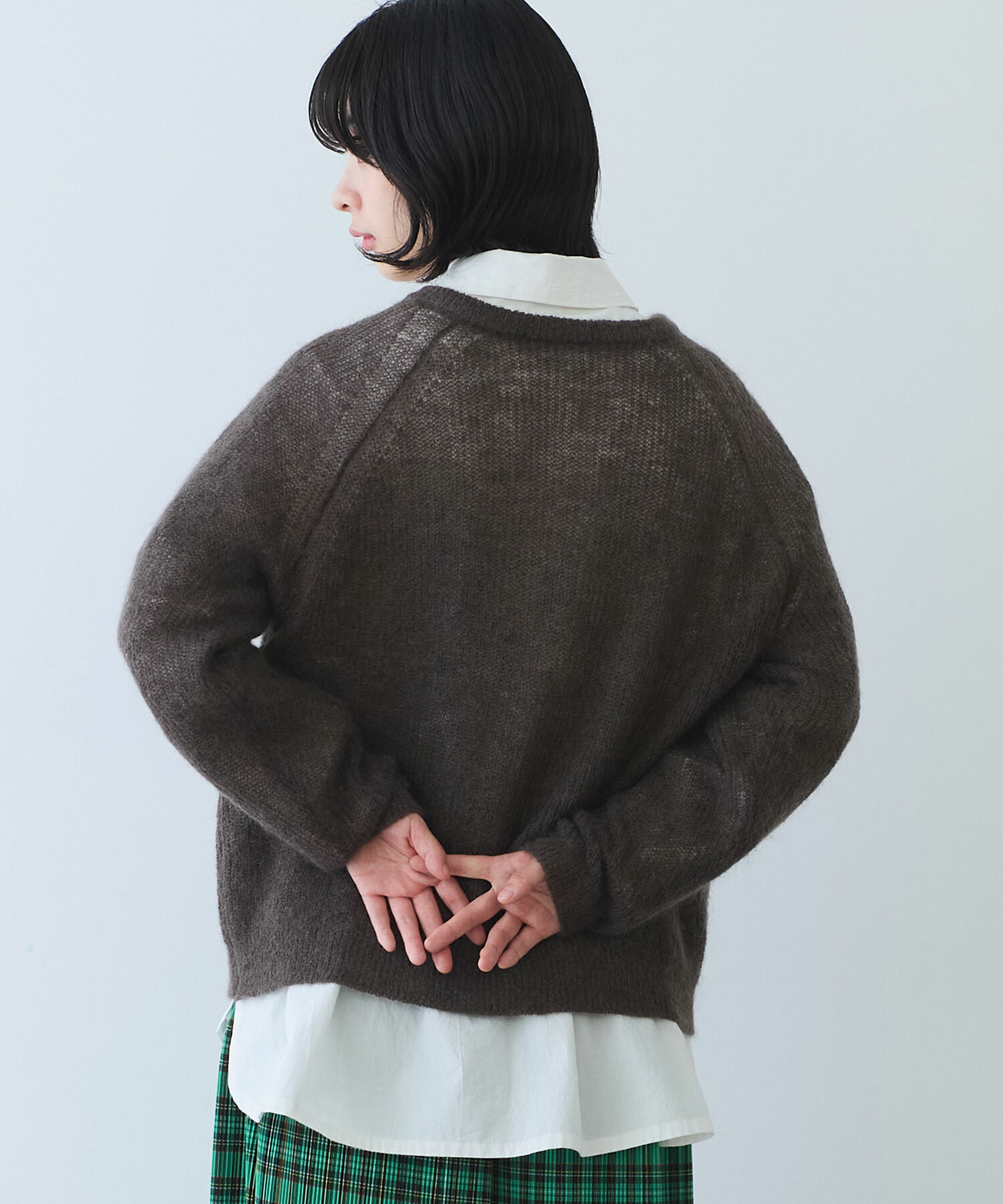 ラグランスリーブで肩まわりはゆったり、インナーを選ばず着られます。