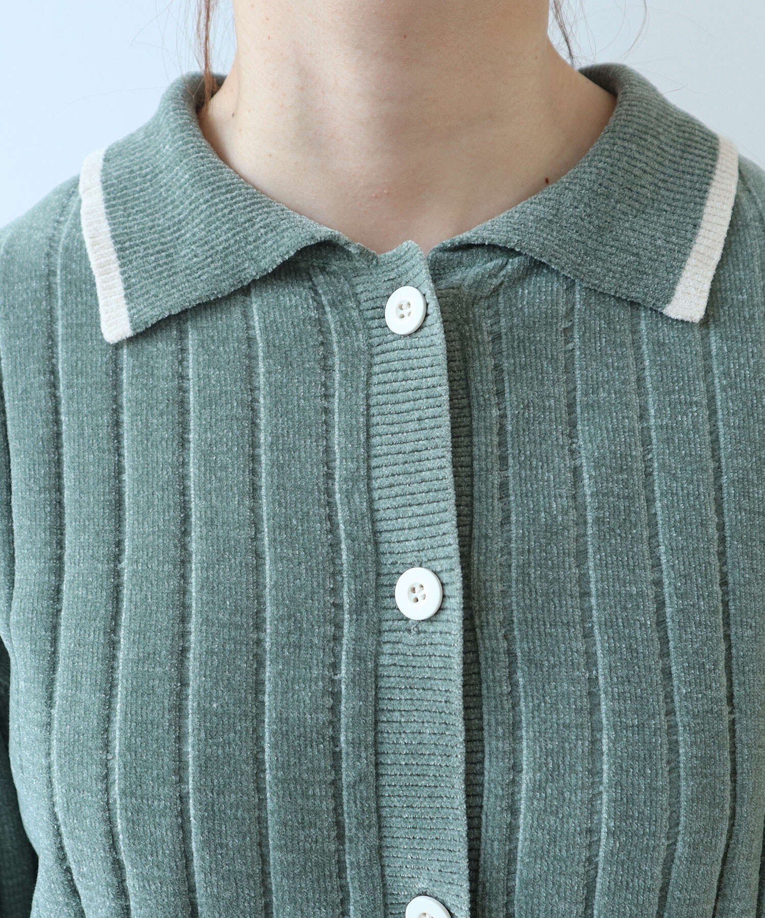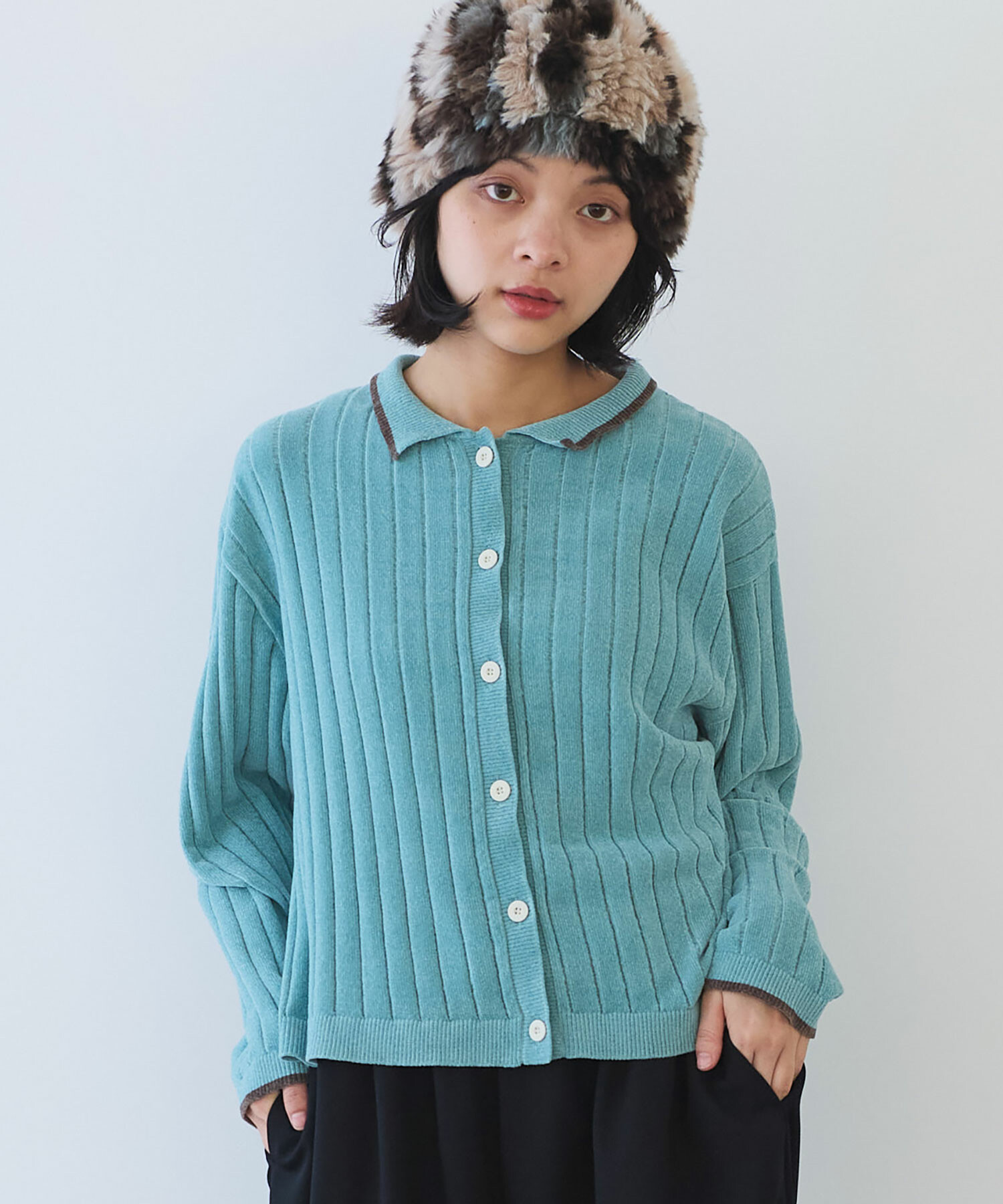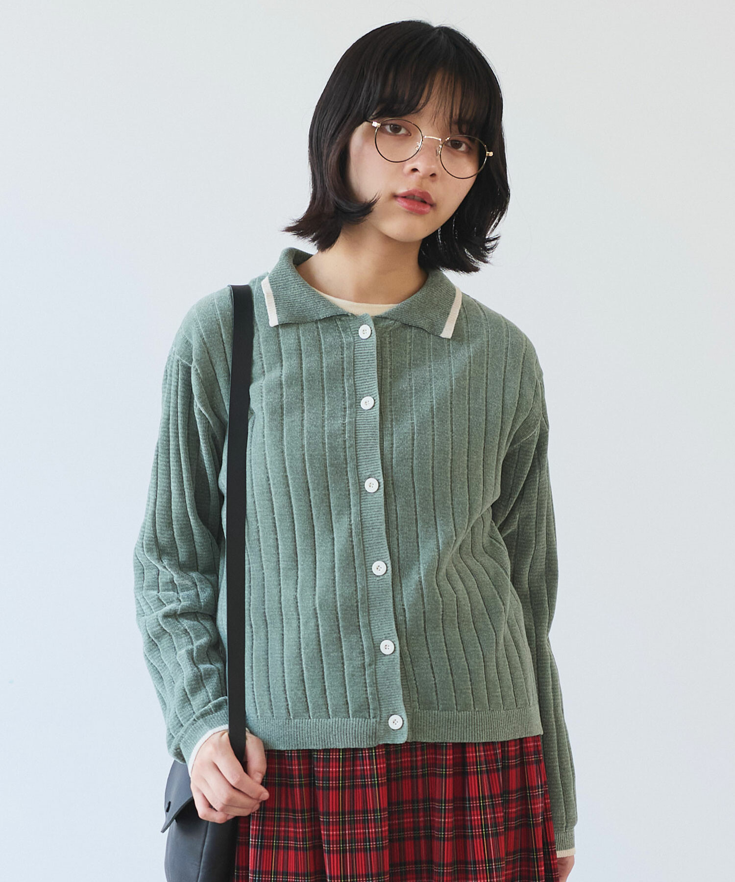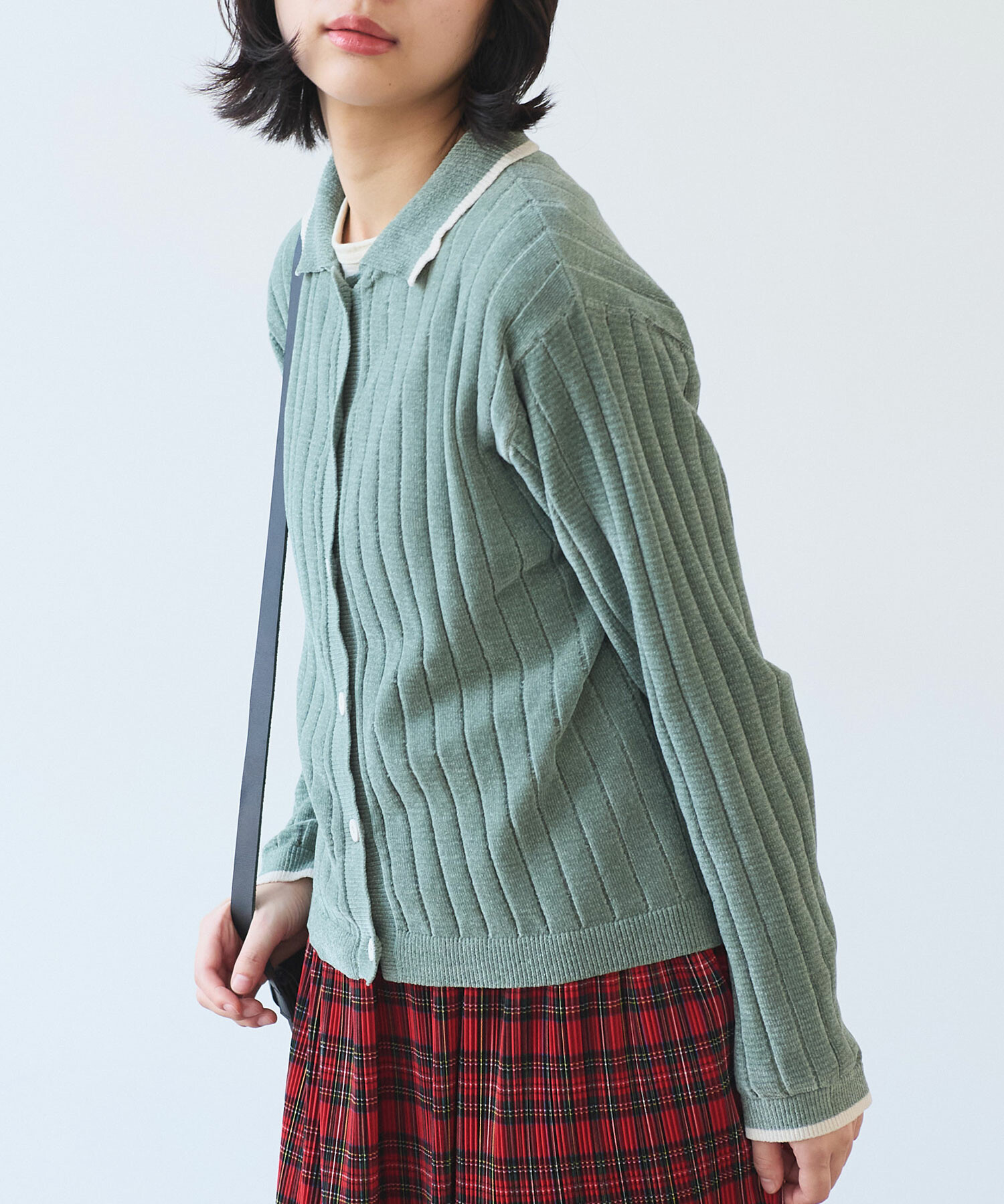 襟元の配色デザインが程よいアクセントに。