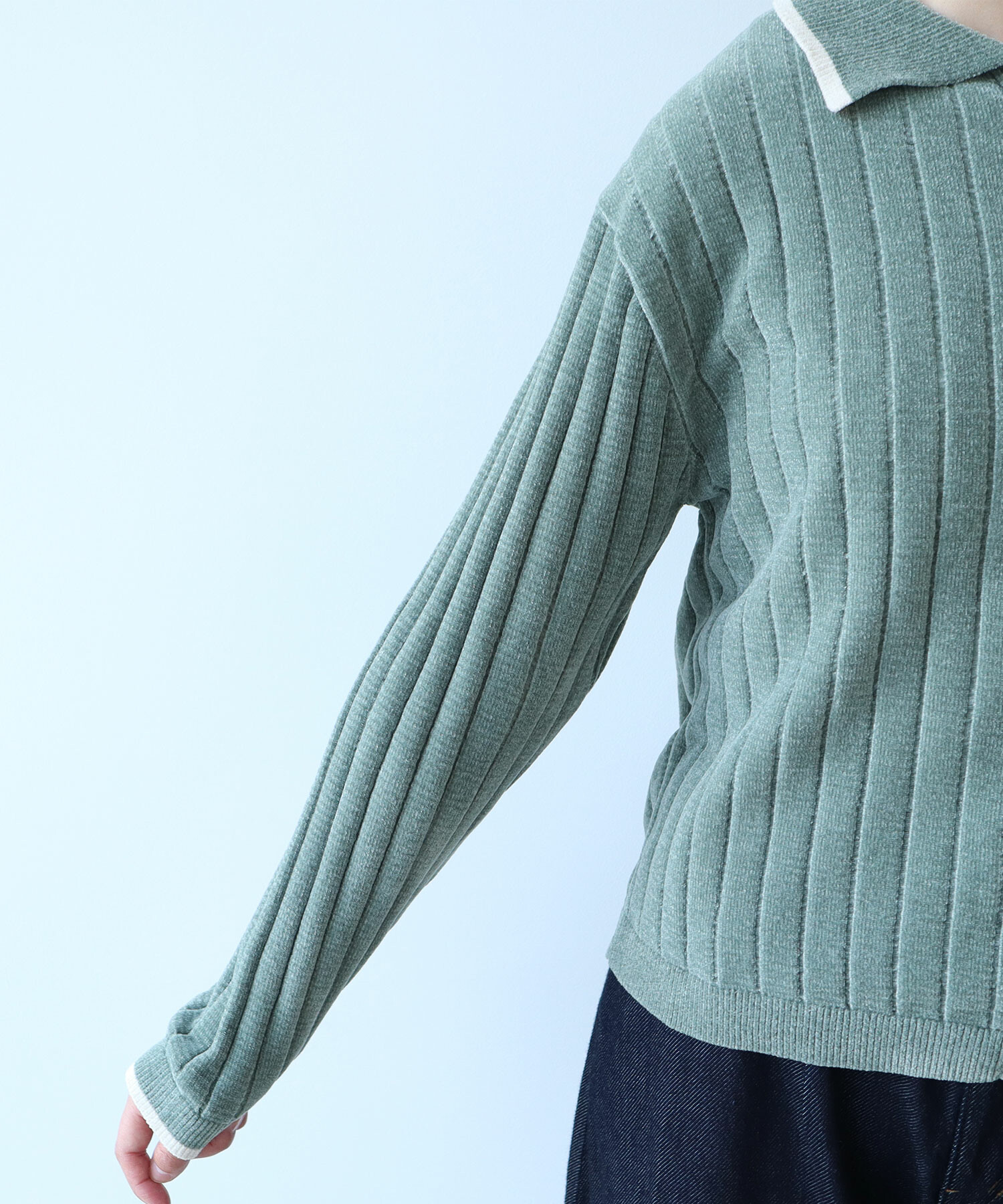 デニムなどカジュアルなボトムと合わせたい1枚です。