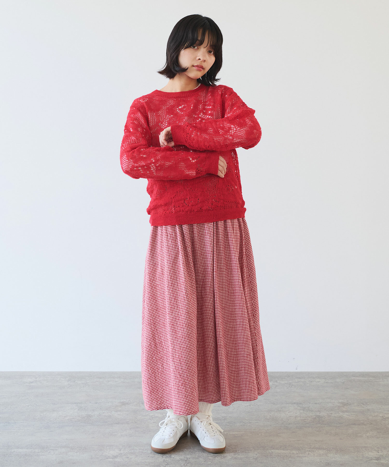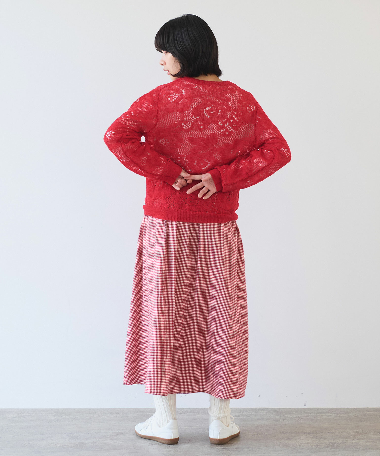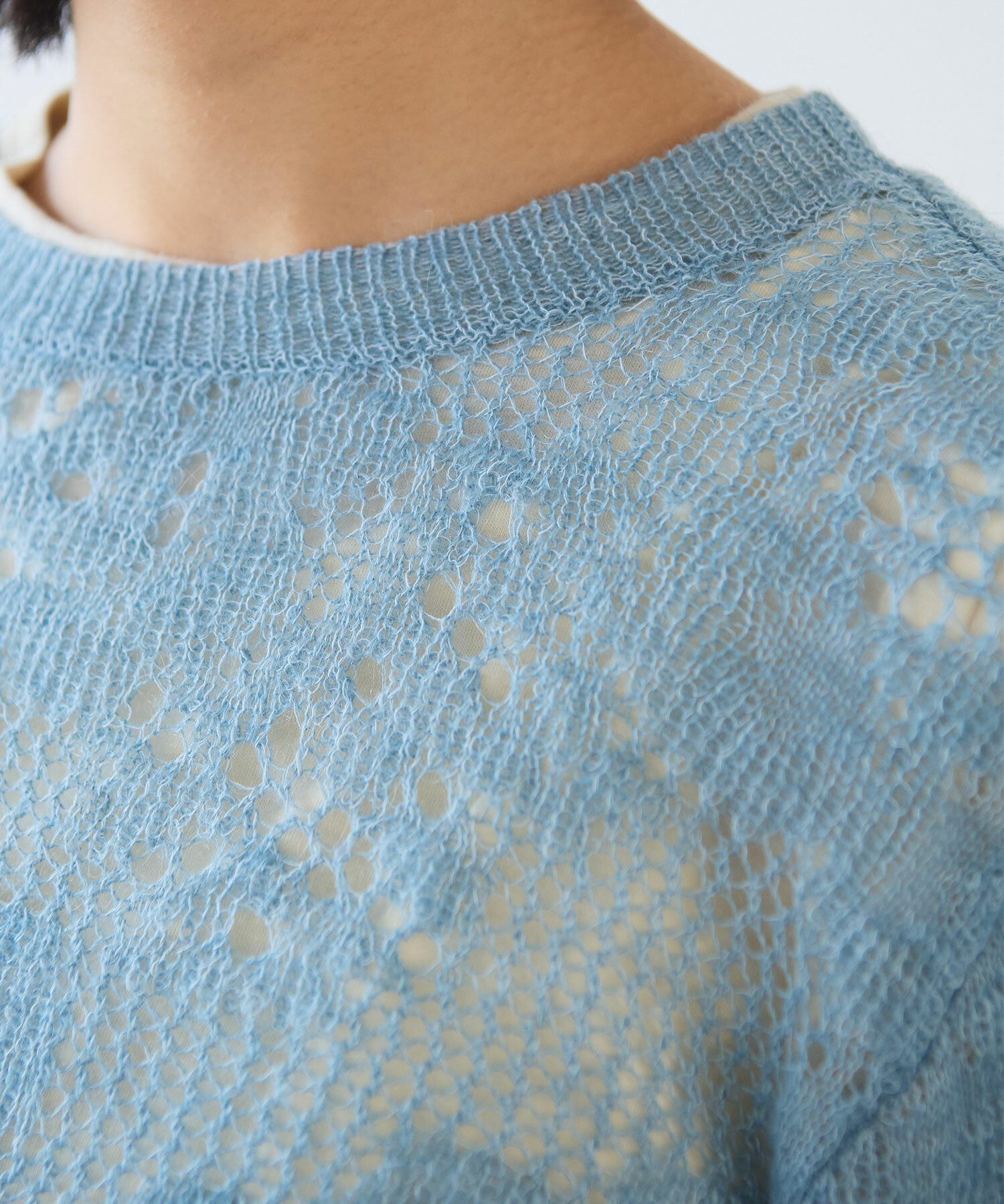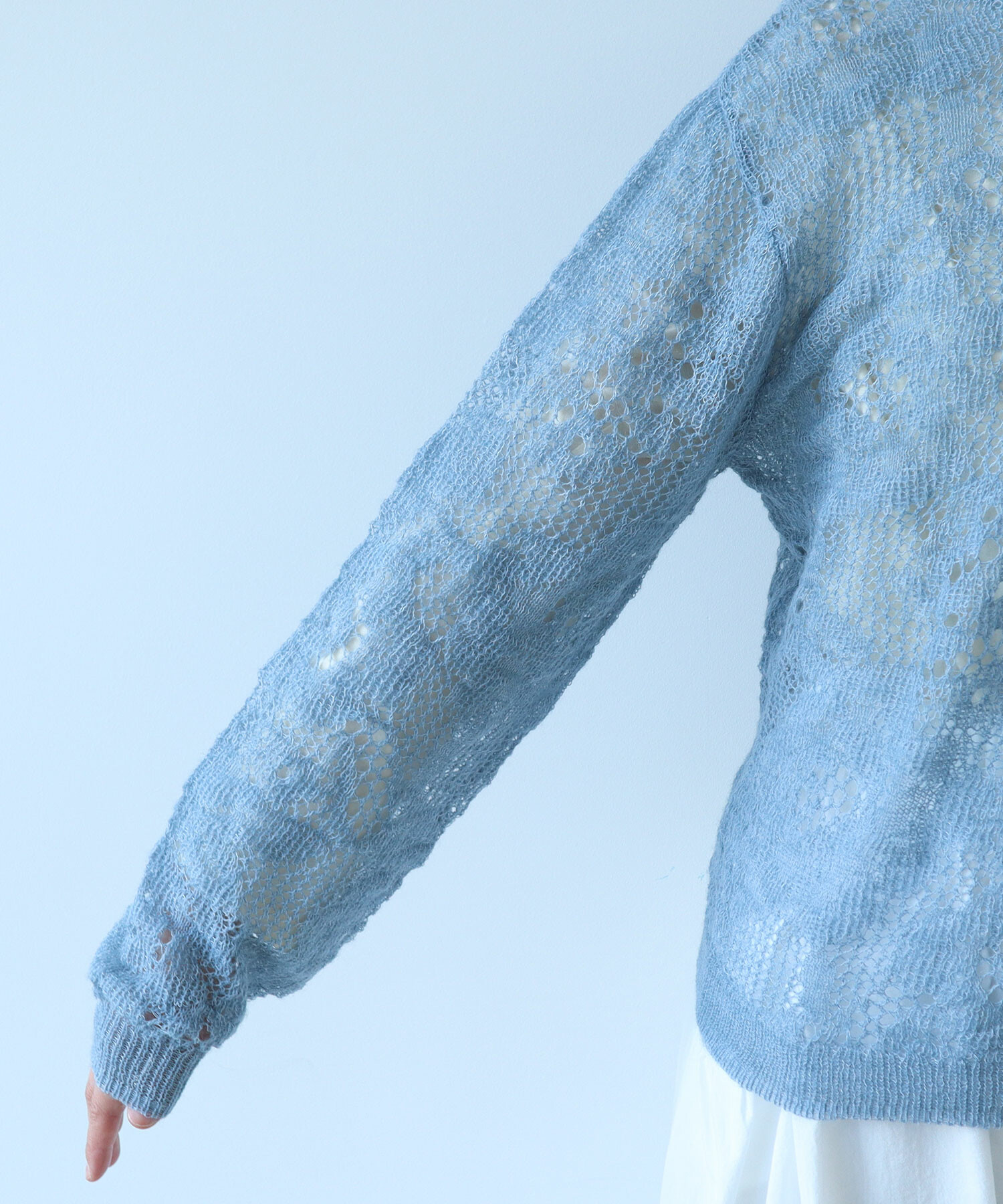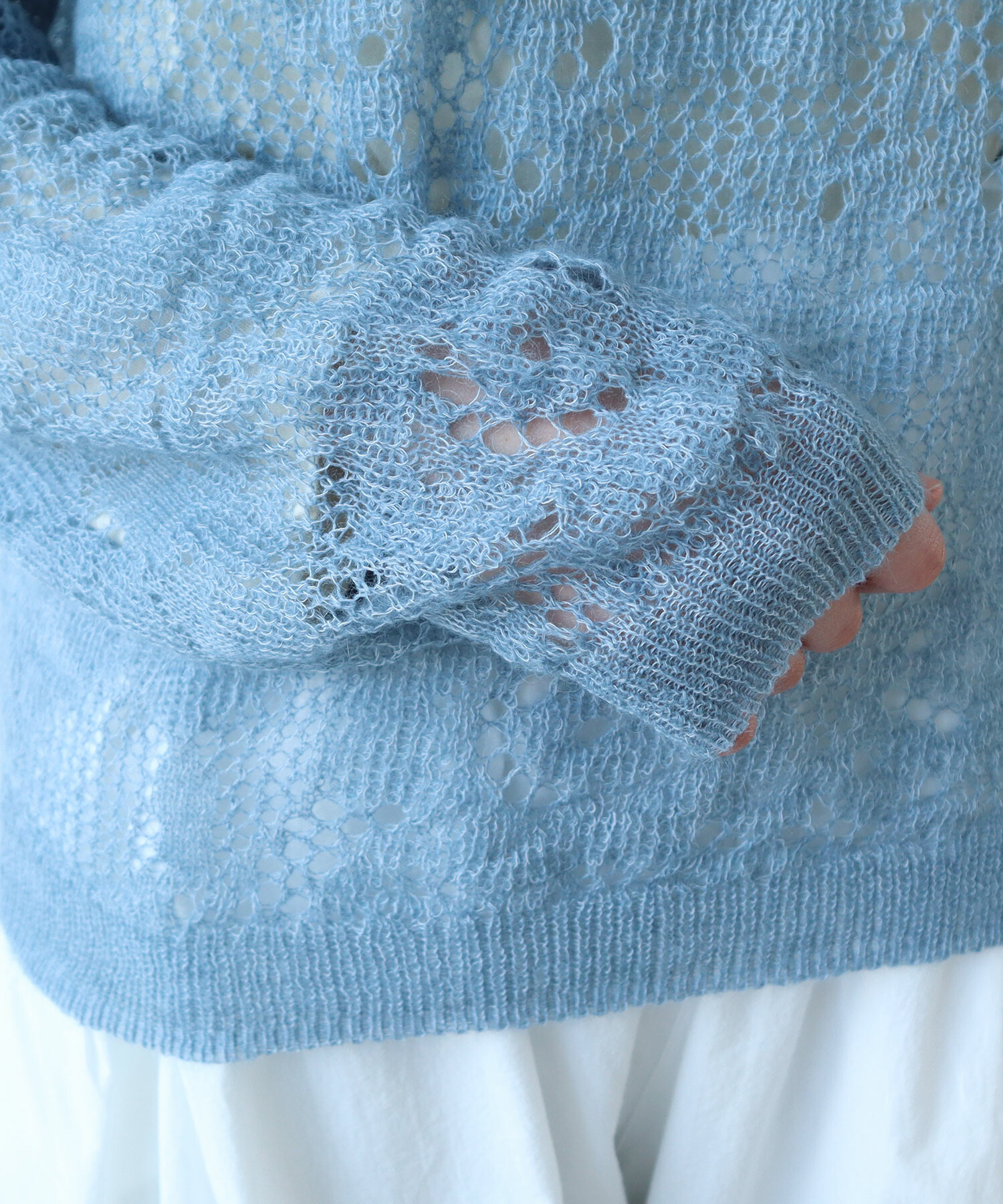 ・この製品は素材の性質上糸引きやひきつれが起こりやすいので、着用中・着脱時、特にアクセサリー・バック等に引っかかりやすいので、十分注意して下さい。