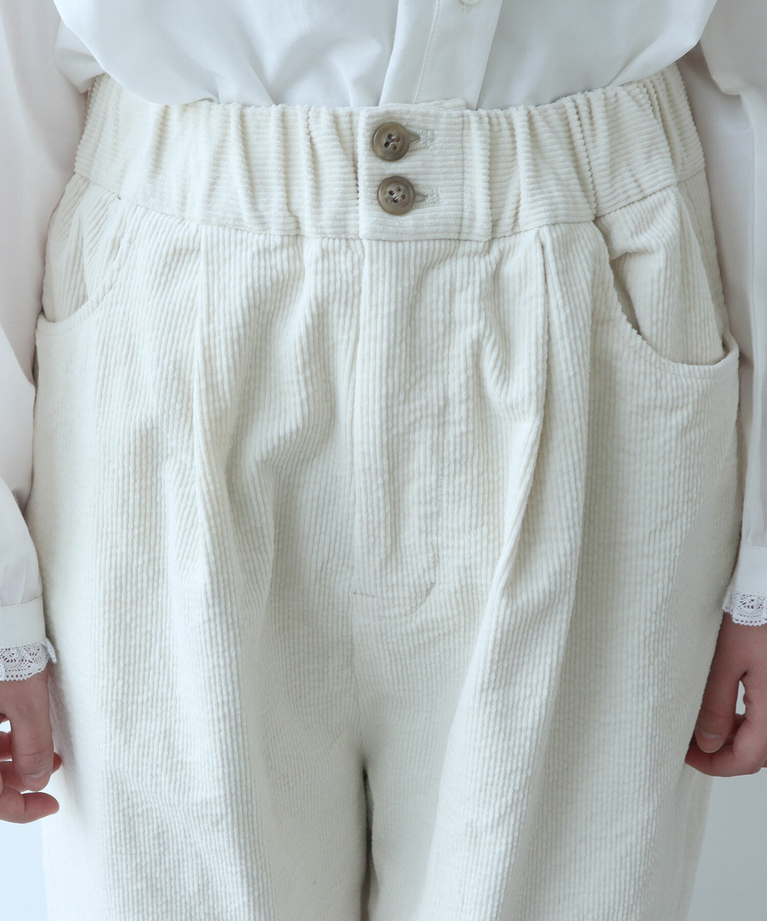 ウエストはゴム仕様+フロントボタンで、