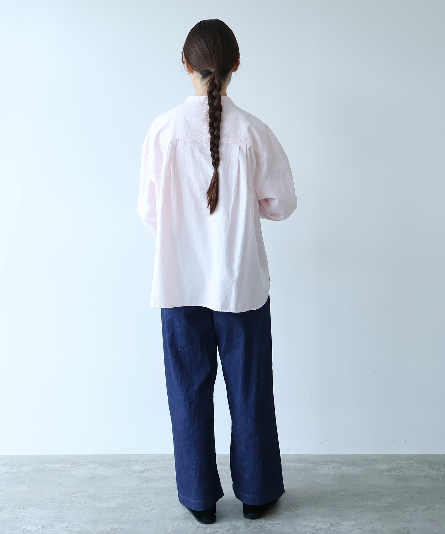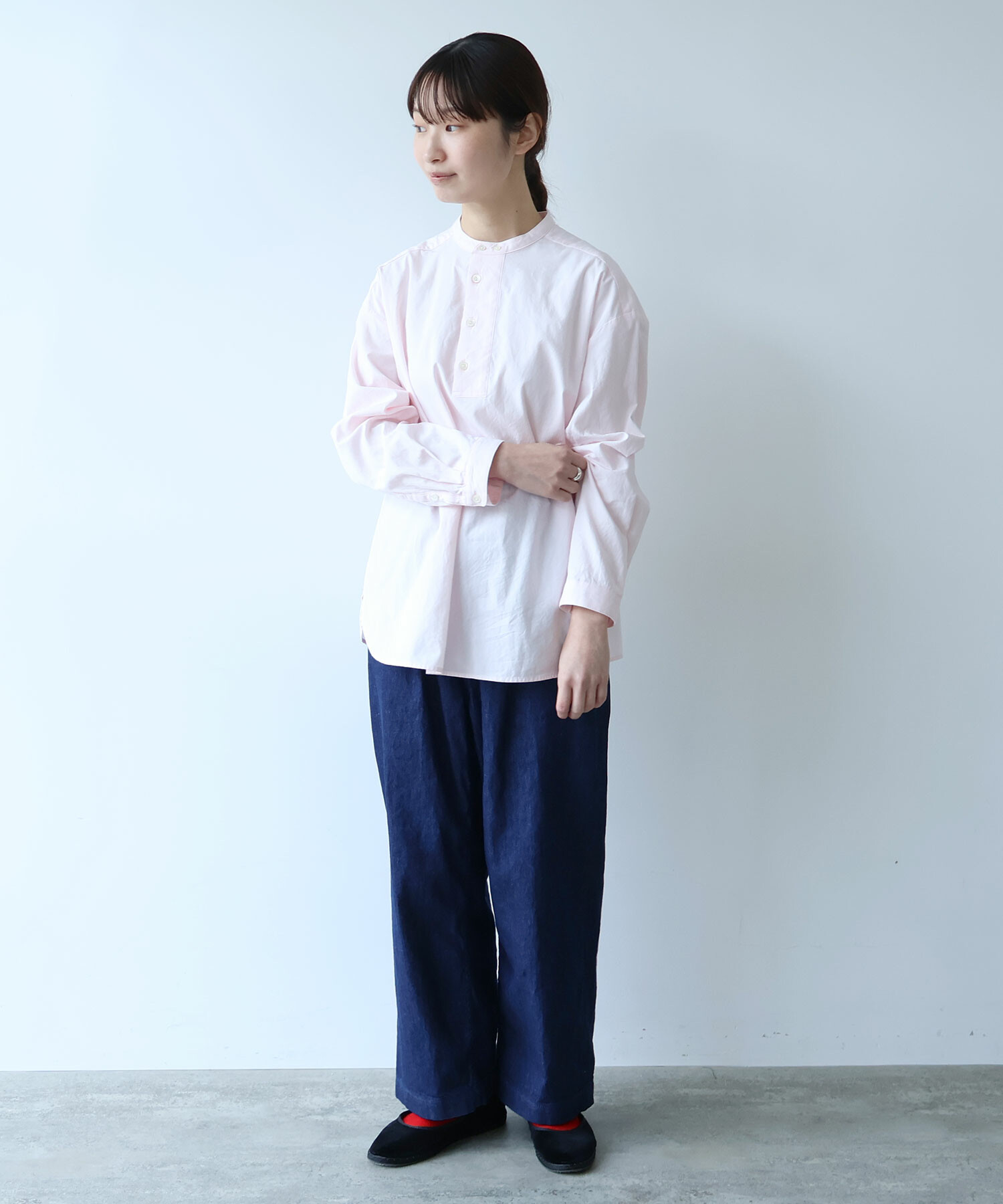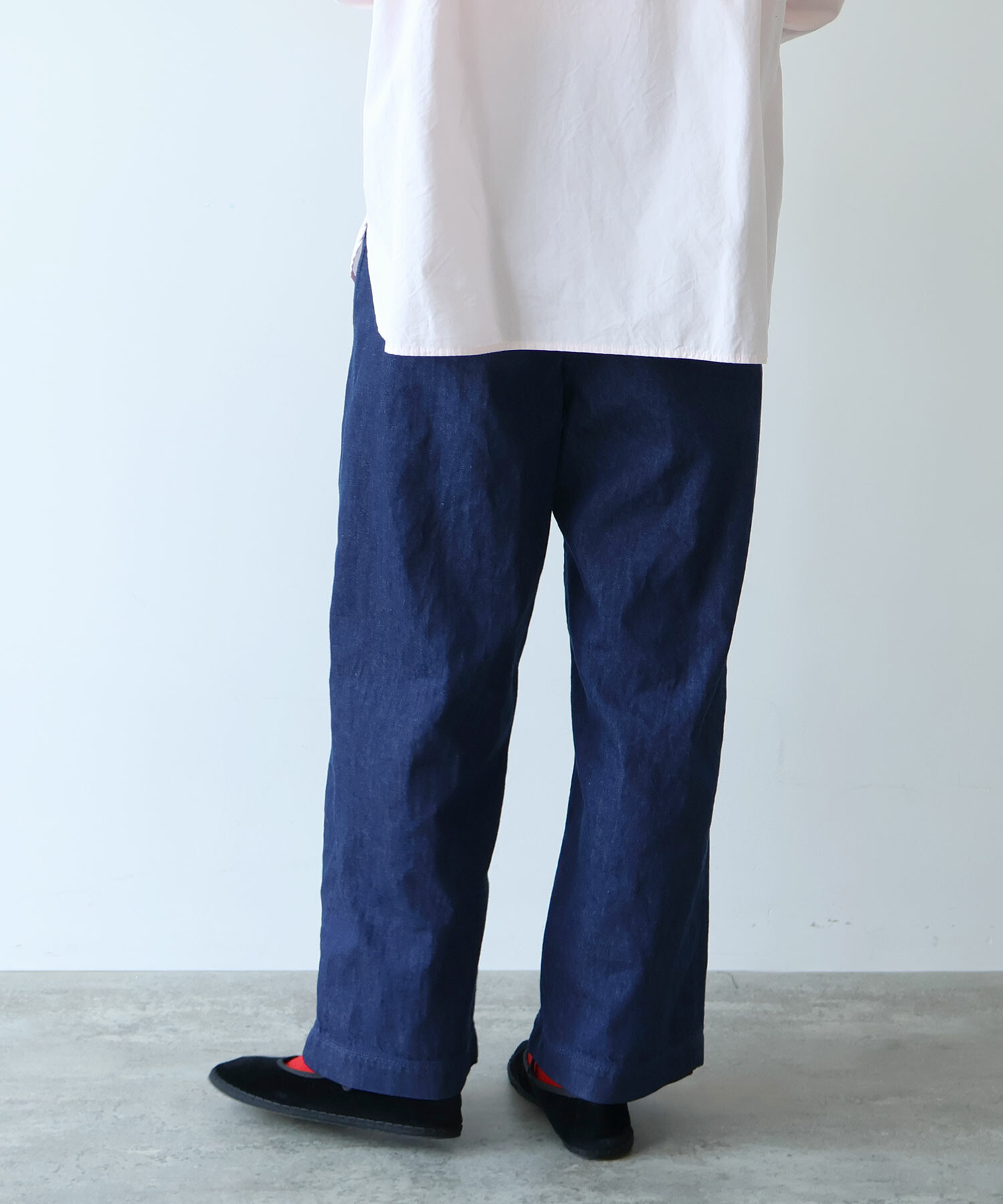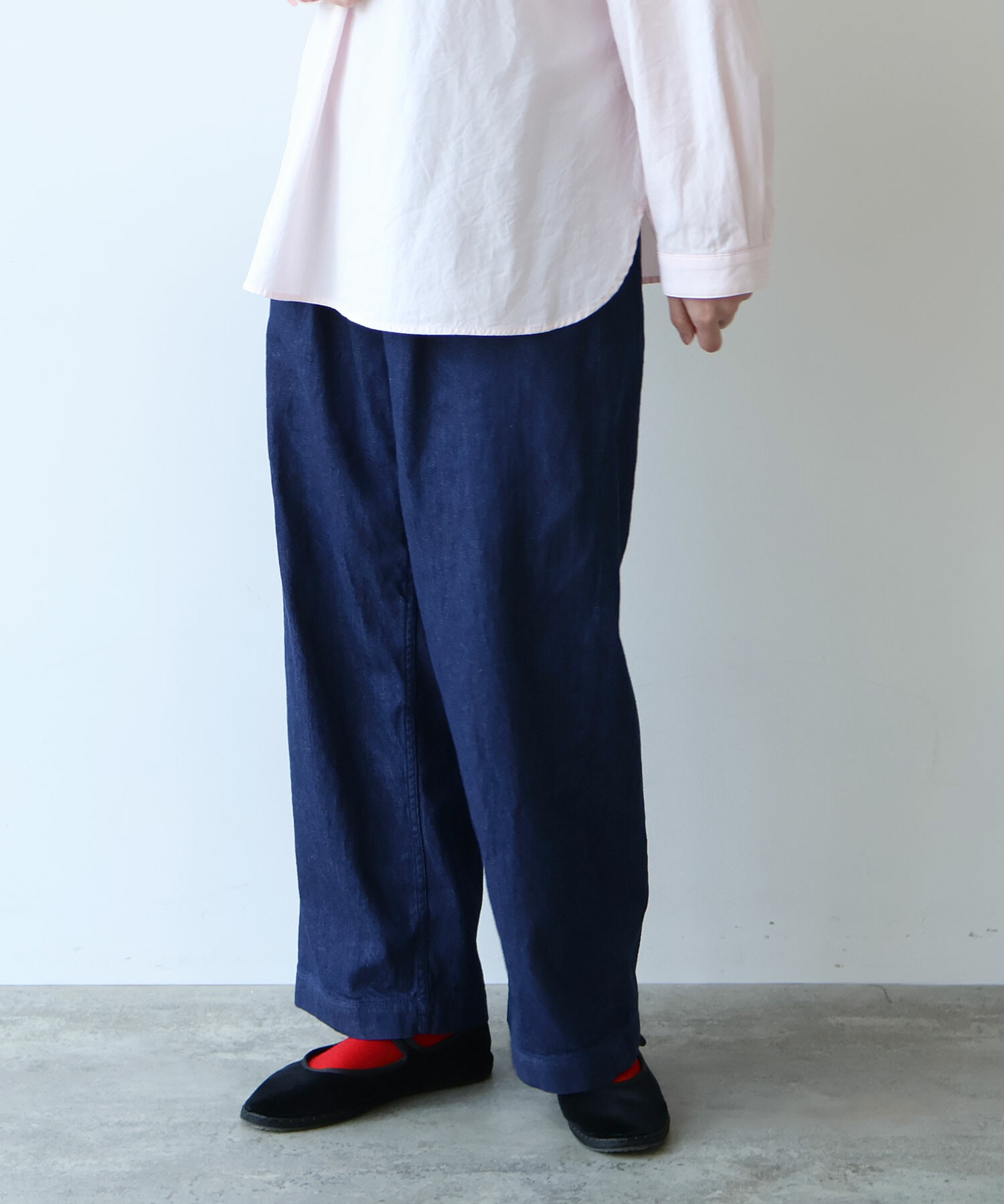 ウエストはゴムなしにすることですっきりとした仕様に。