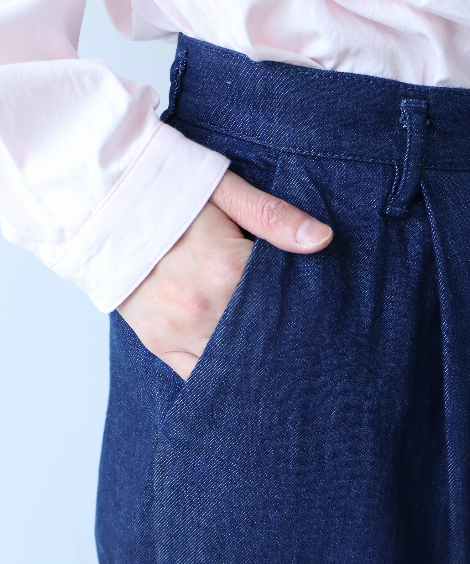 アオとコンの間の絶妙なカラーでストレートデニムを作りました。
