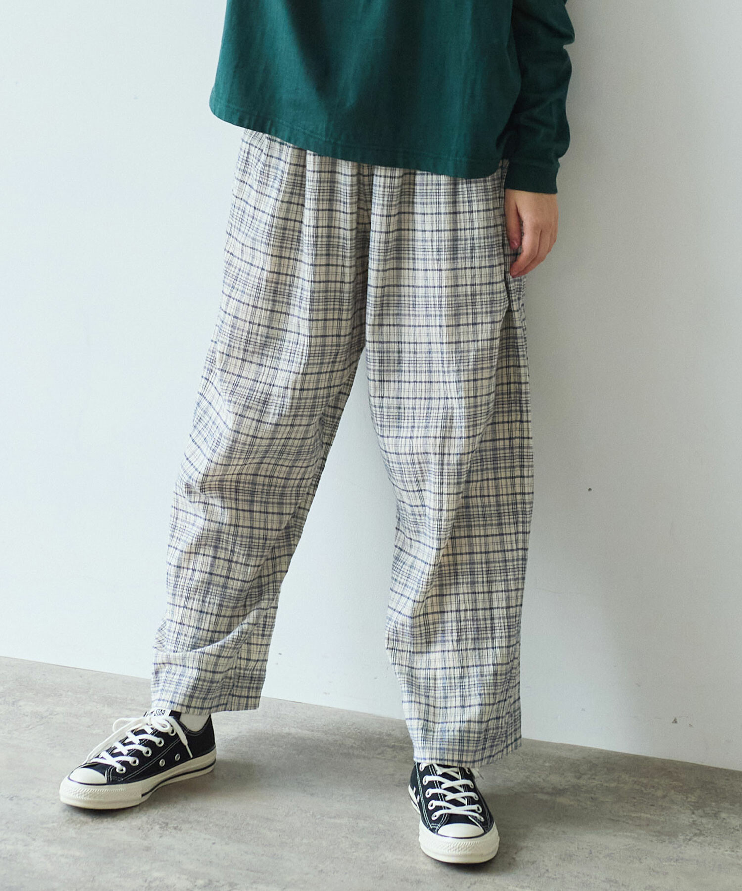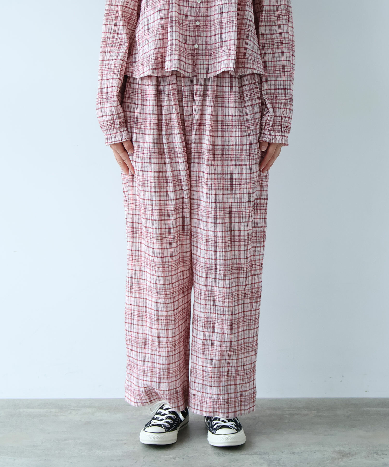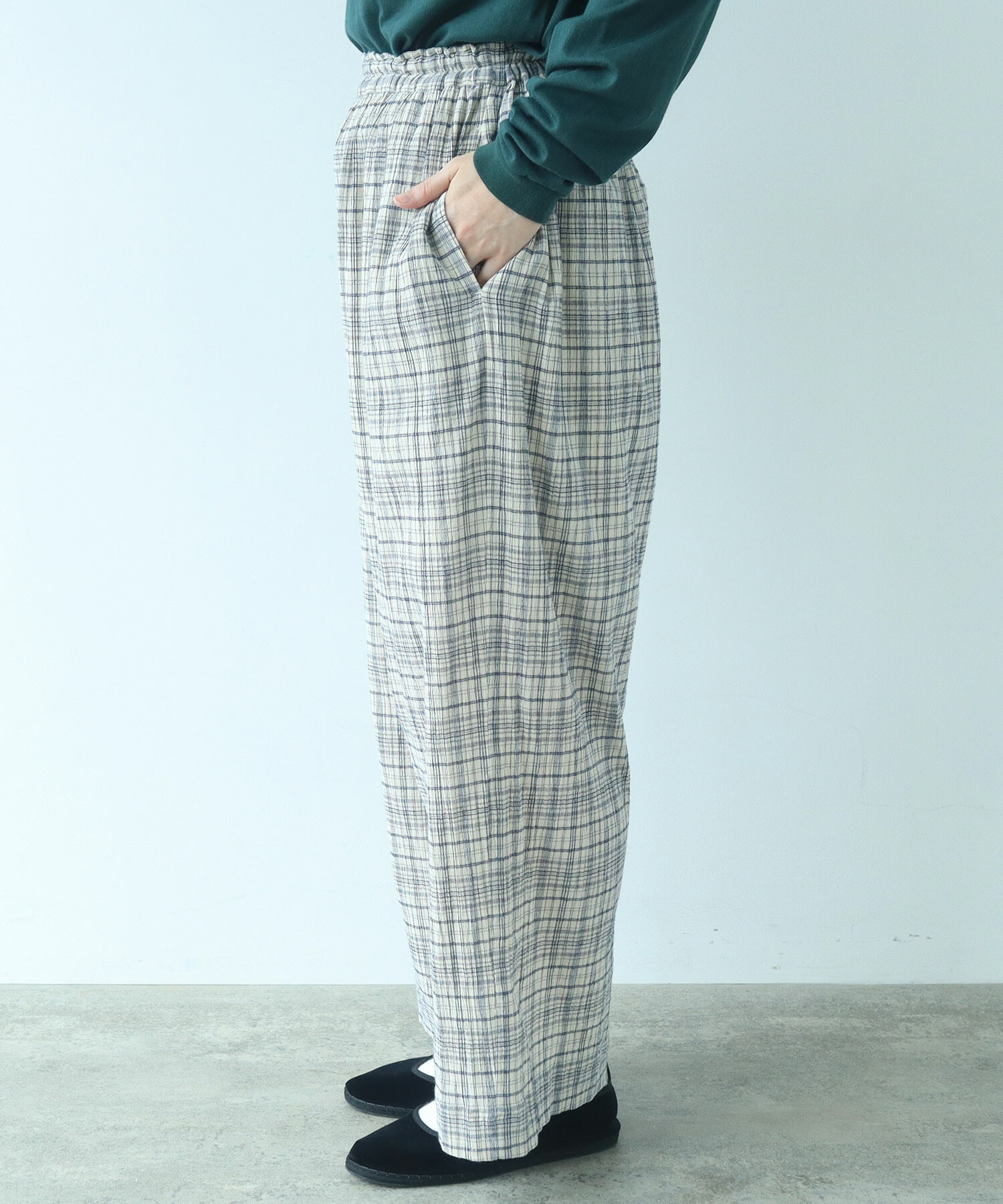 △〇 ちぢみcheck パンツ