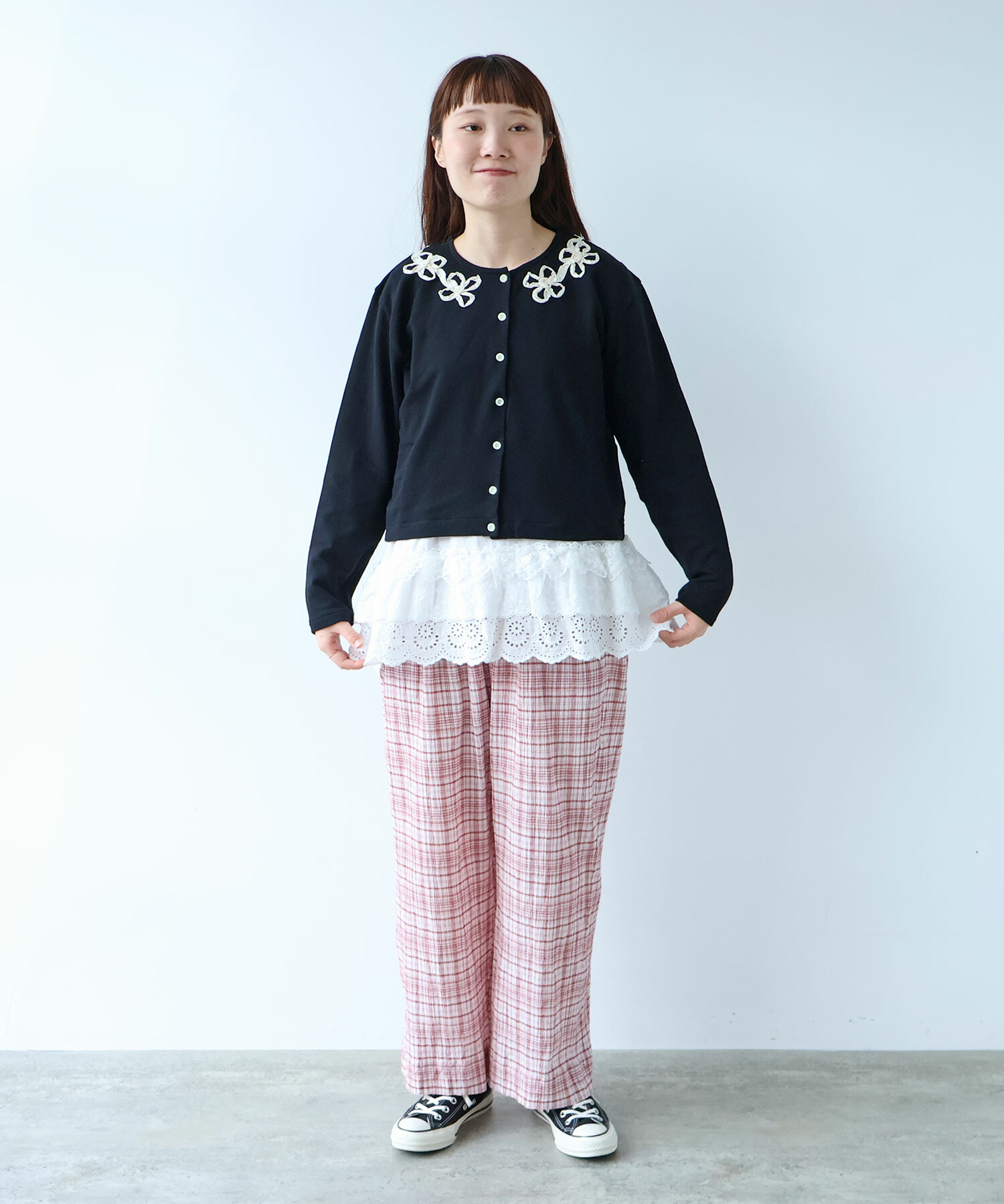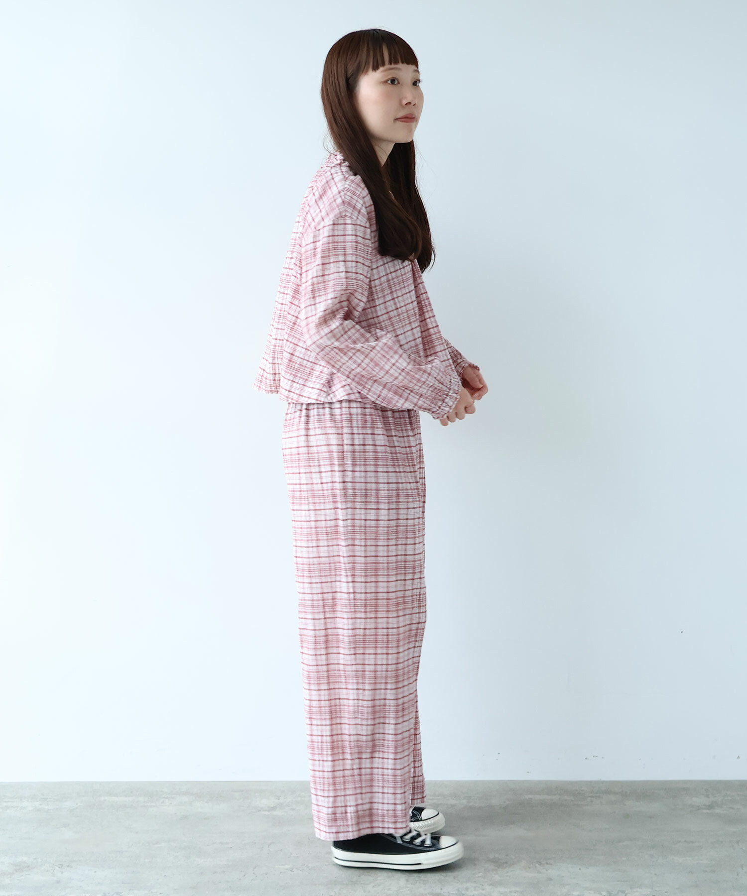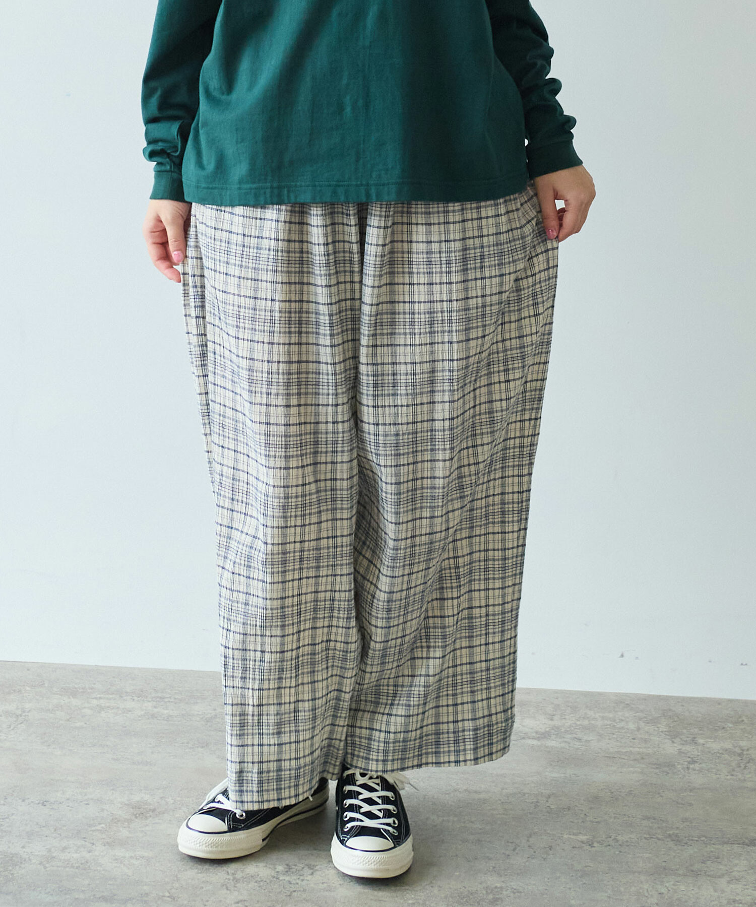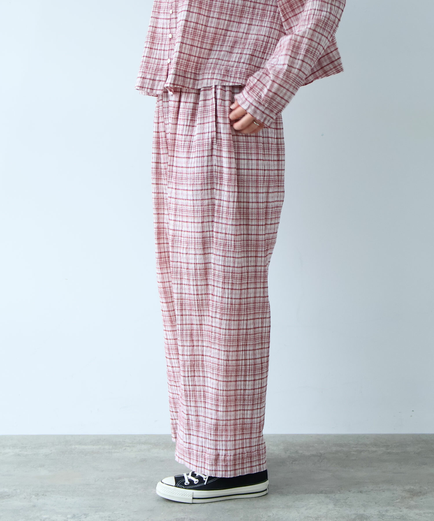 △〇 ちぢみcheck パンツ
