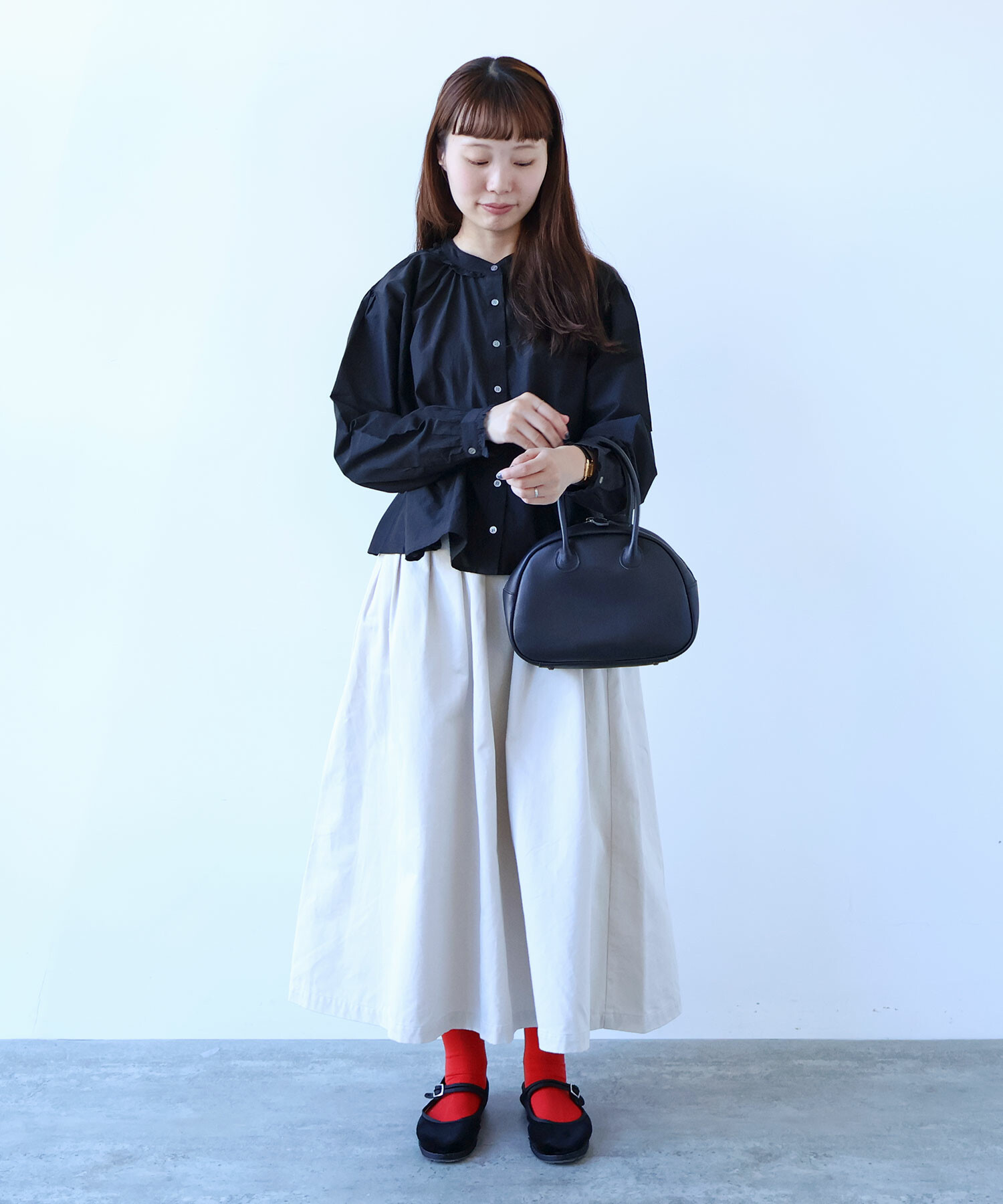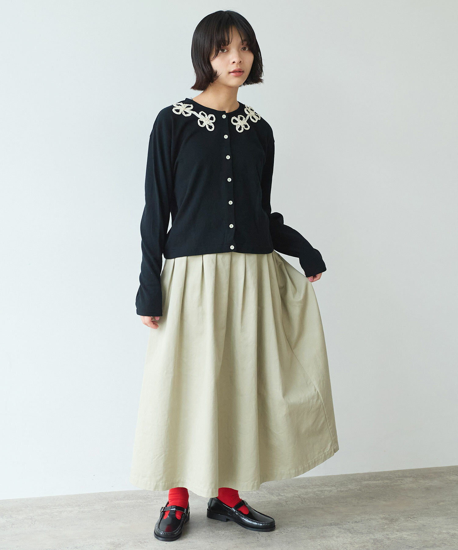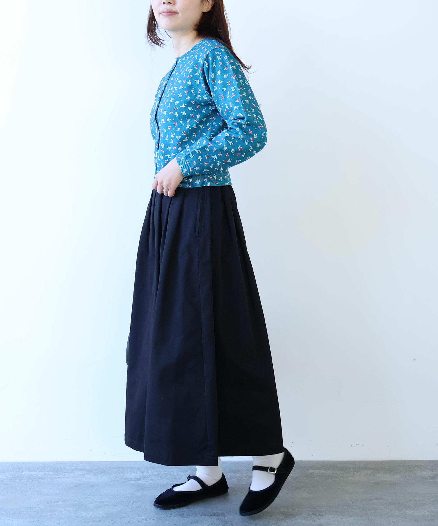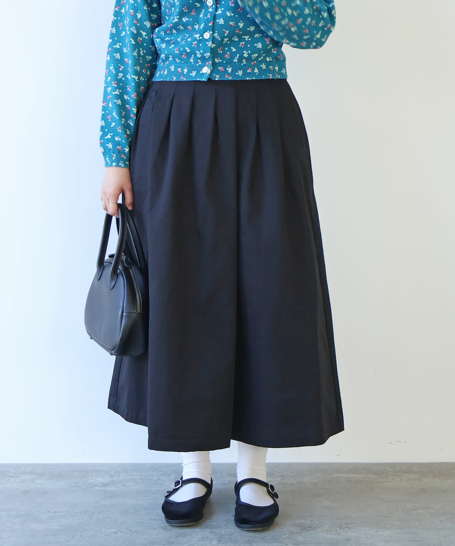 色んなコーディネートになじむ、オールシーズ着れる万能スカートです。