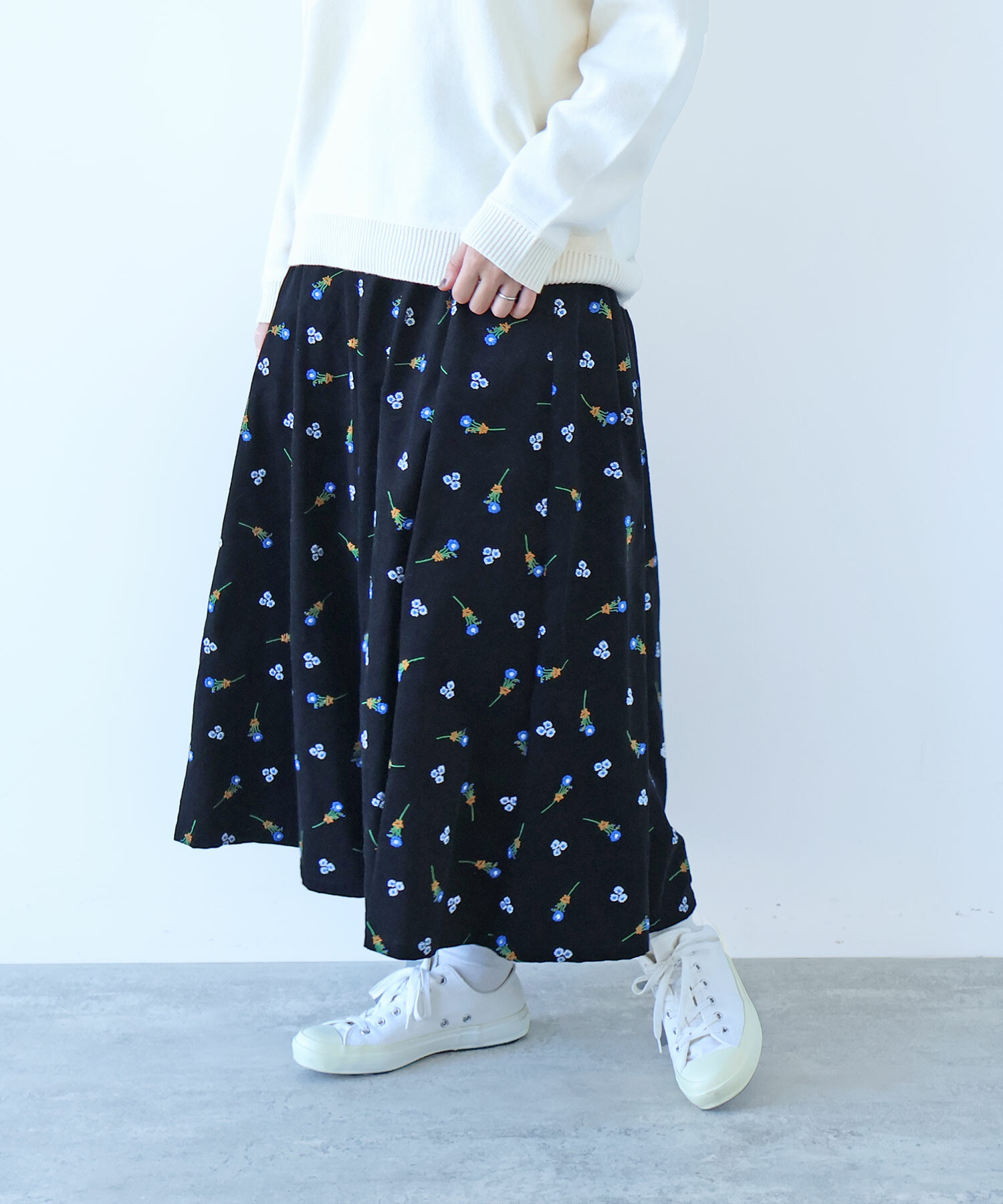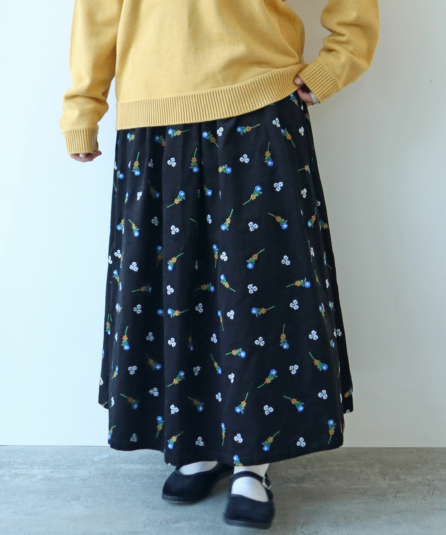 ●○ シュウメイギク 刺繍 スカート