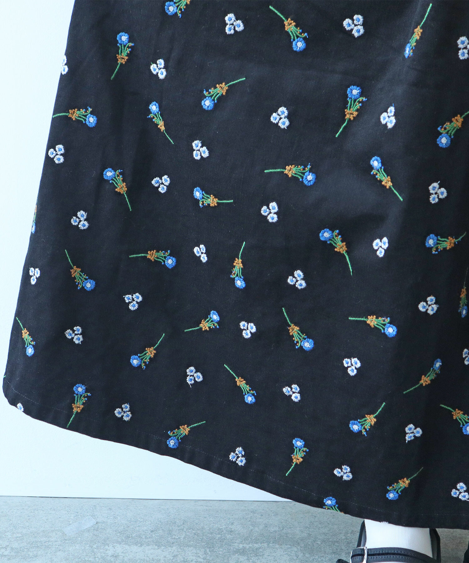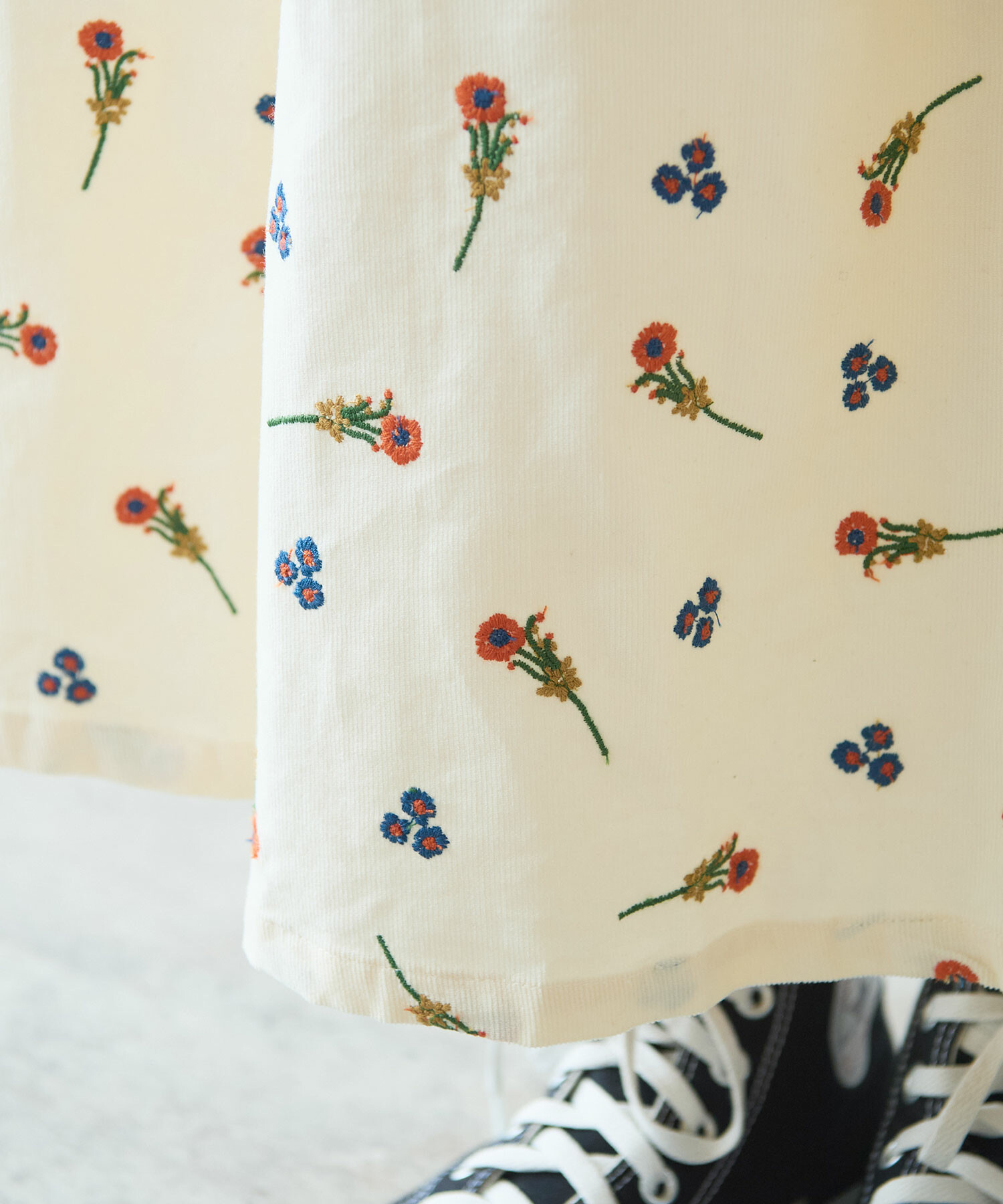 刺繍を散りばめたスカート。