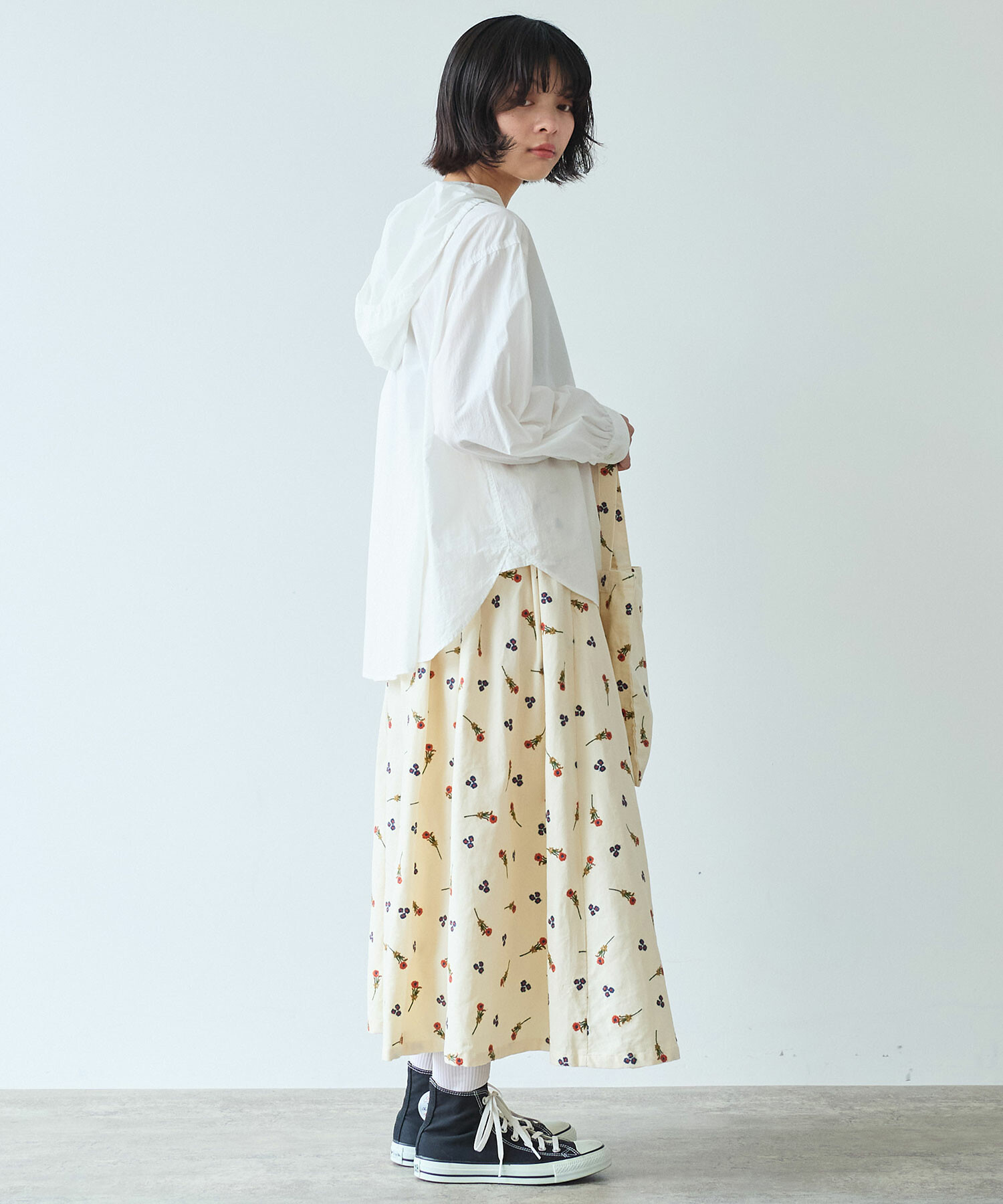 広がりすぎない落ち感のあるシルエットで、