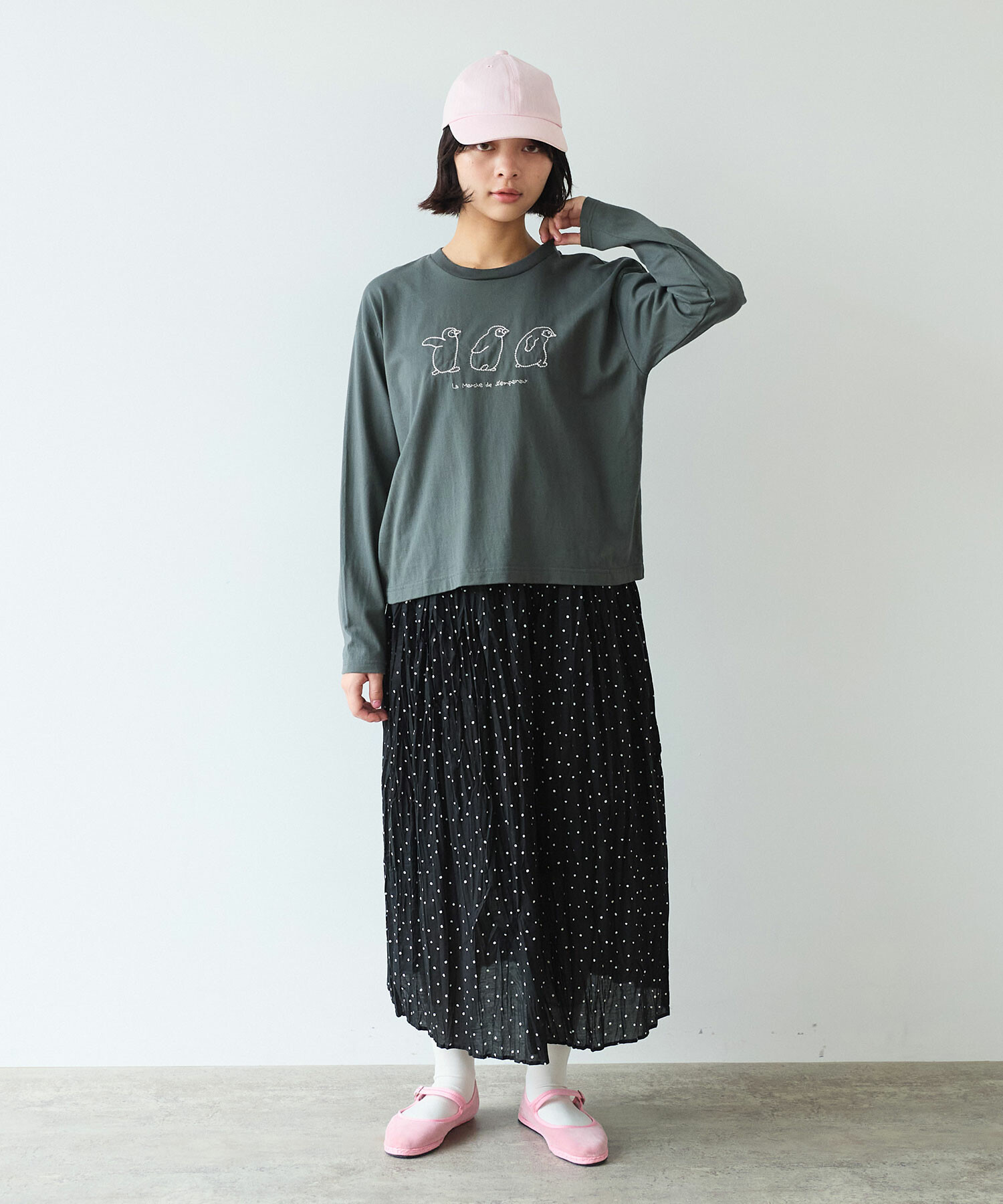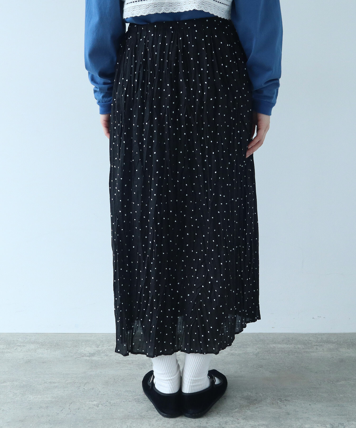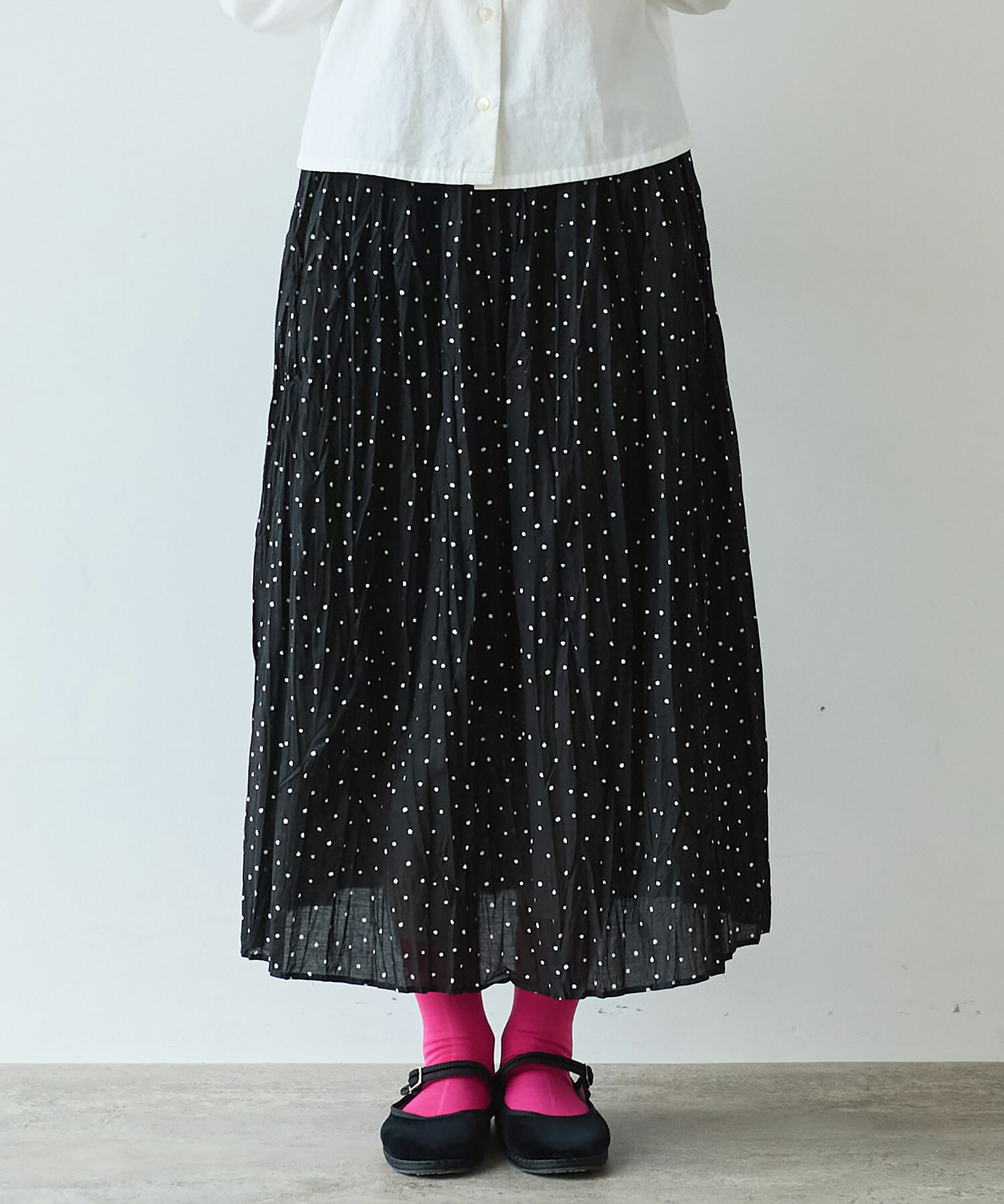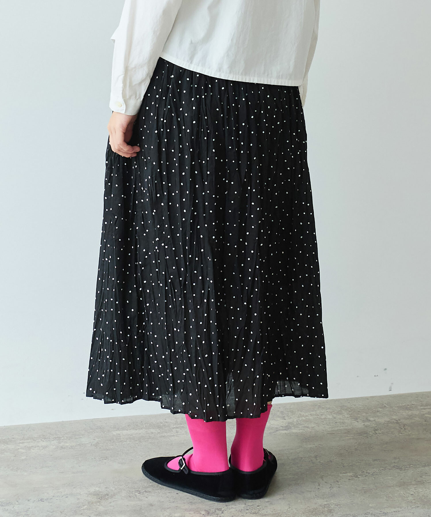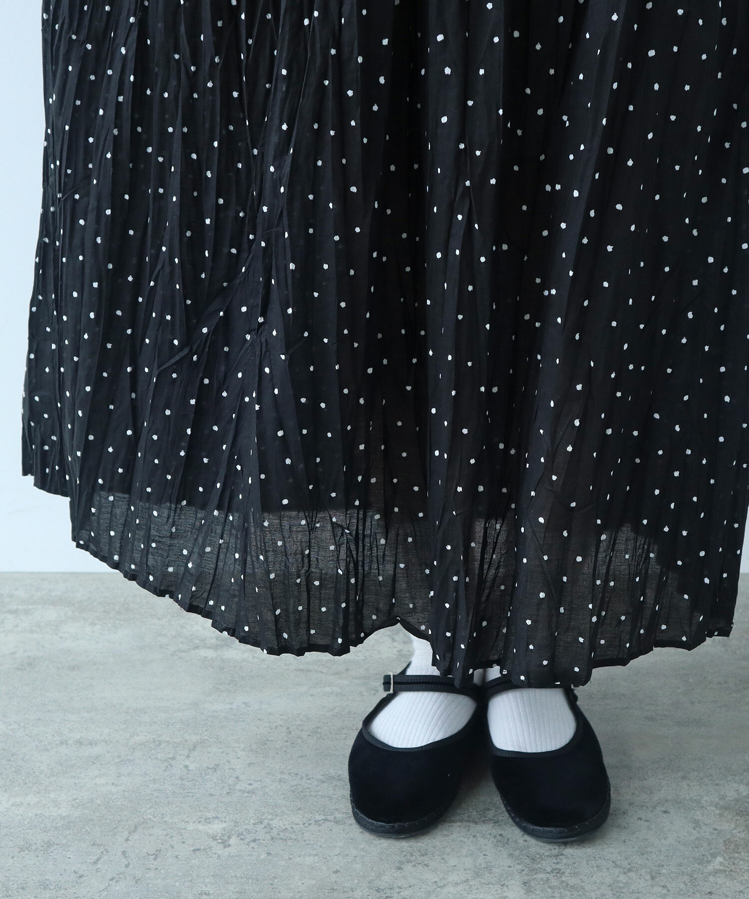 △〇 しわしわdot プリント ランダム タックスカート