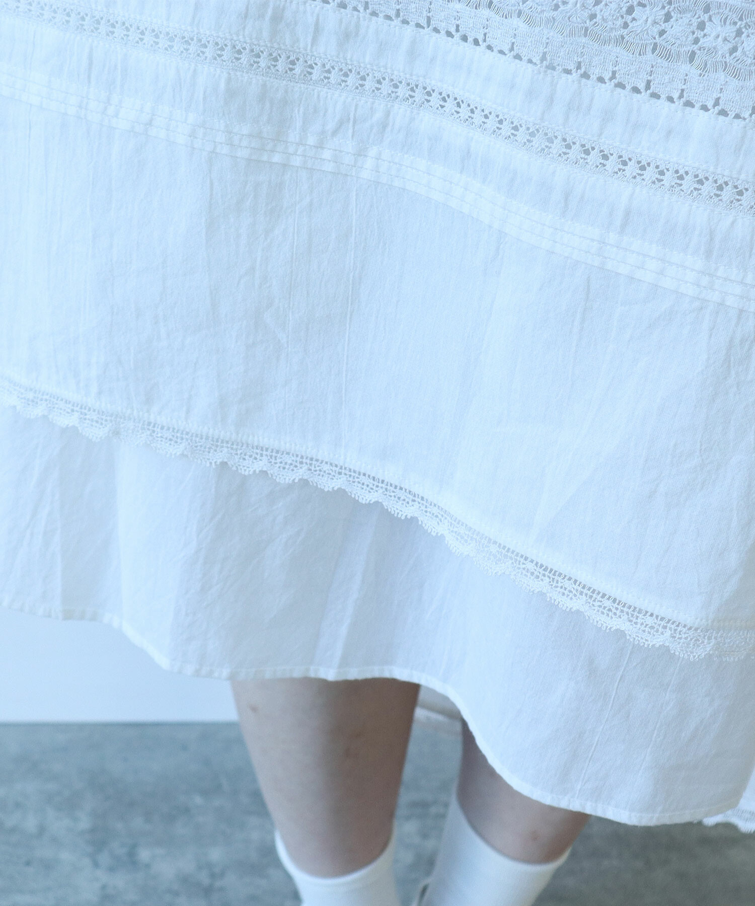 スカートは裾のレースの透け感が涼し気に見せてくれます。