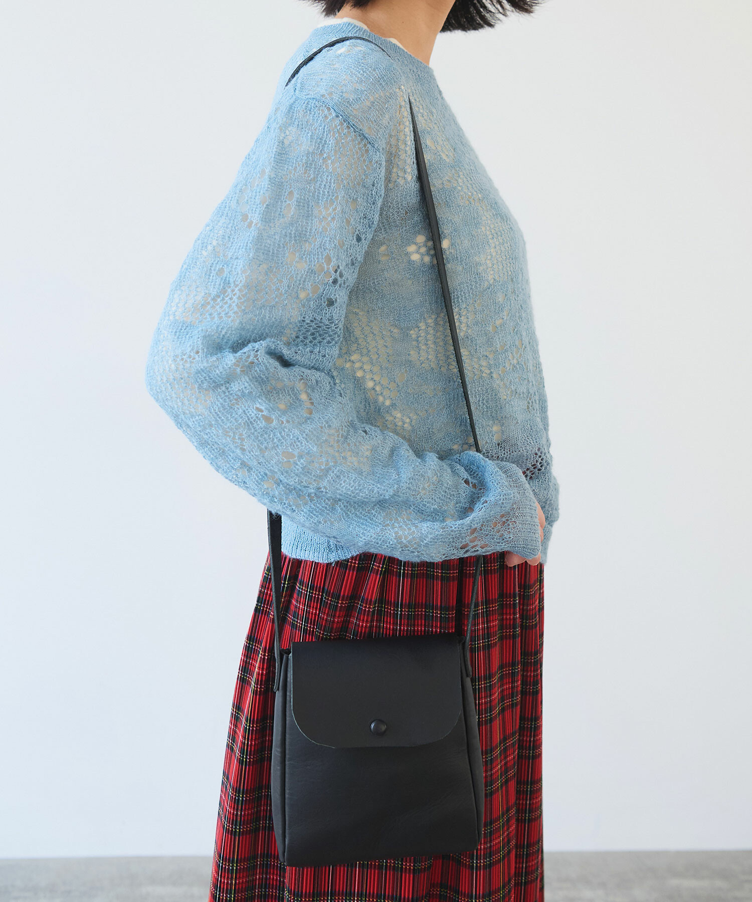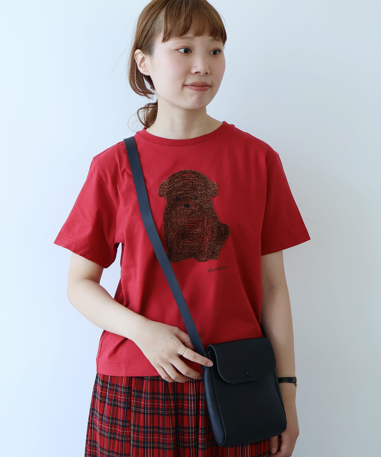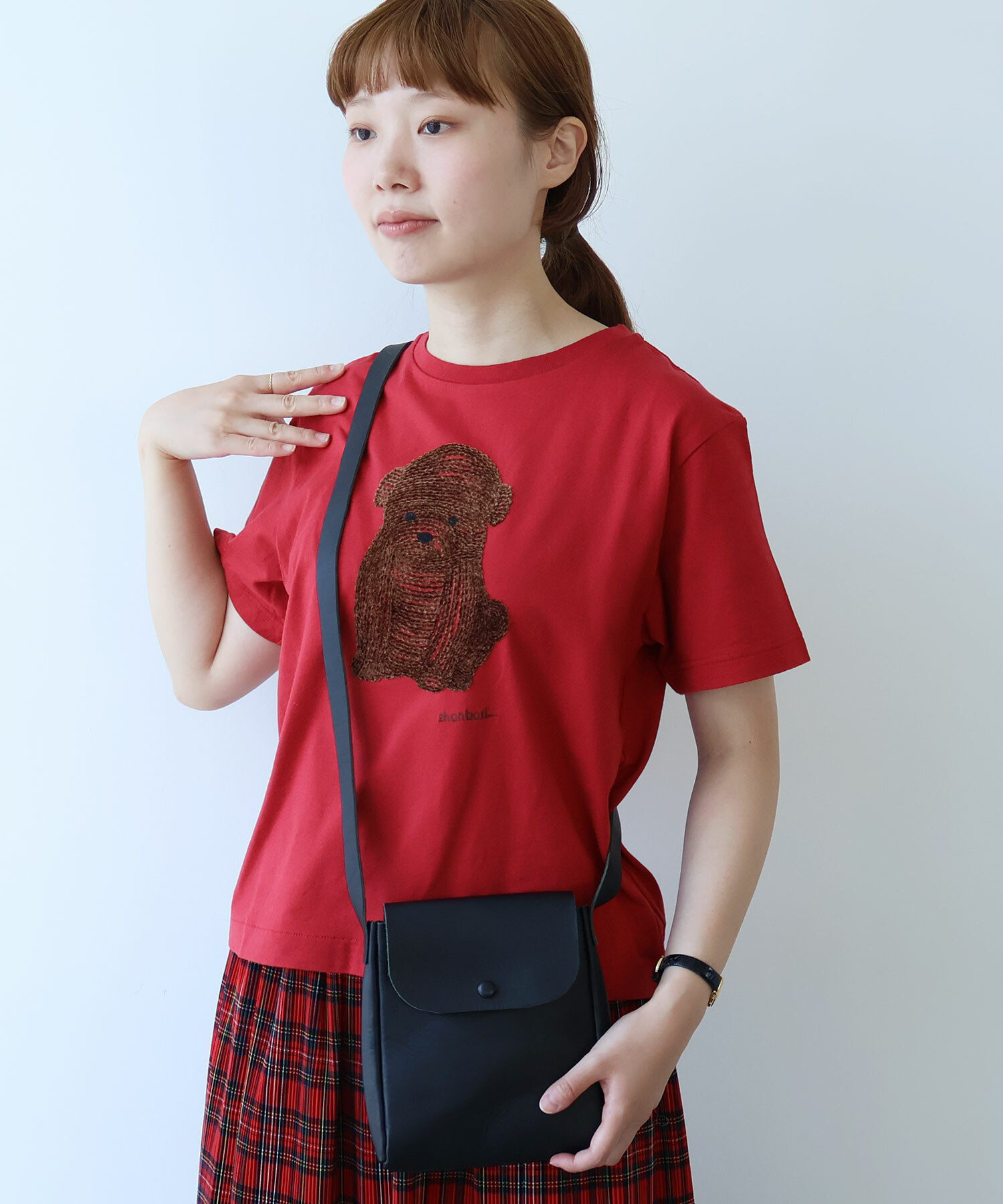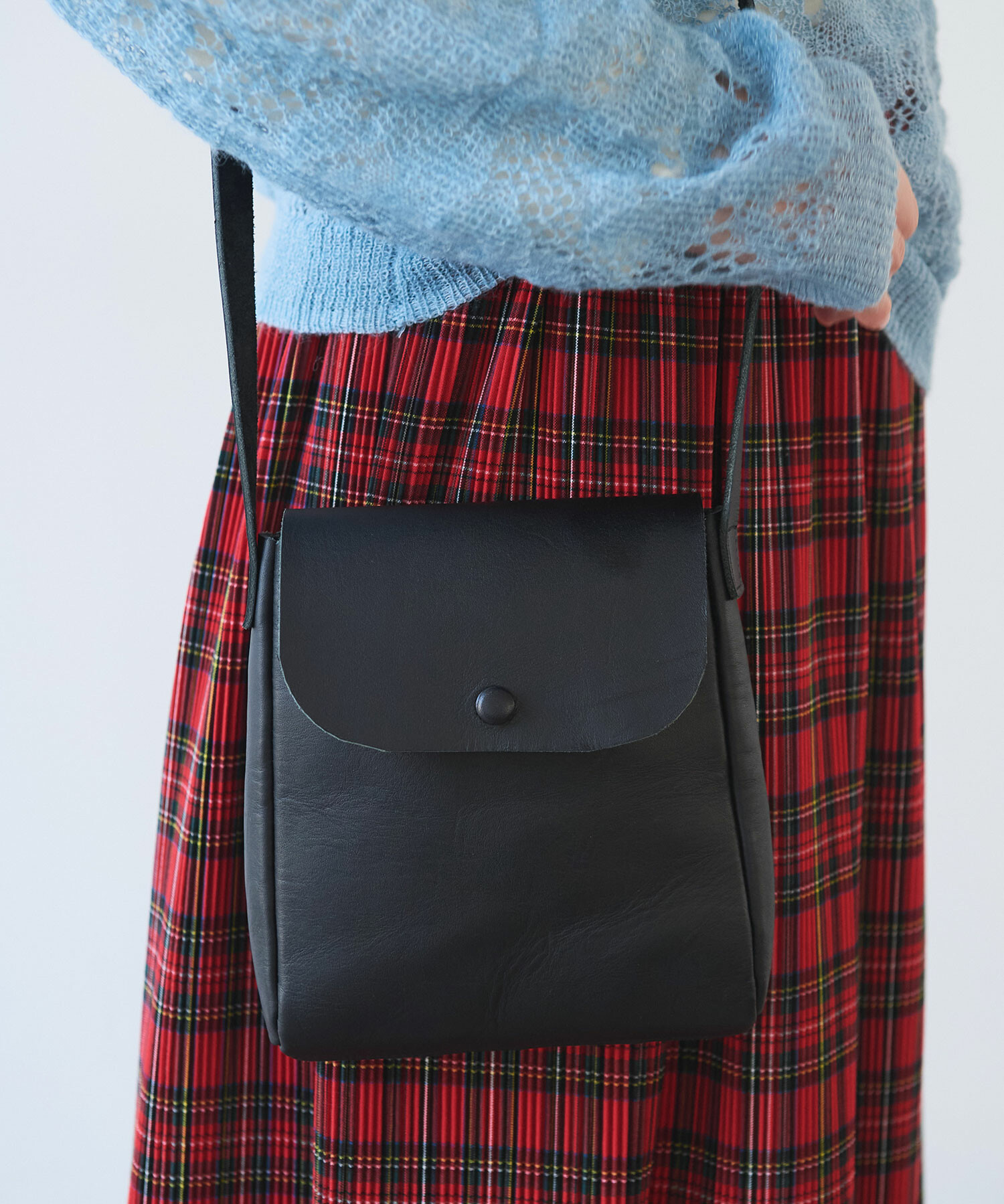 シンプルでどんなコーデにもなじむ、小さめショルダーポシェット。