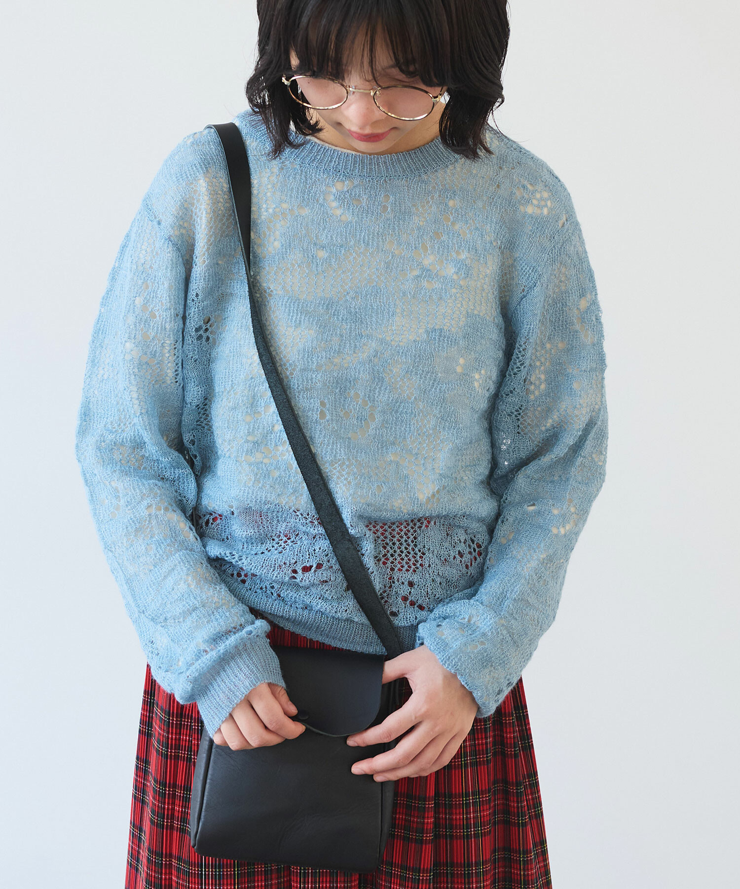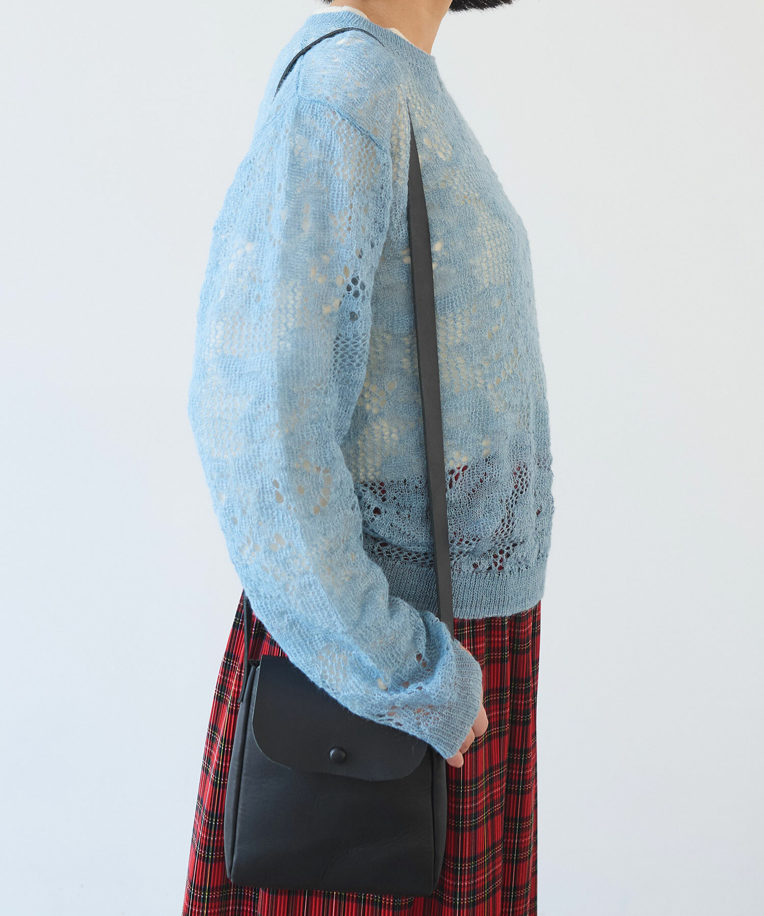 長めのストラップは、斜め掛けもしていただけます。