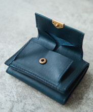 かための革で手のひらにおさまる三つ折りの財布をつくりました。