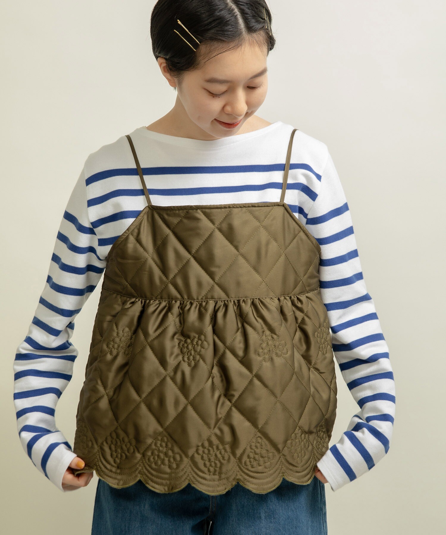 ○サテンキルトカットワーク キャミブラウス
