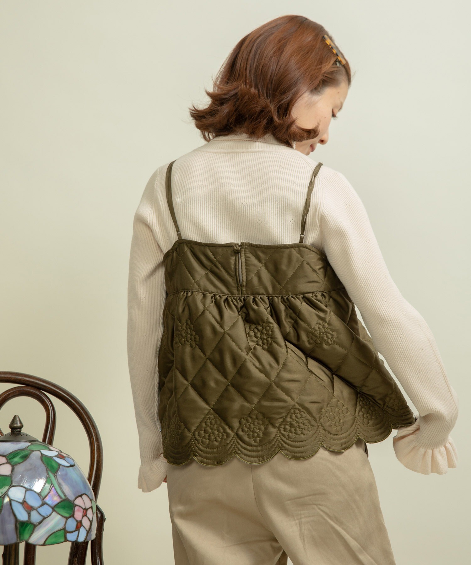 ヴィンテージのベットジャケットから着想を得て、裾や襟にはスカラップのカットワークを施し、ディテールにもとことんこだわりました。