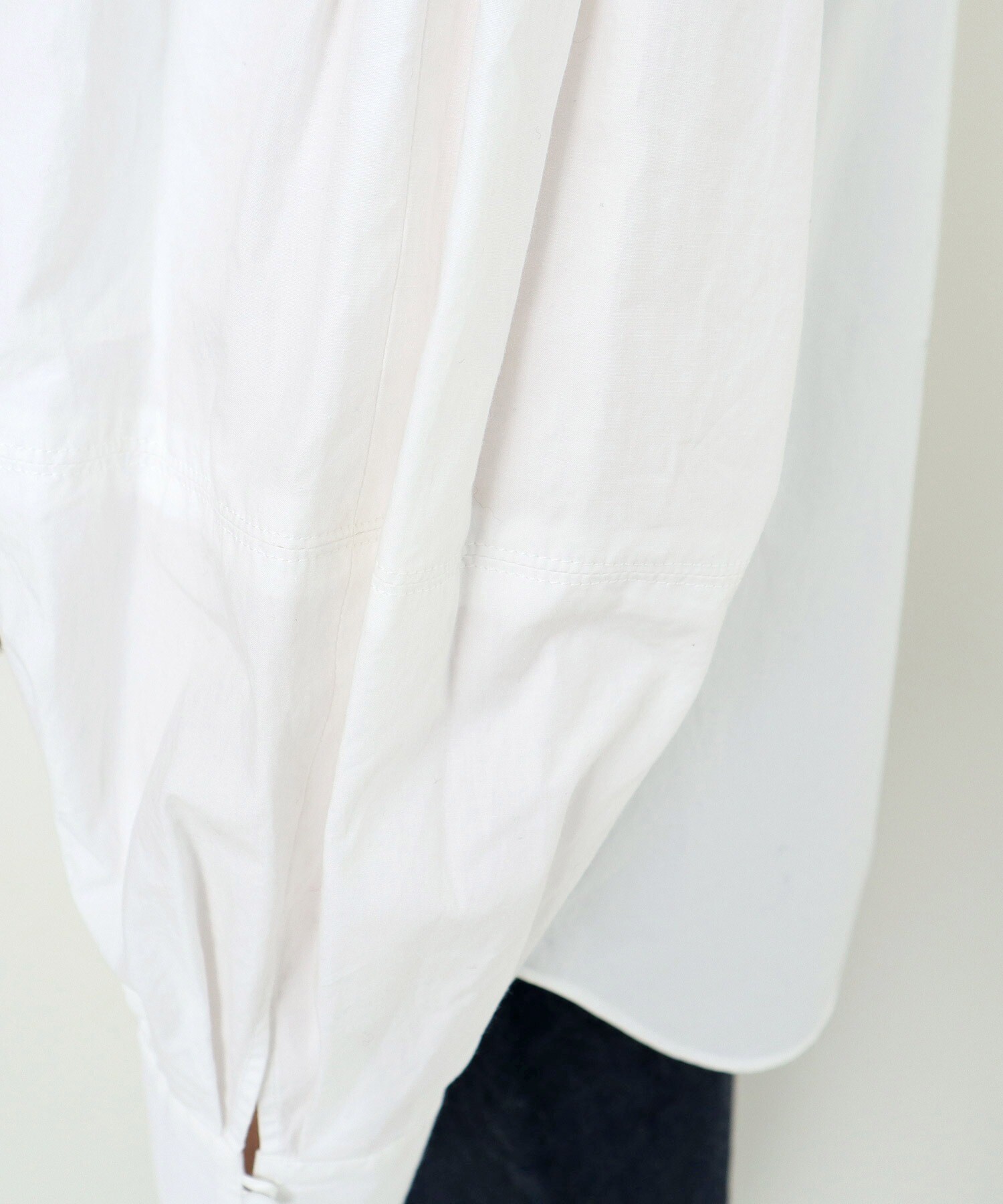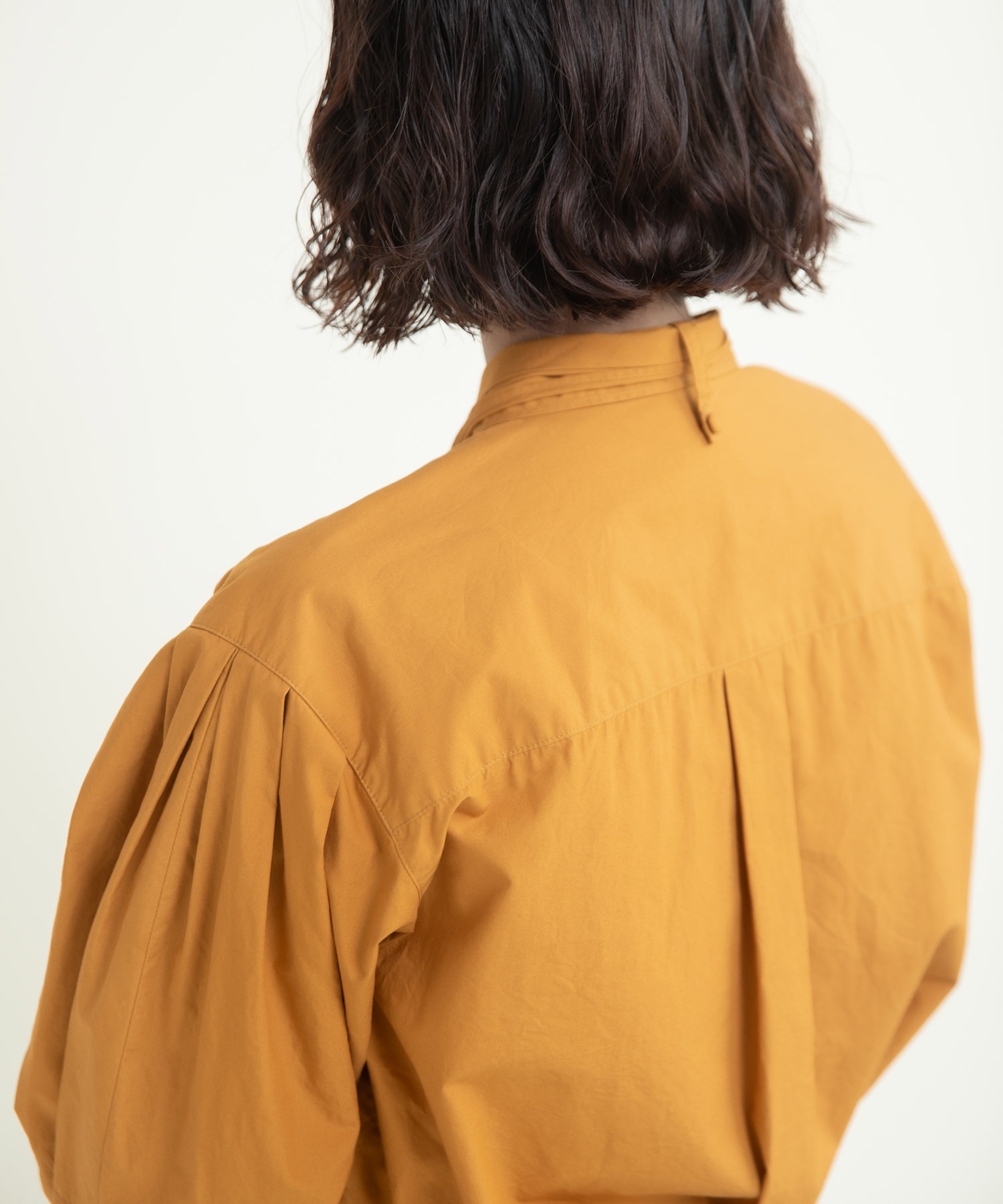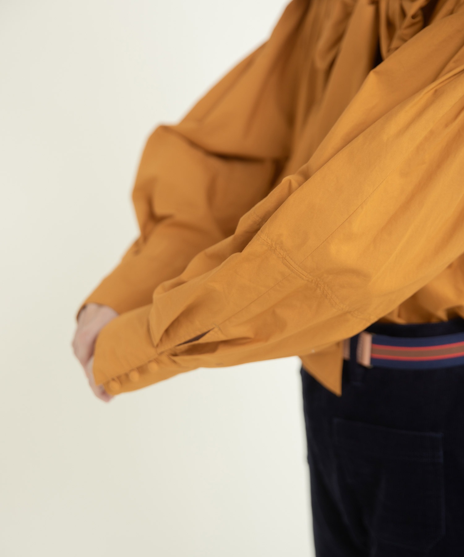 シンプルながらも細部のディテールにこだわり、ボリュームのあるお袖にはタックや切り替え、さり気ないくるみ釦にも注目です。