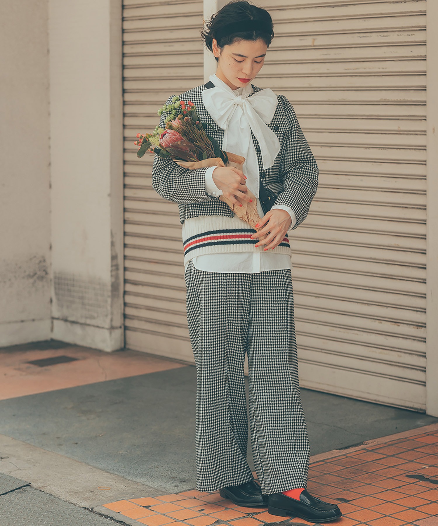 1枚ではもちろん、秋冬にはニットやスウェットを重ねてボウタイを出すスタイリングも◎