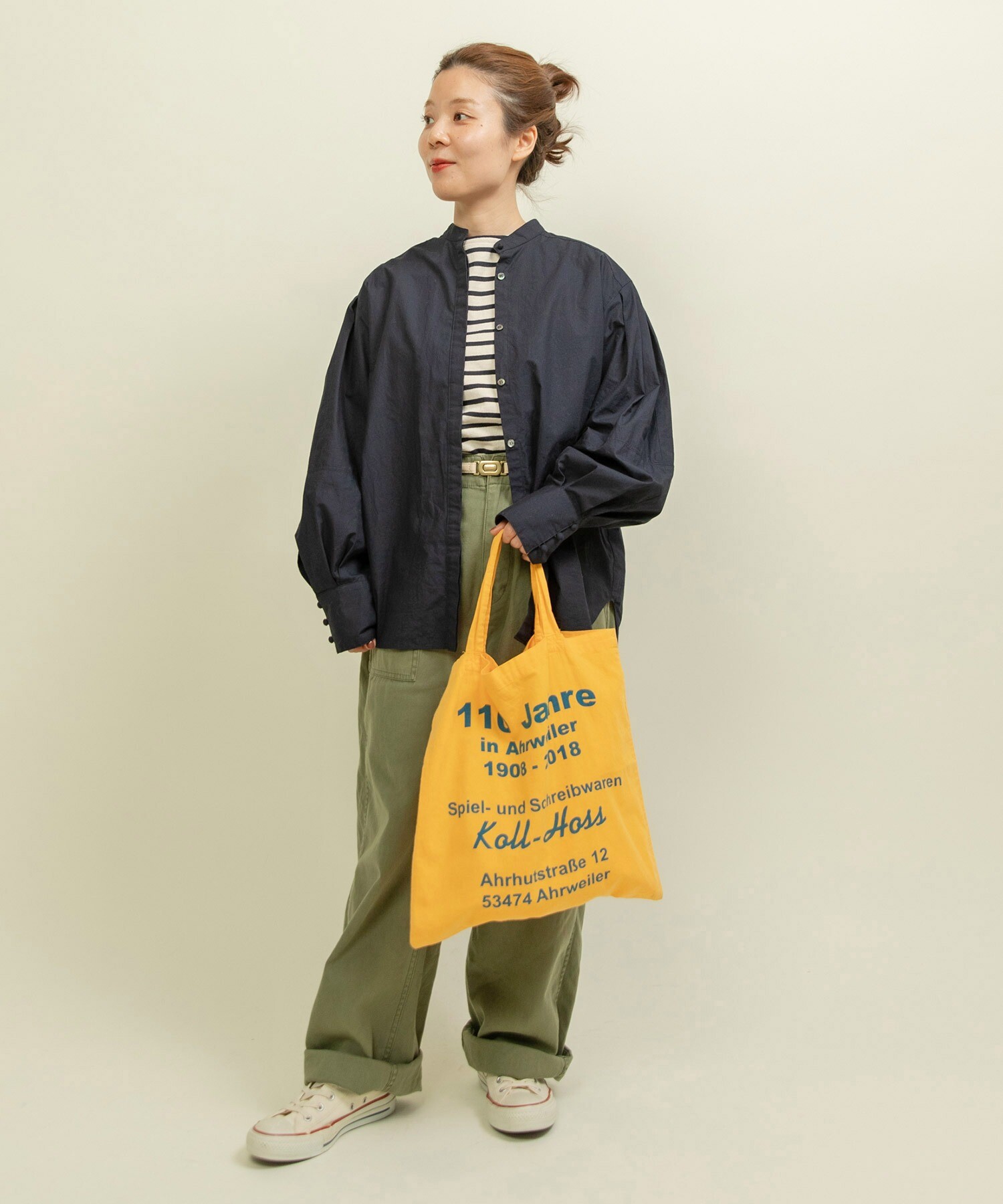 スタンドカラーシャツは前を開けて、端境期のメインの羽織りとしても活躍します。