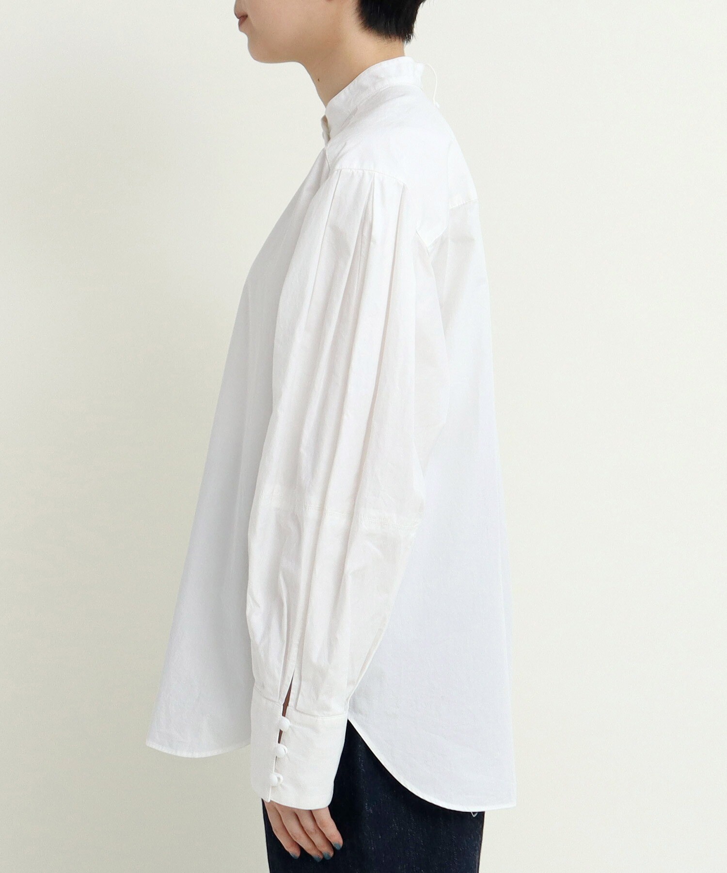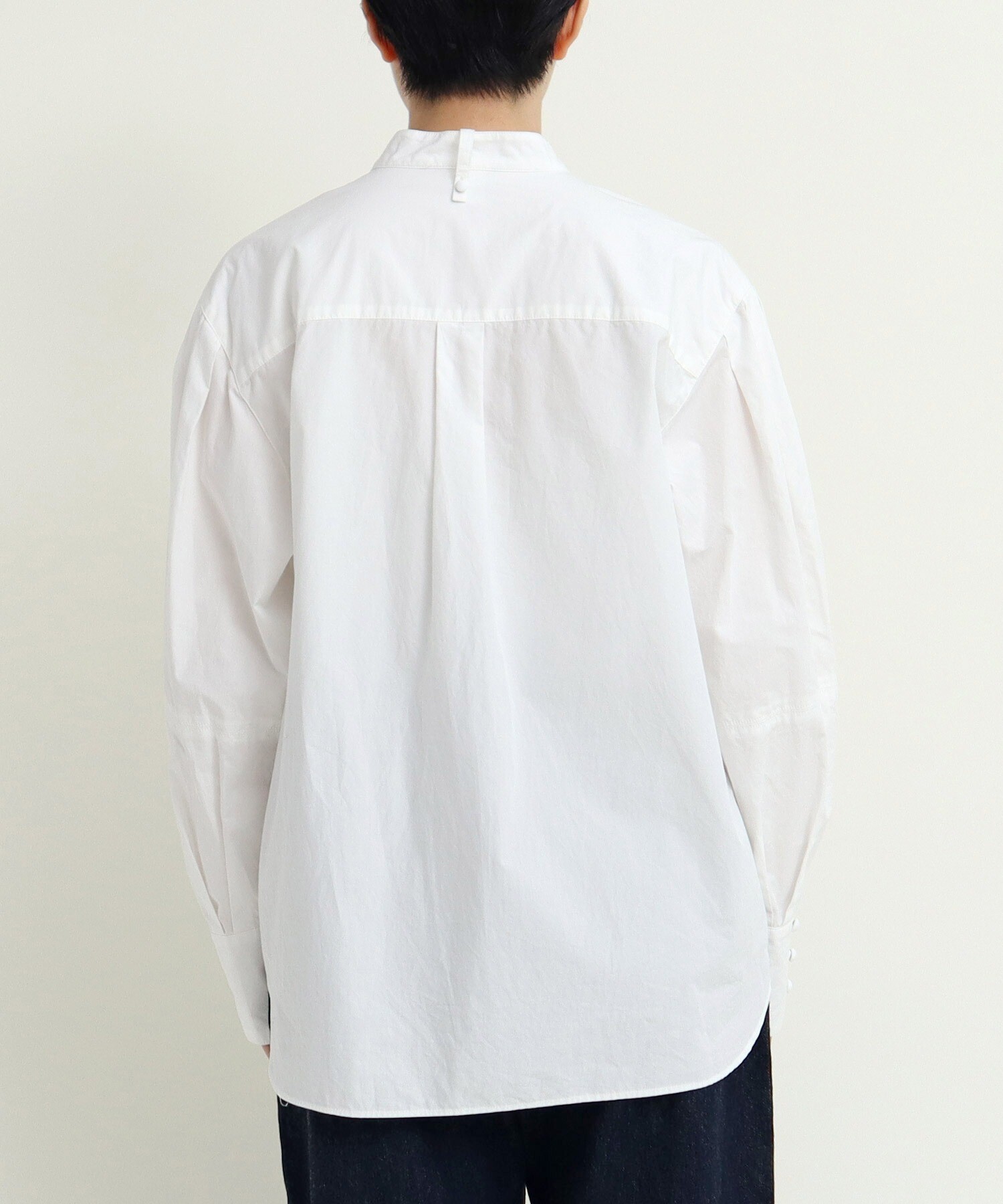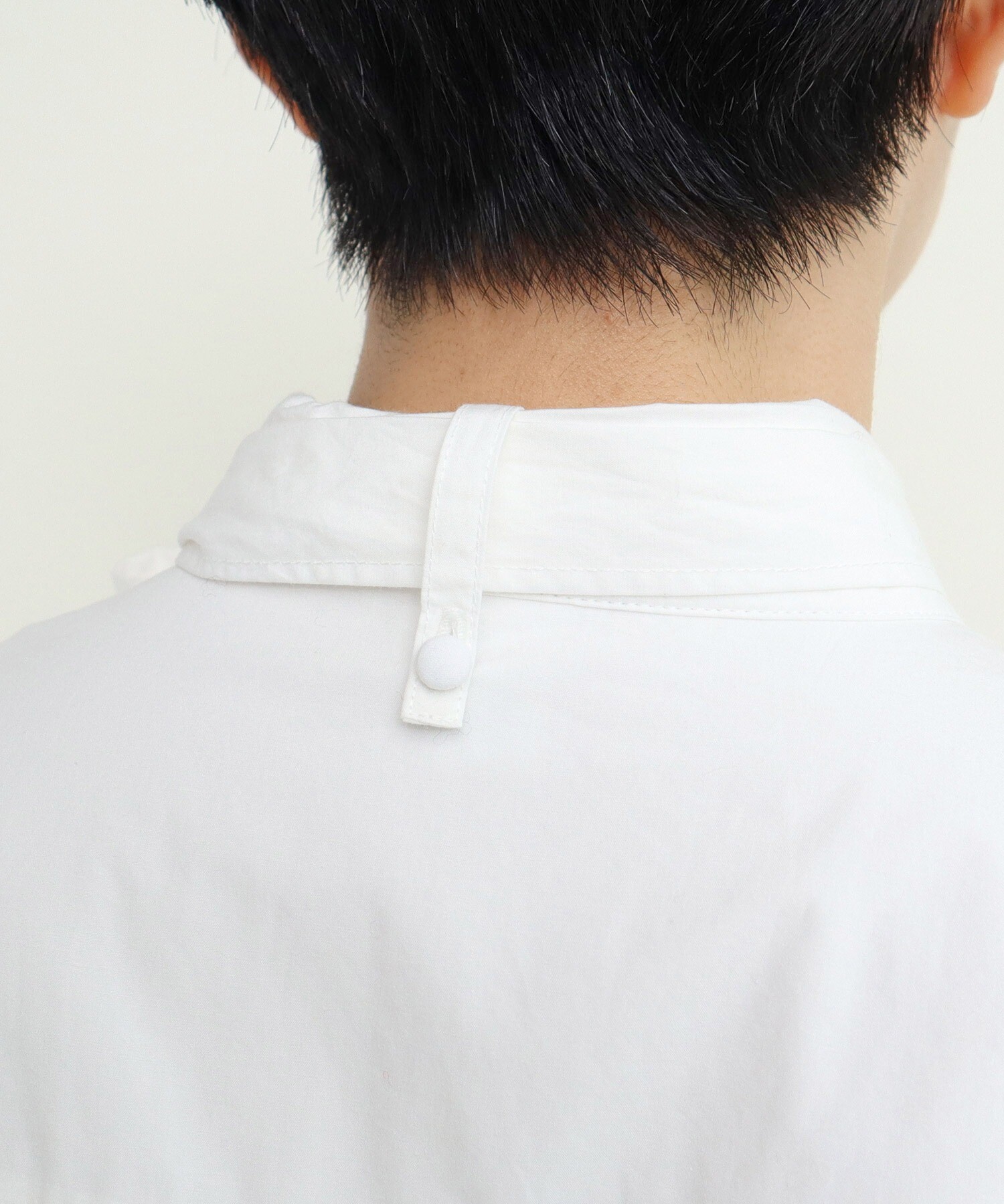 ボウタイは後ろのループに通す仕様なので、取り外してスタンドカラーシャツとしてもお楽しみ頂けます。