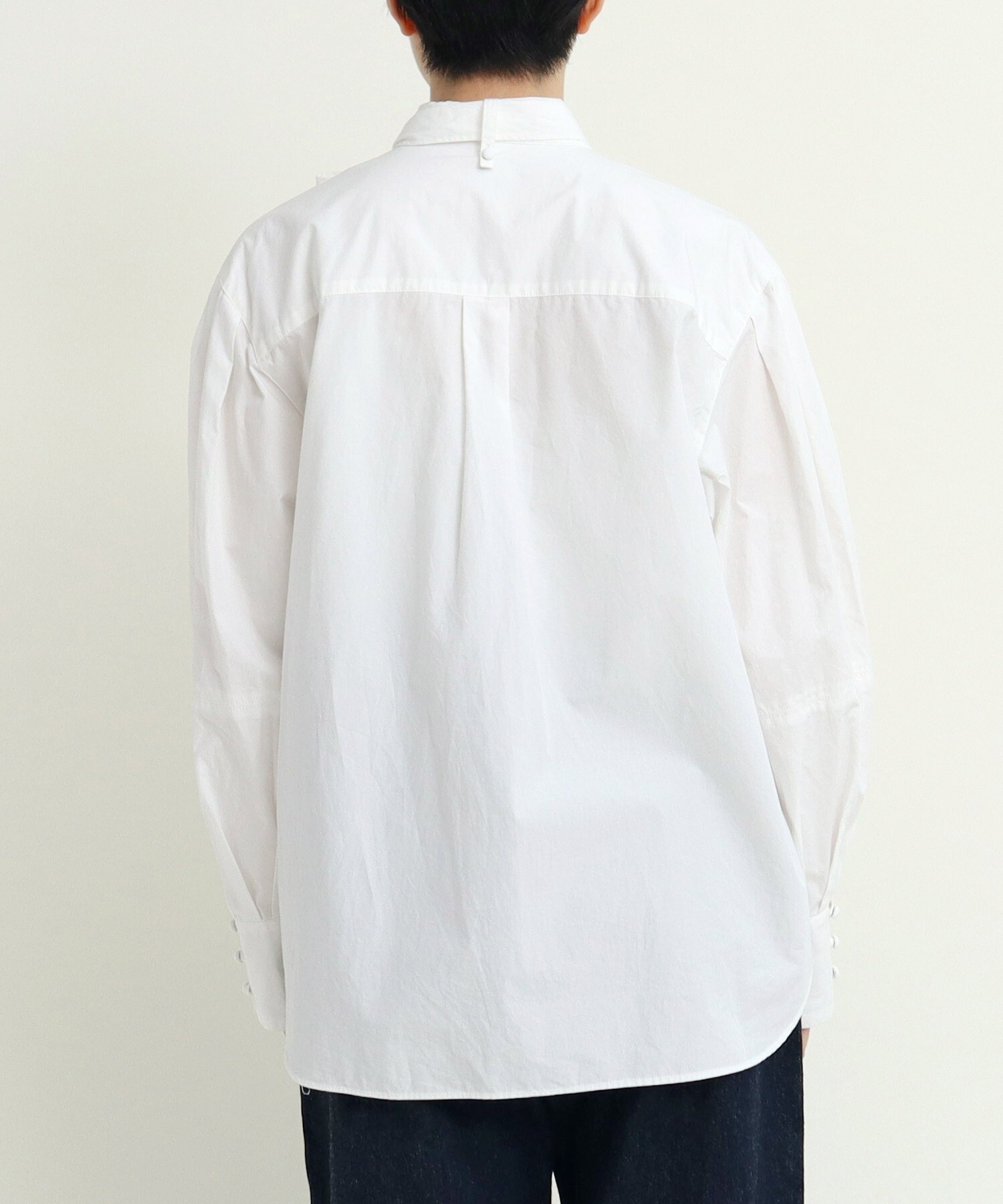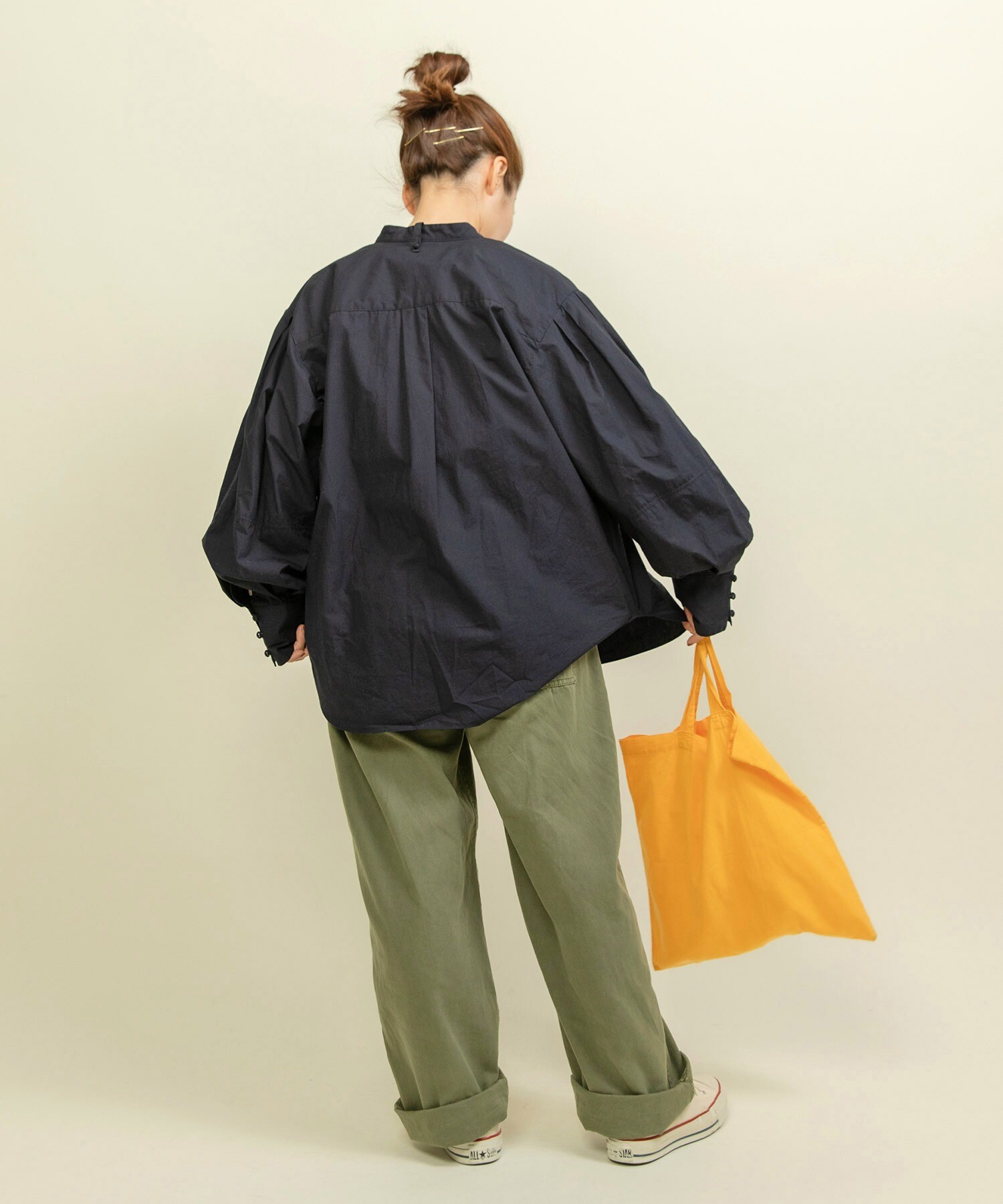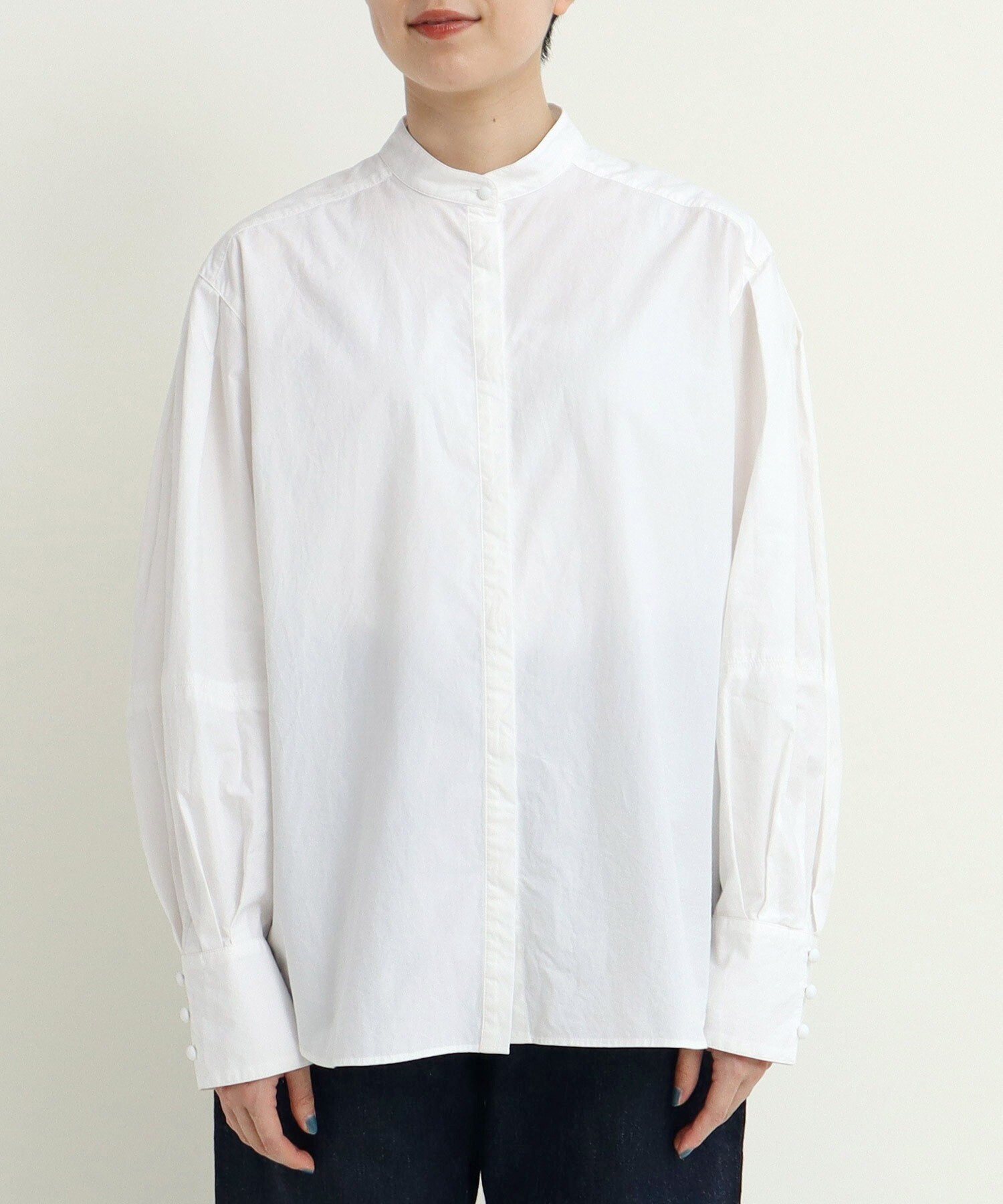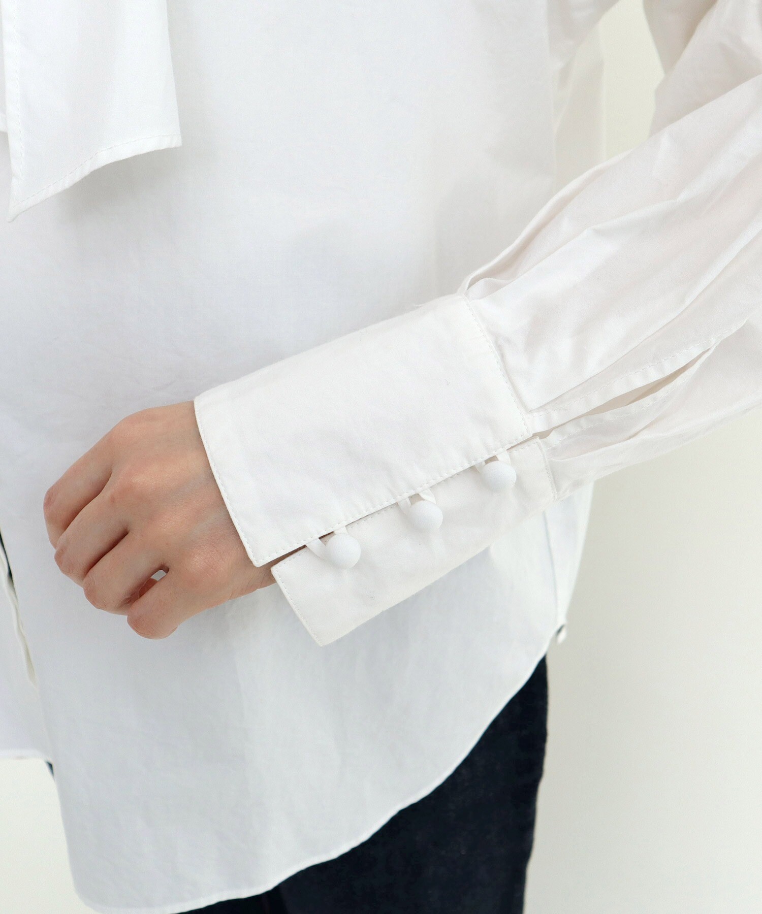 ボウタイは後ろのループに通す仕様なので、取り外してスタンドカラーシャツとしてもお楽しみ頂けます。