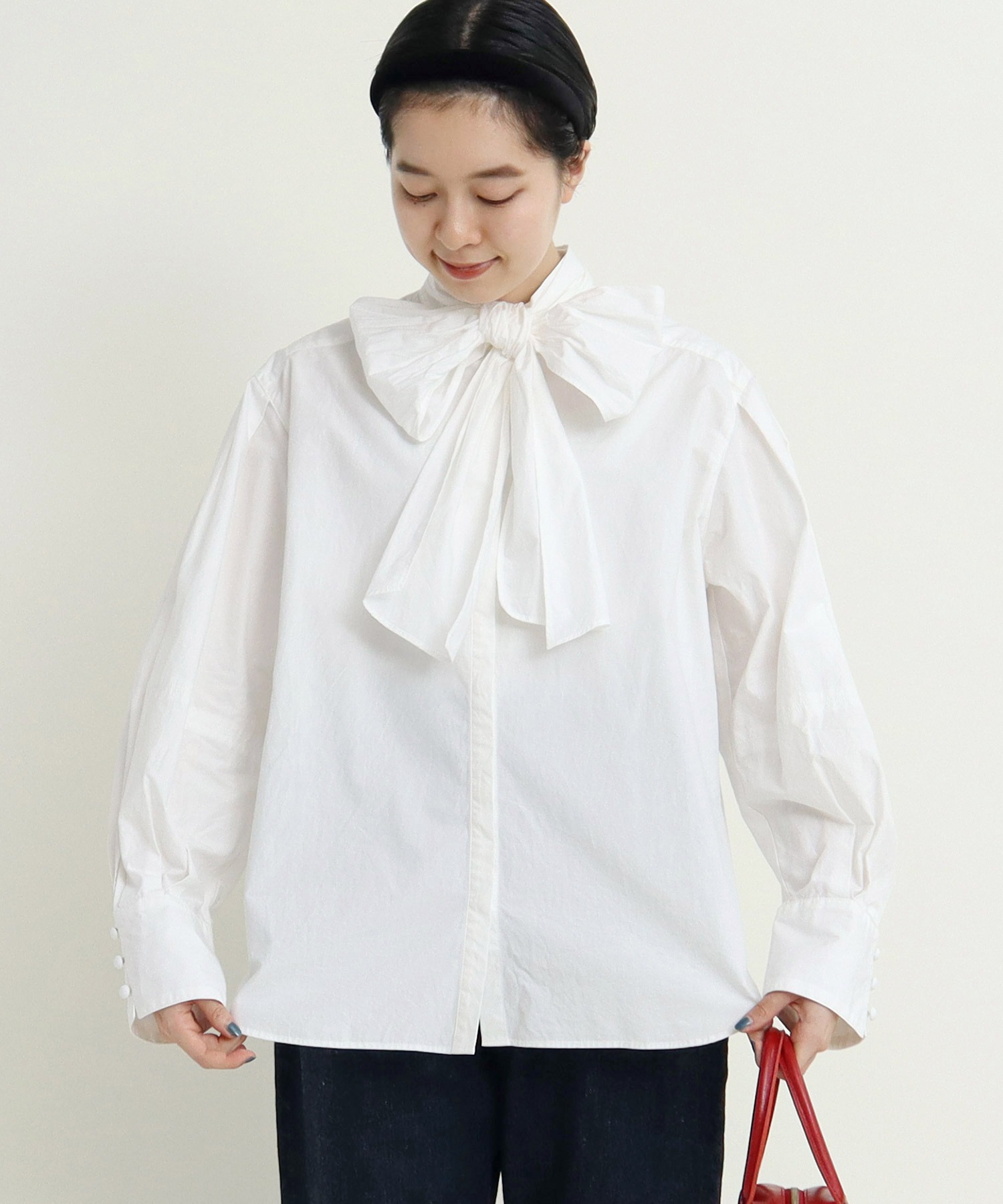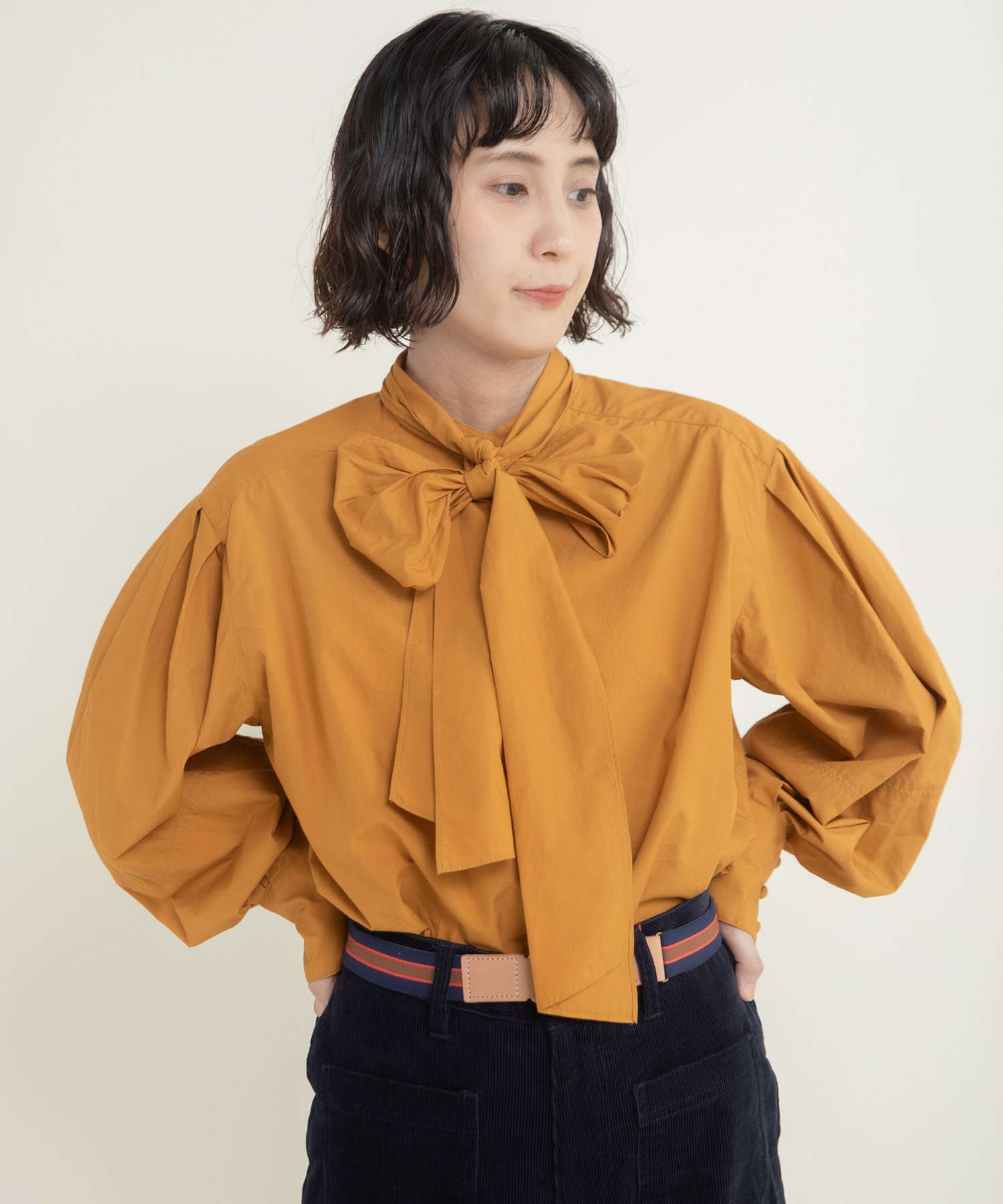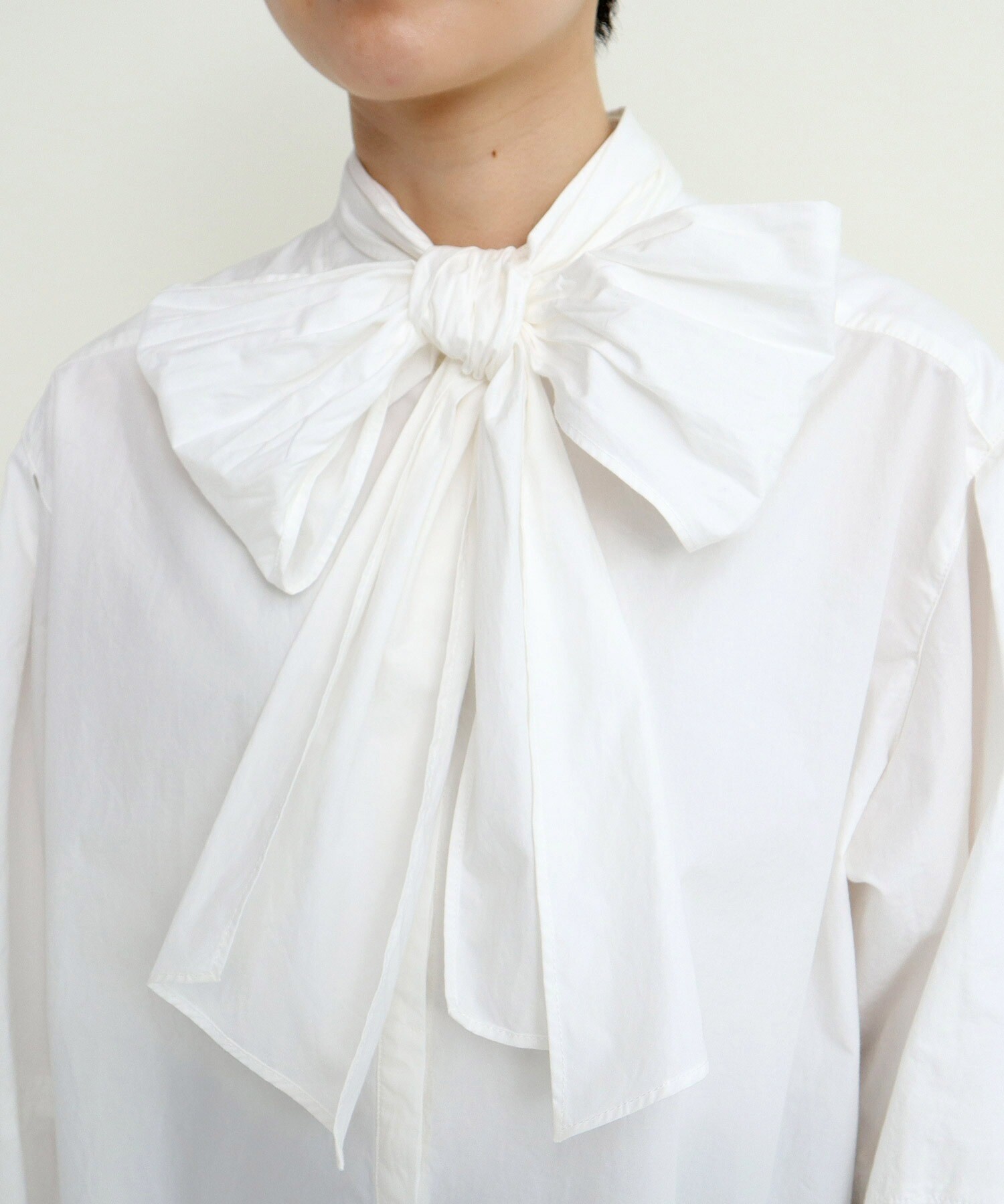 定番でご用意しているボウタイブラウス(1101BL008222)よりもゆったりとしたオーバーサイズでお作りしました。