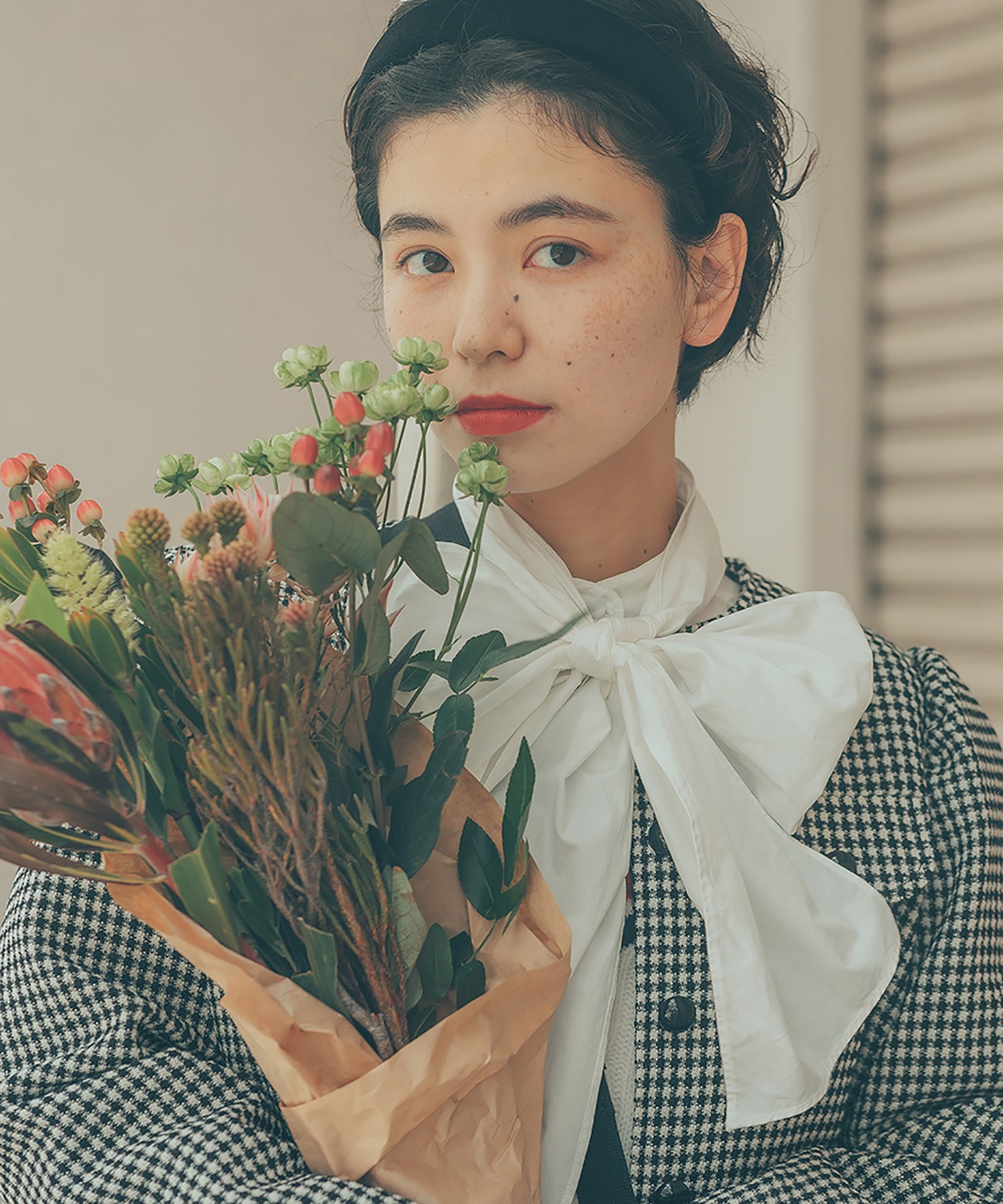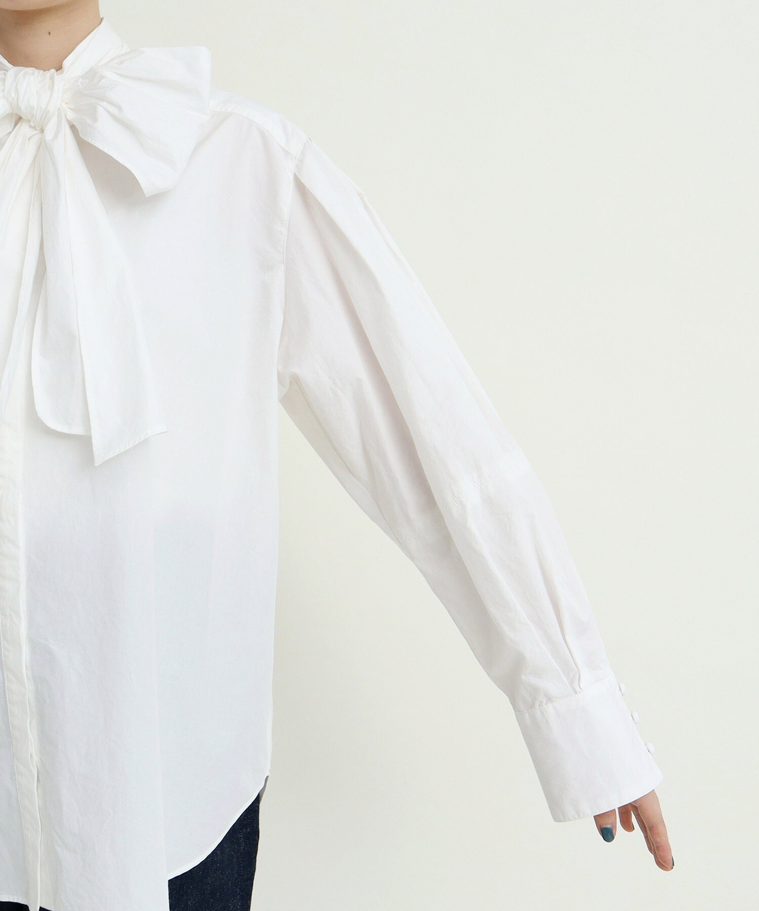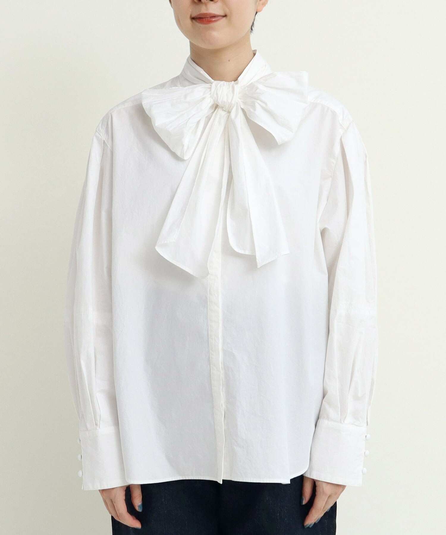 定番でご用意しているボウタイブラウス(1101BL008222)よりもゆったりとしたオーバーサイズでお作りしました。