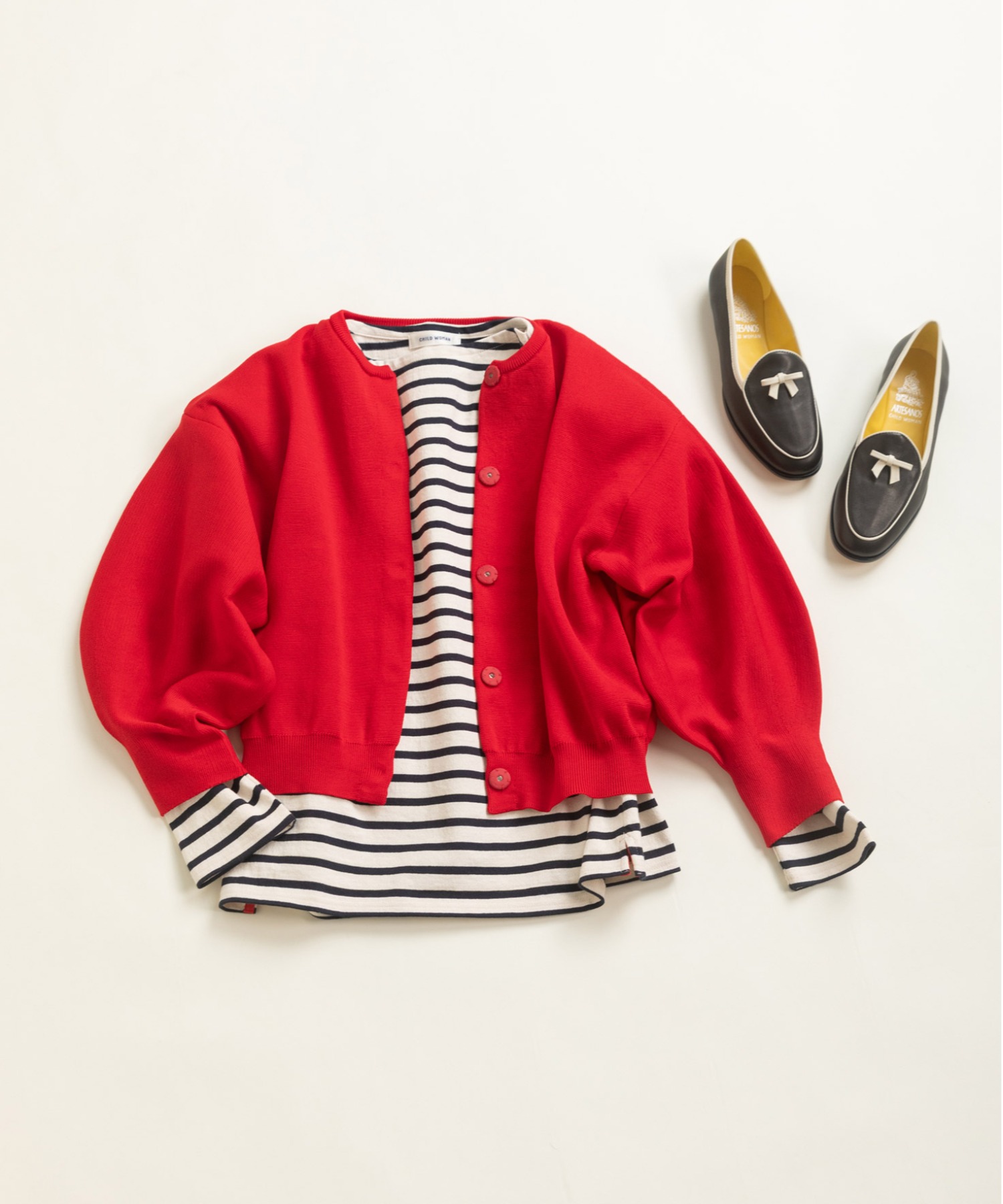 シンプルなデザインなので、柄物のボトムや、アクセサリー・スカーフなど小物とのコーディネートも楽しめます。