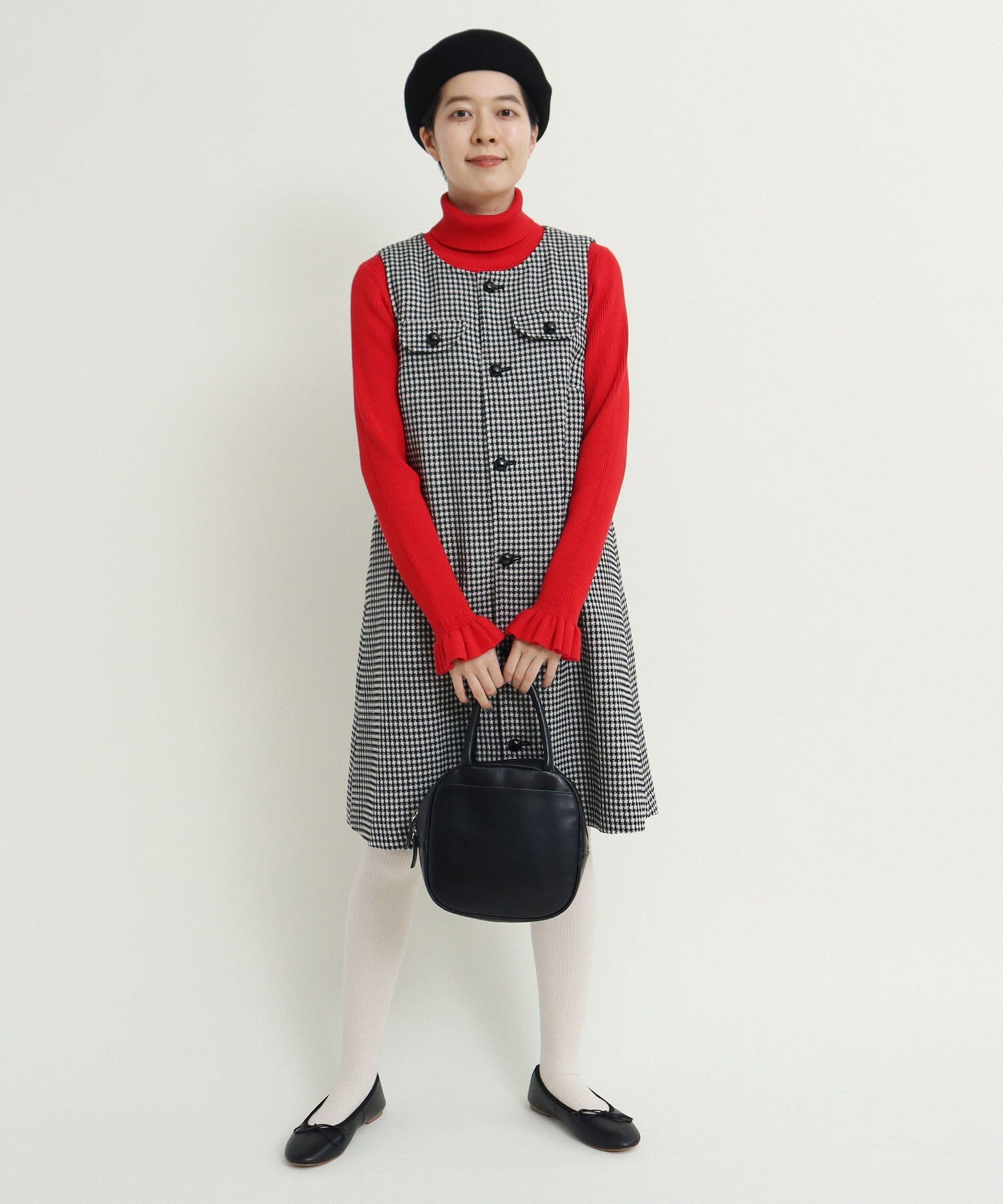 ○ウールギンガム 前開きジャンパースカート
