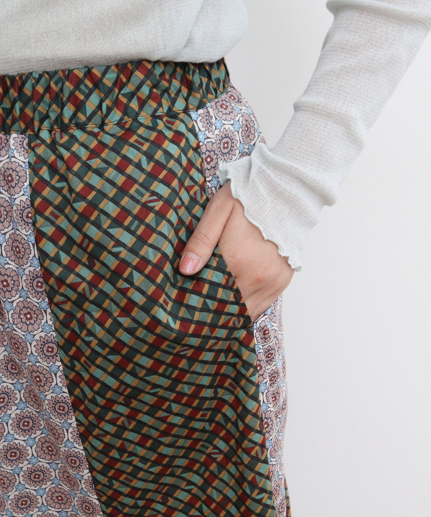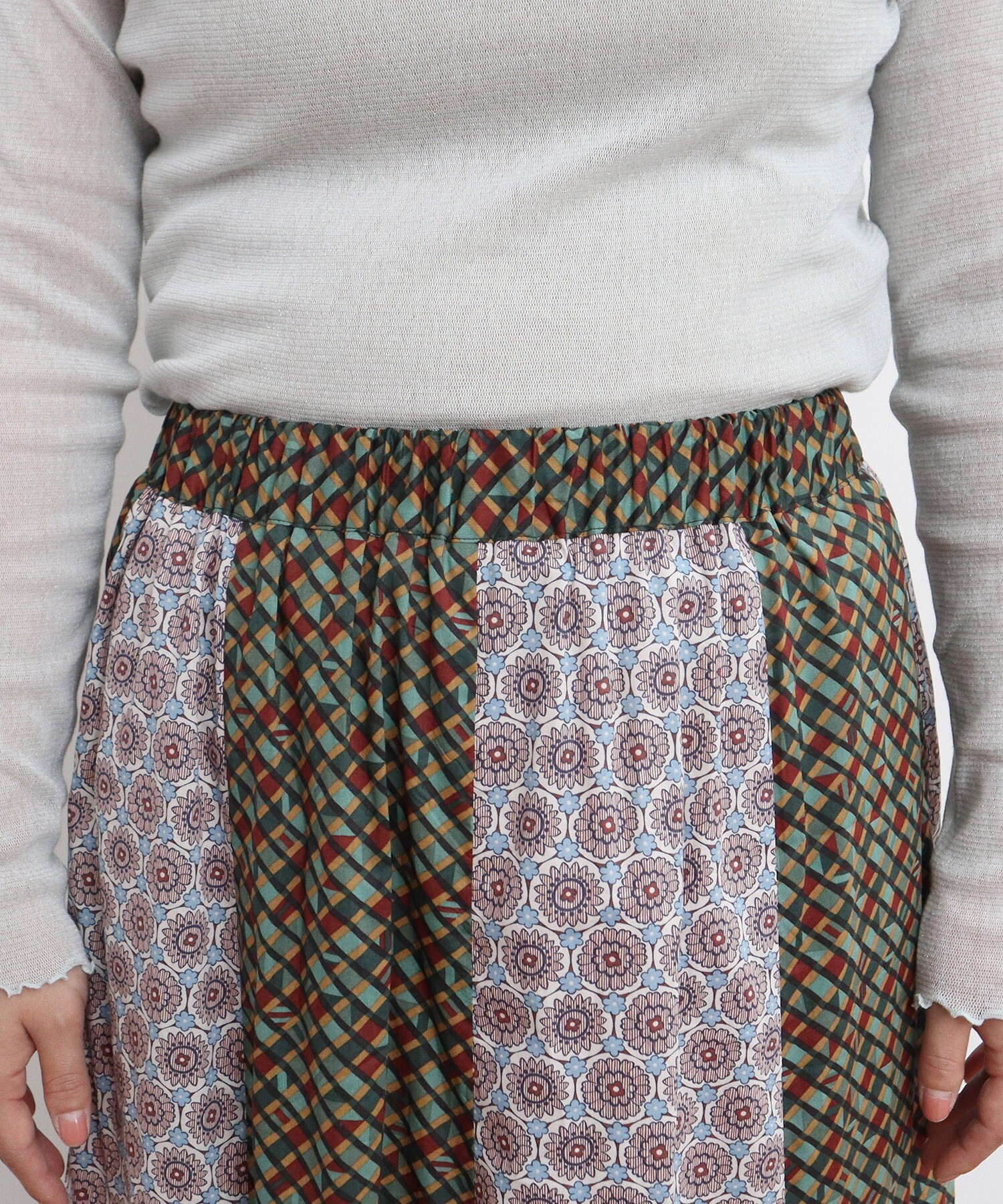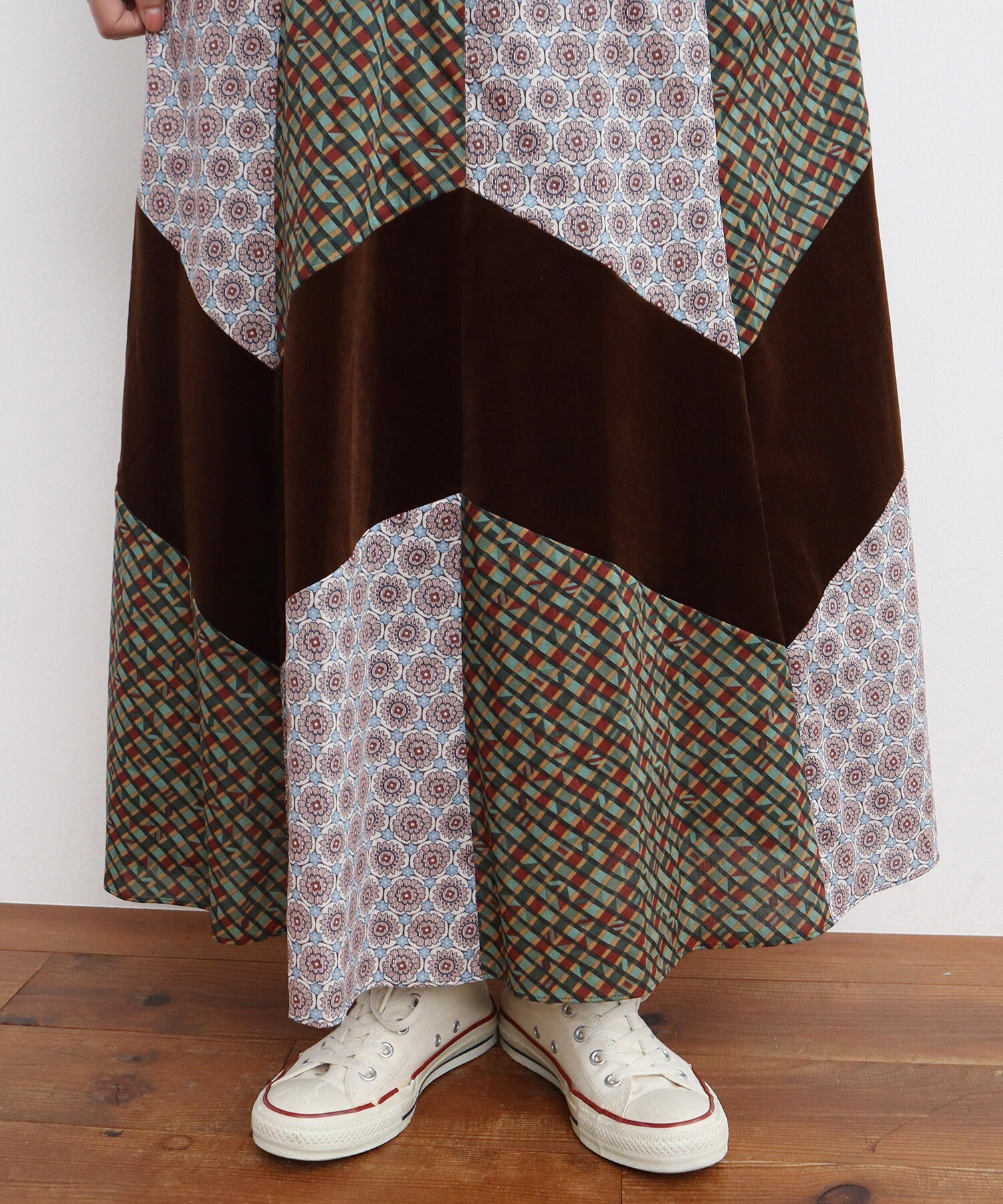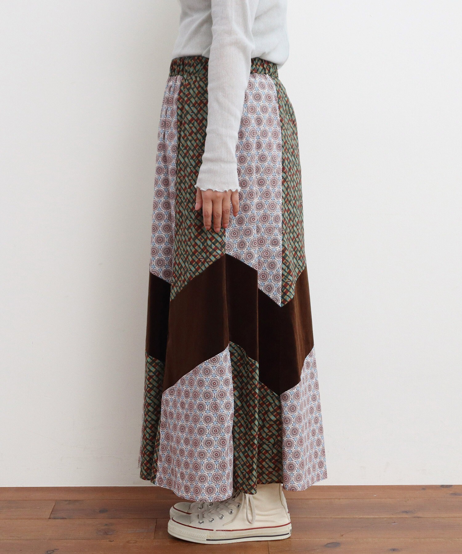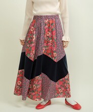 ●○リバティ/LIBERTY パッチワーク&別珍 フレアスカート