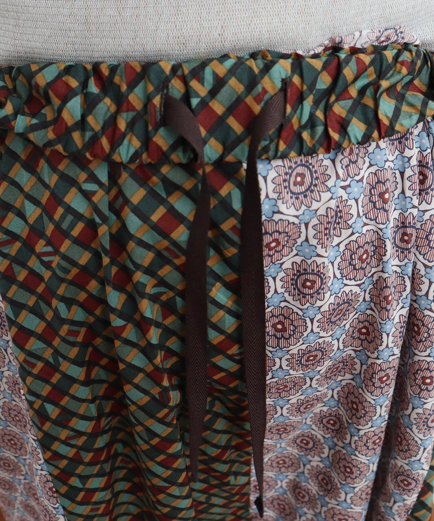 幾何学模様のようなチェック柄や花柄などポップな色使いが目を引く生地をそれぞれ2柄ずつピックアップ。