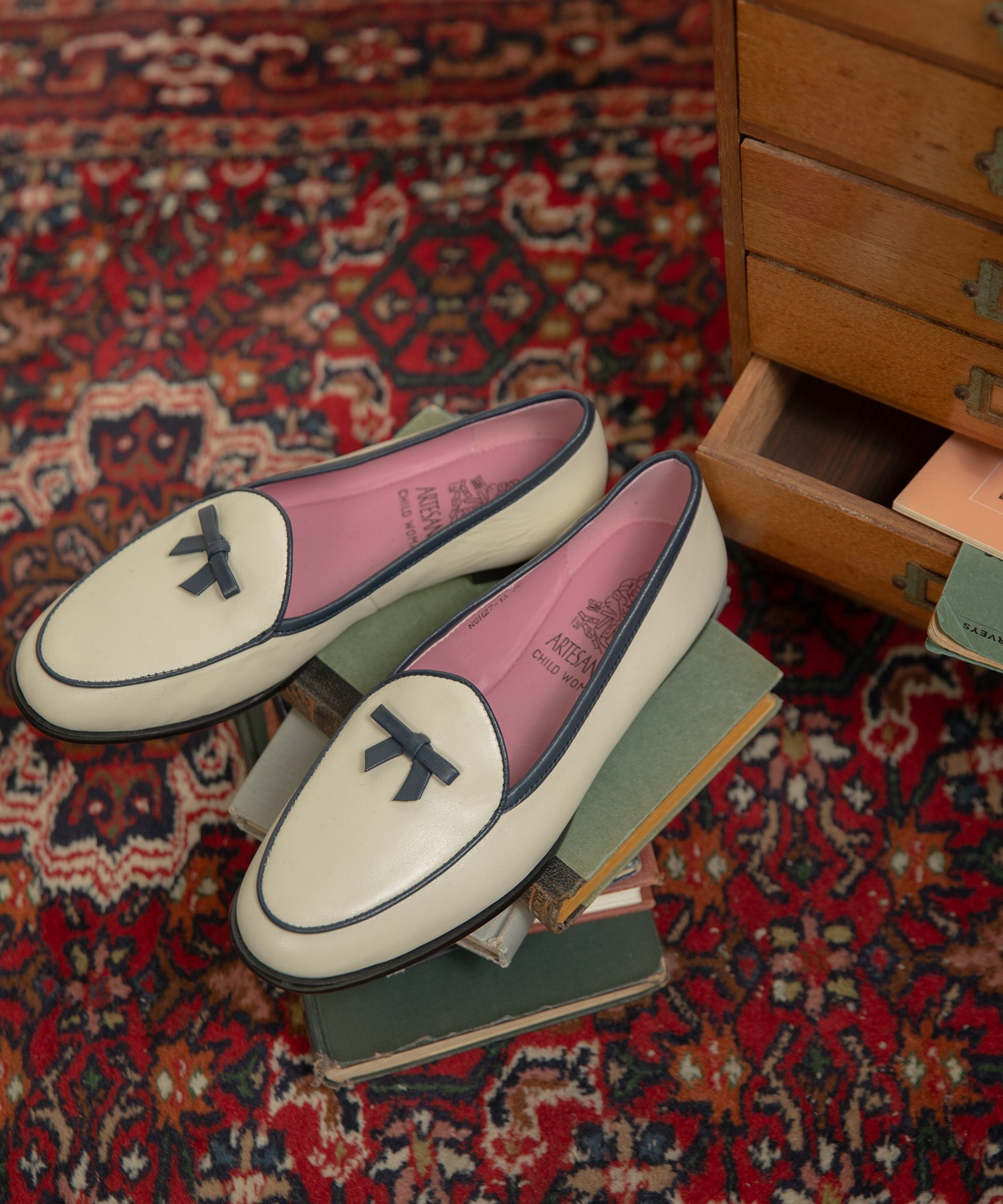 “ARTESANOS”(アルテサノス)はその名の通り、一足一足、手仕事で細部まで丁寧に作り上げられているのが特徴で、インソールにブランド名と共に職人さんの姿が…!!