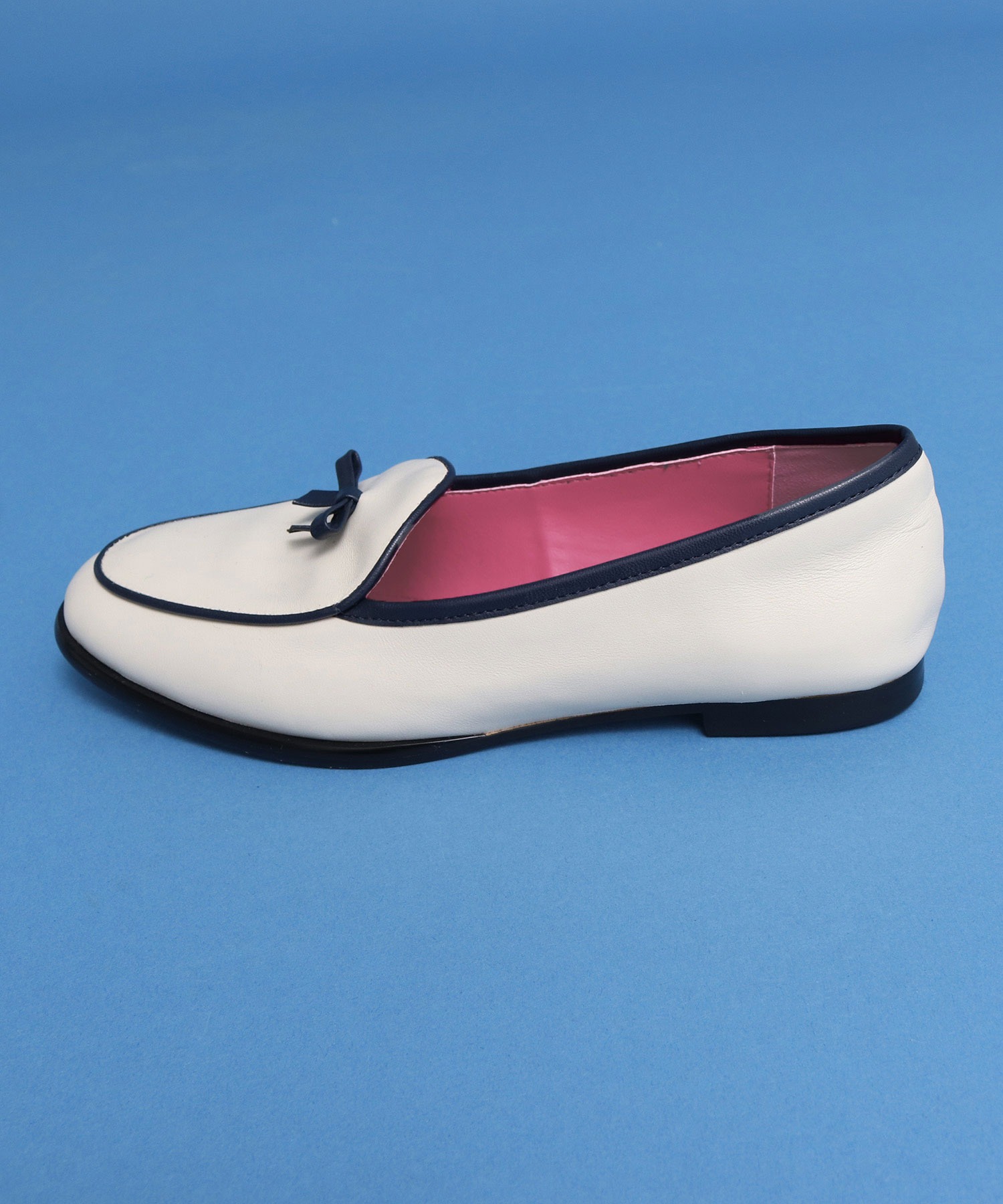 パイピングとリボンの装飾がデザインポイントでもあるベルジャンシューズを通年コーディネートに取り入れやすいキナリ、アカ、チャに加え、今季は新色のクロが仲間入り!