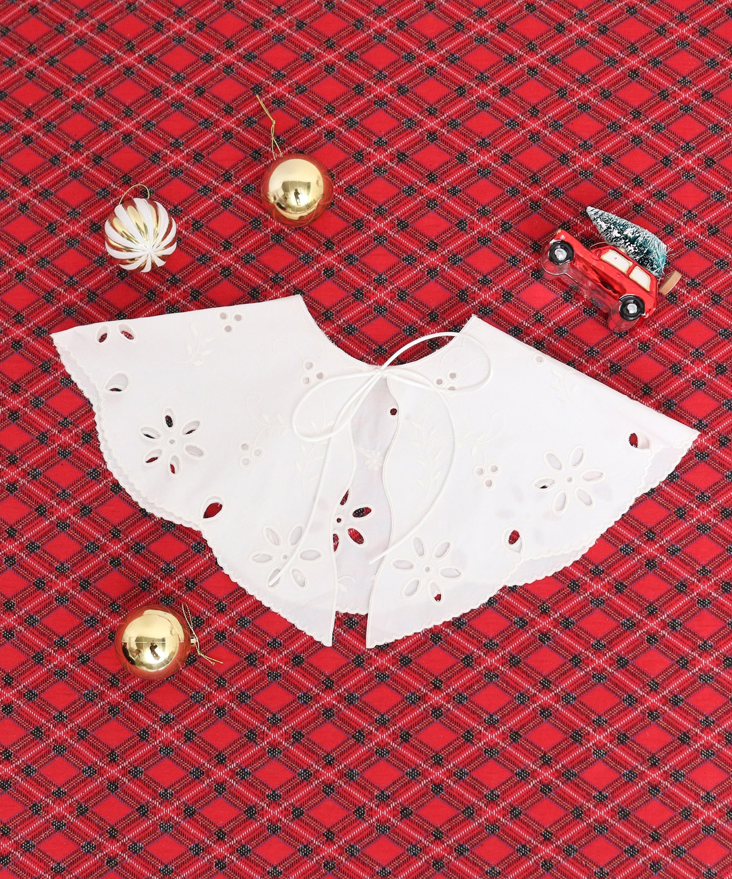 コーディネートの主役になるような大きめな付け襟が欲しいなというスタッフの強い気持ちが形となったつけ襟です。