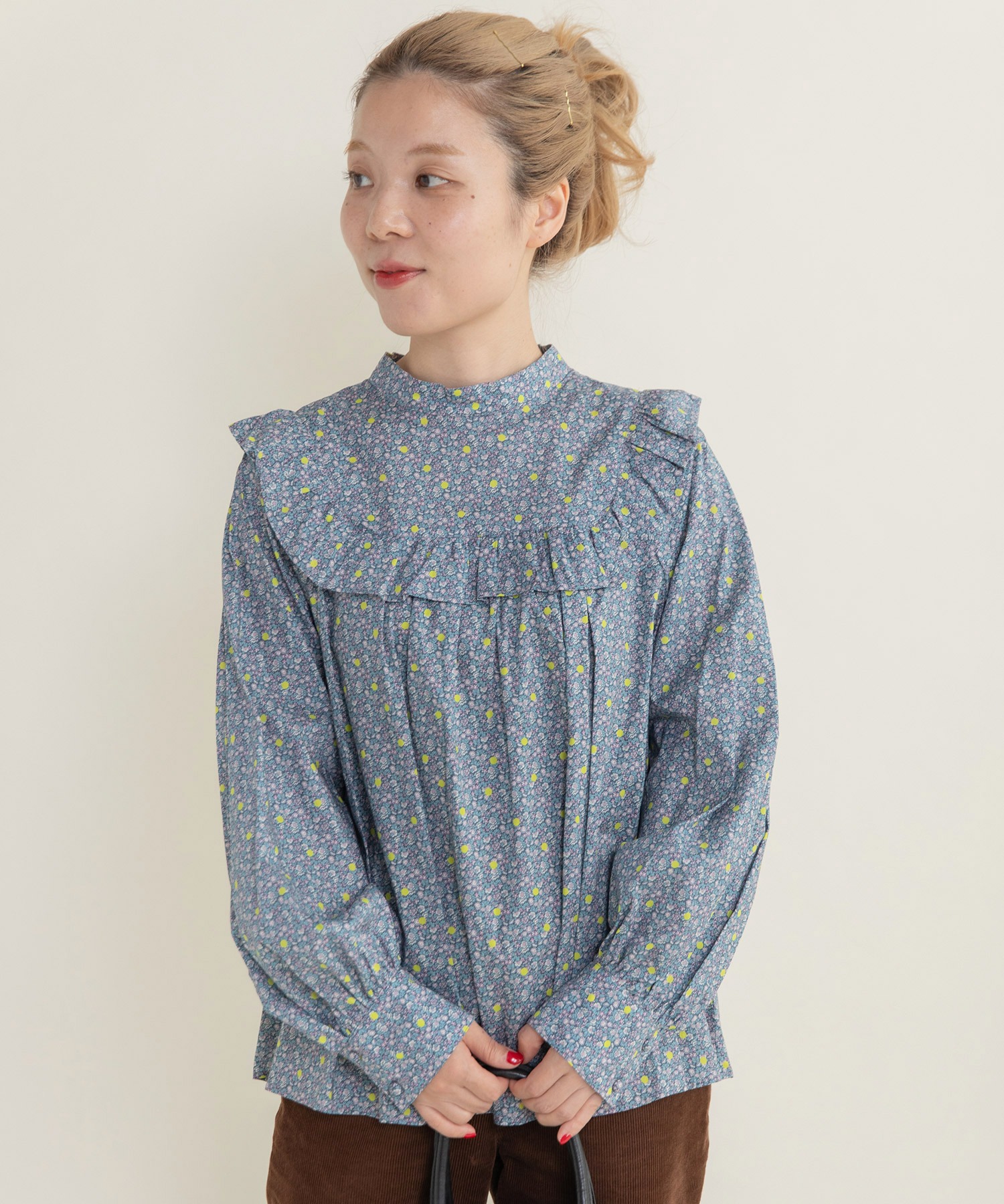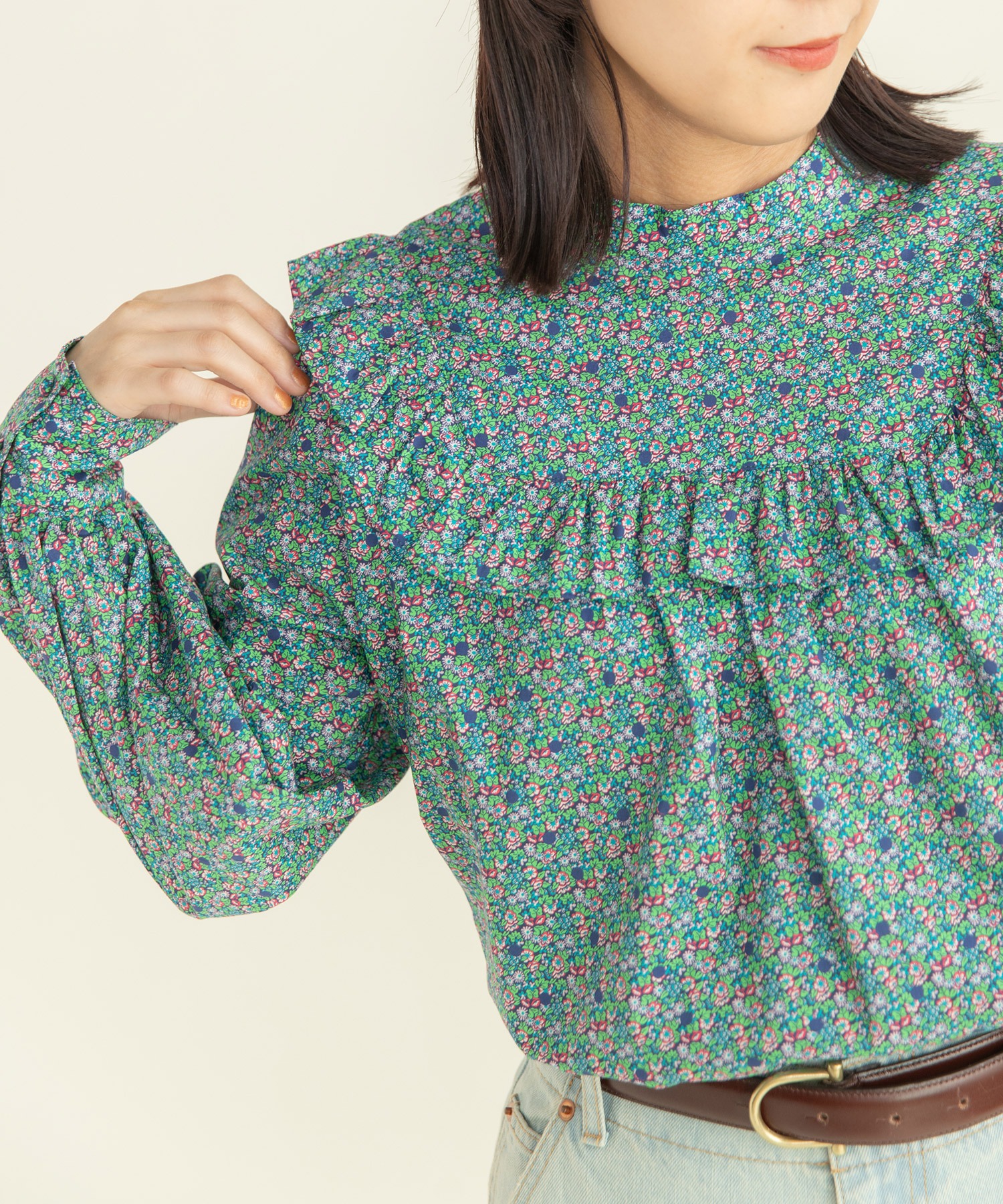 リバティプリントを使用した、たっぷりのヨークフリルがガーリーな印象のブラウスをWEB限定でご用意しました。