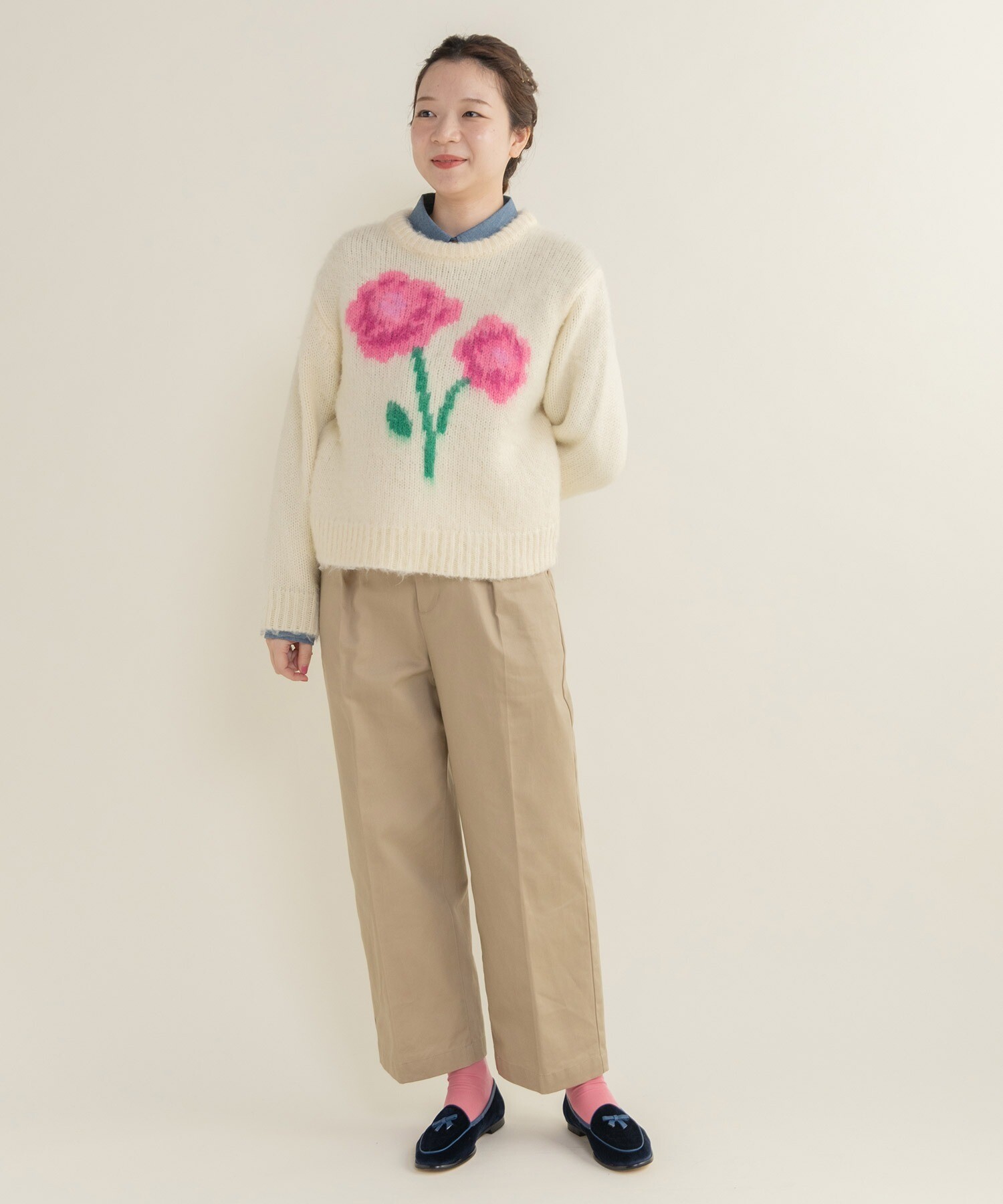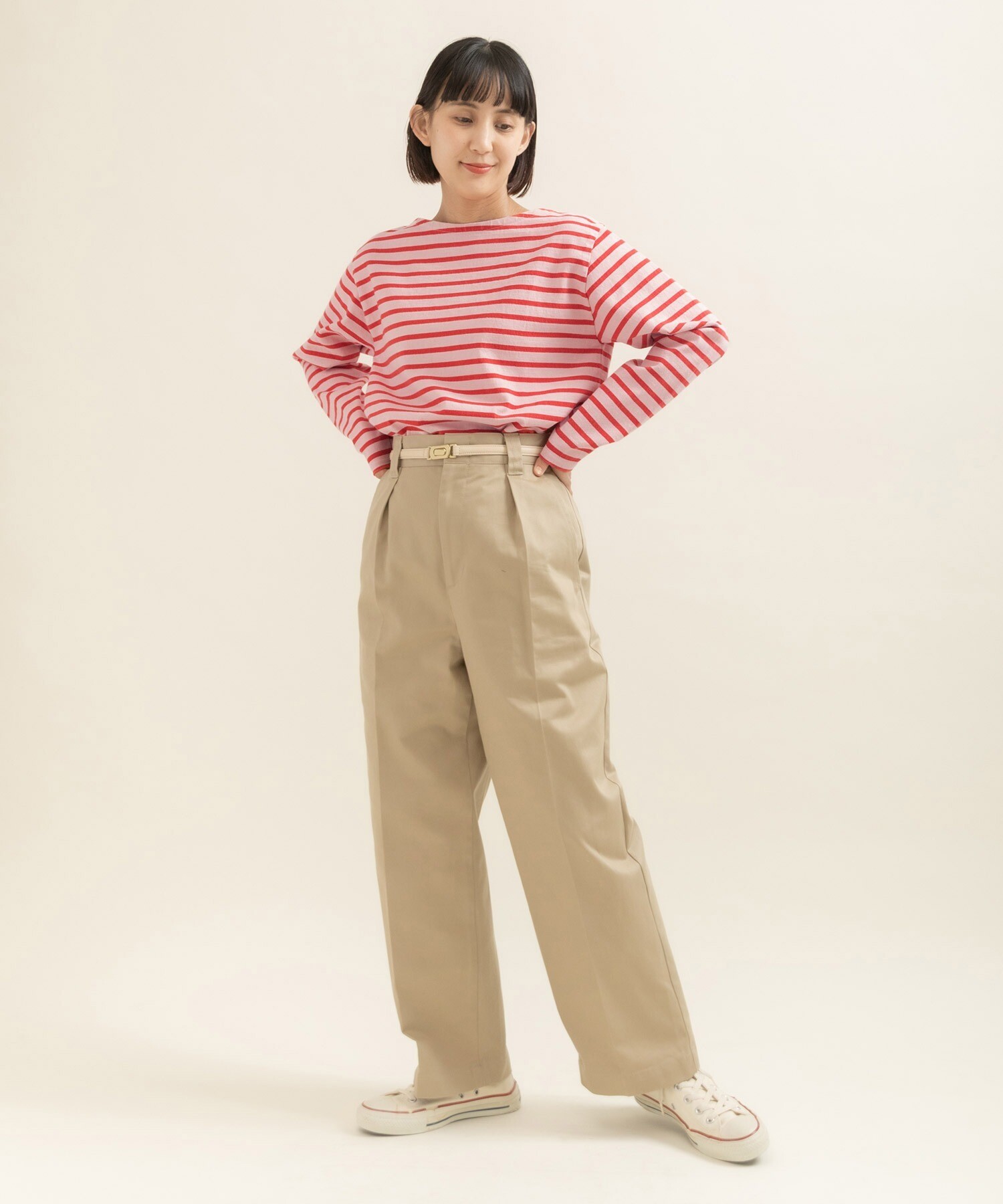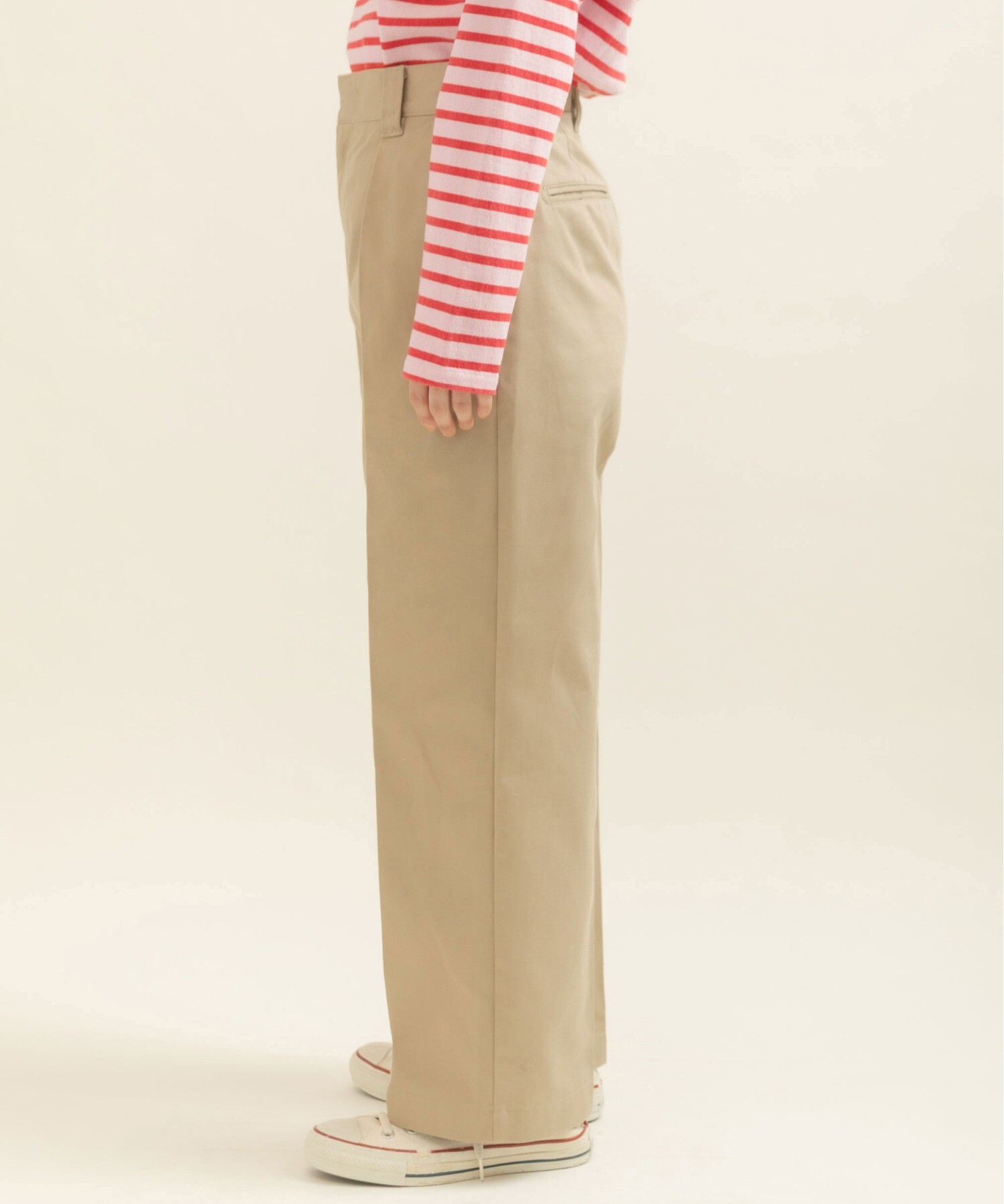 コンパクトなシルエットのパンツにセンターラインを入れ、今回はよりすっきりとした印象のパンツに仕上げました。