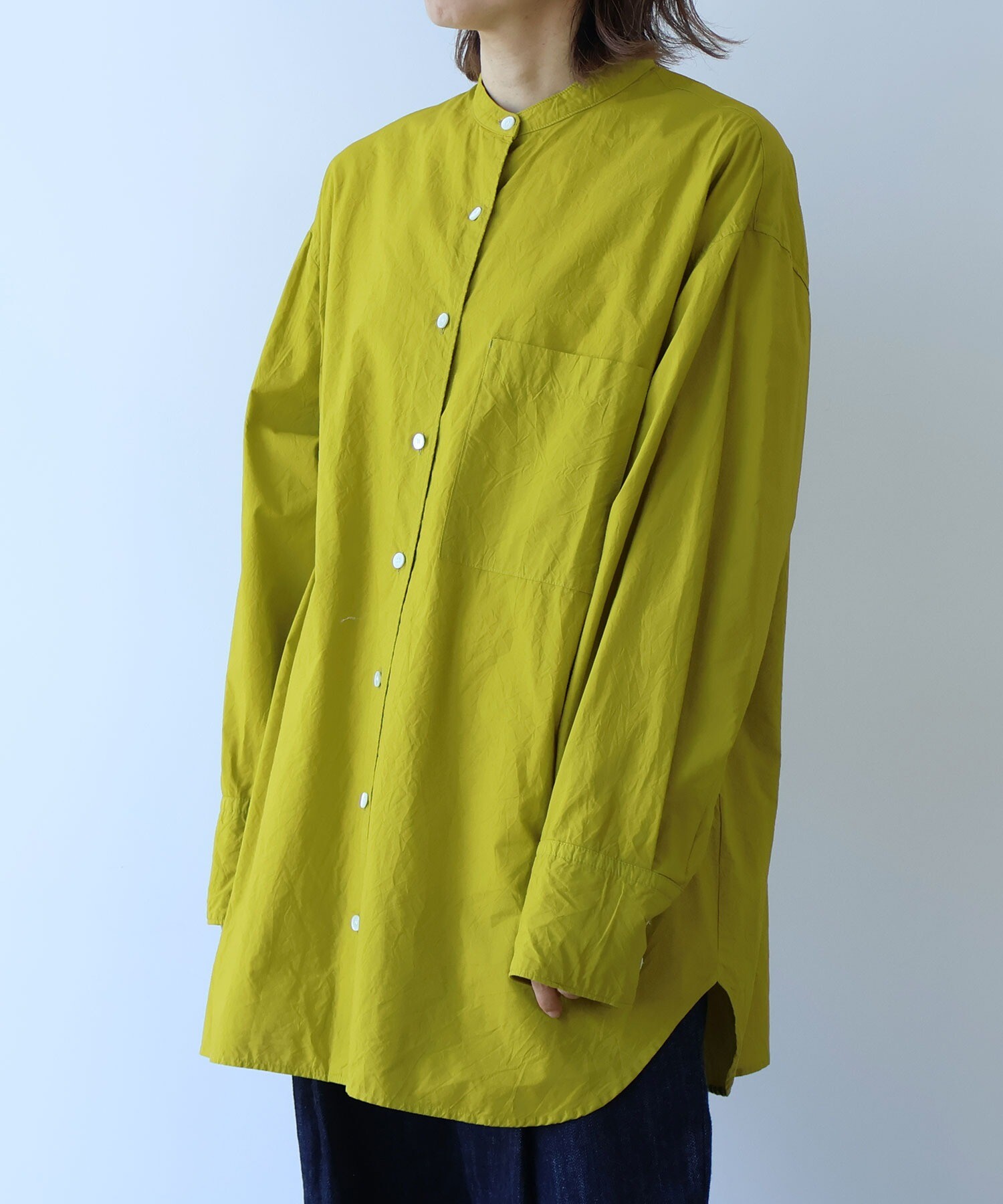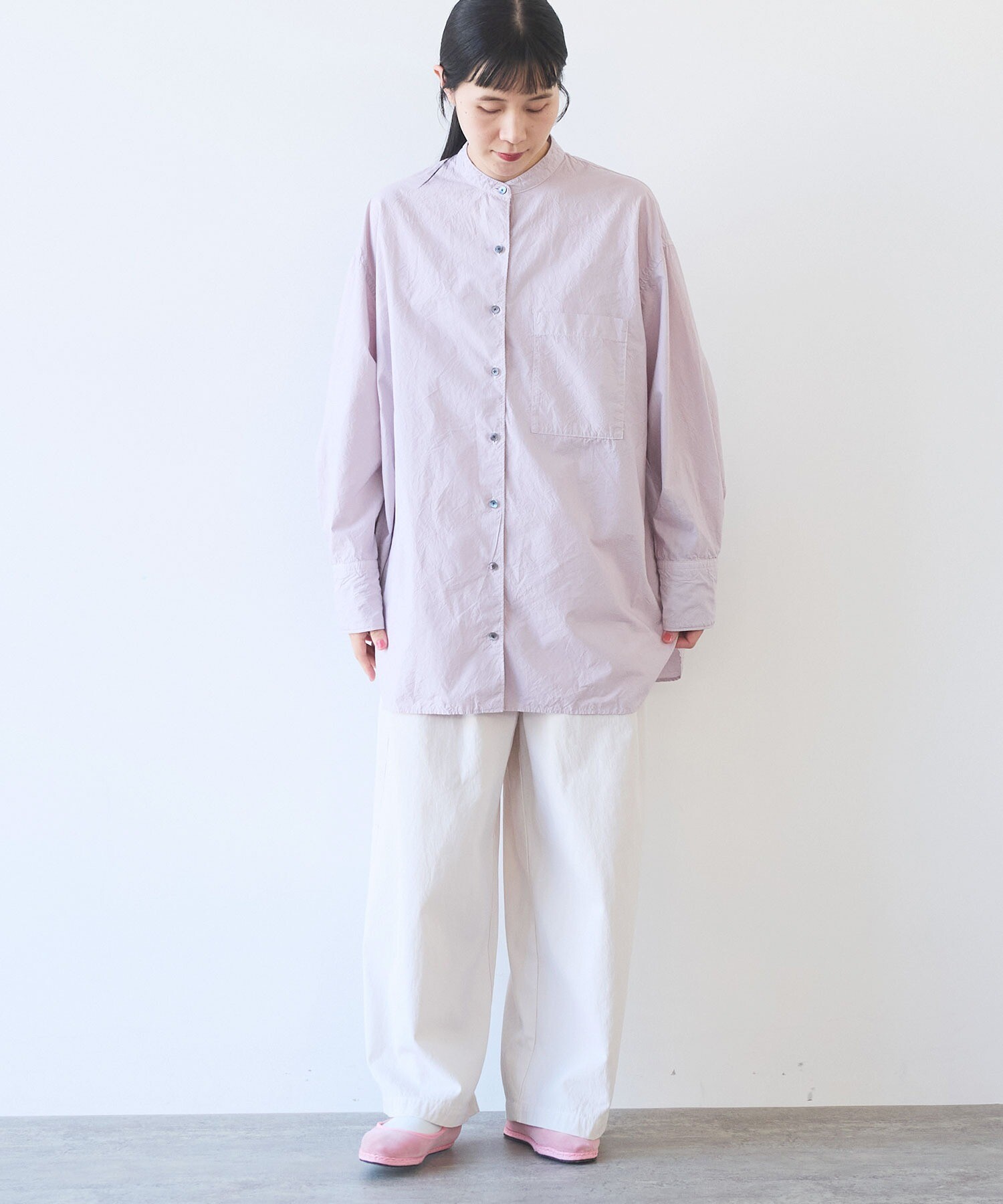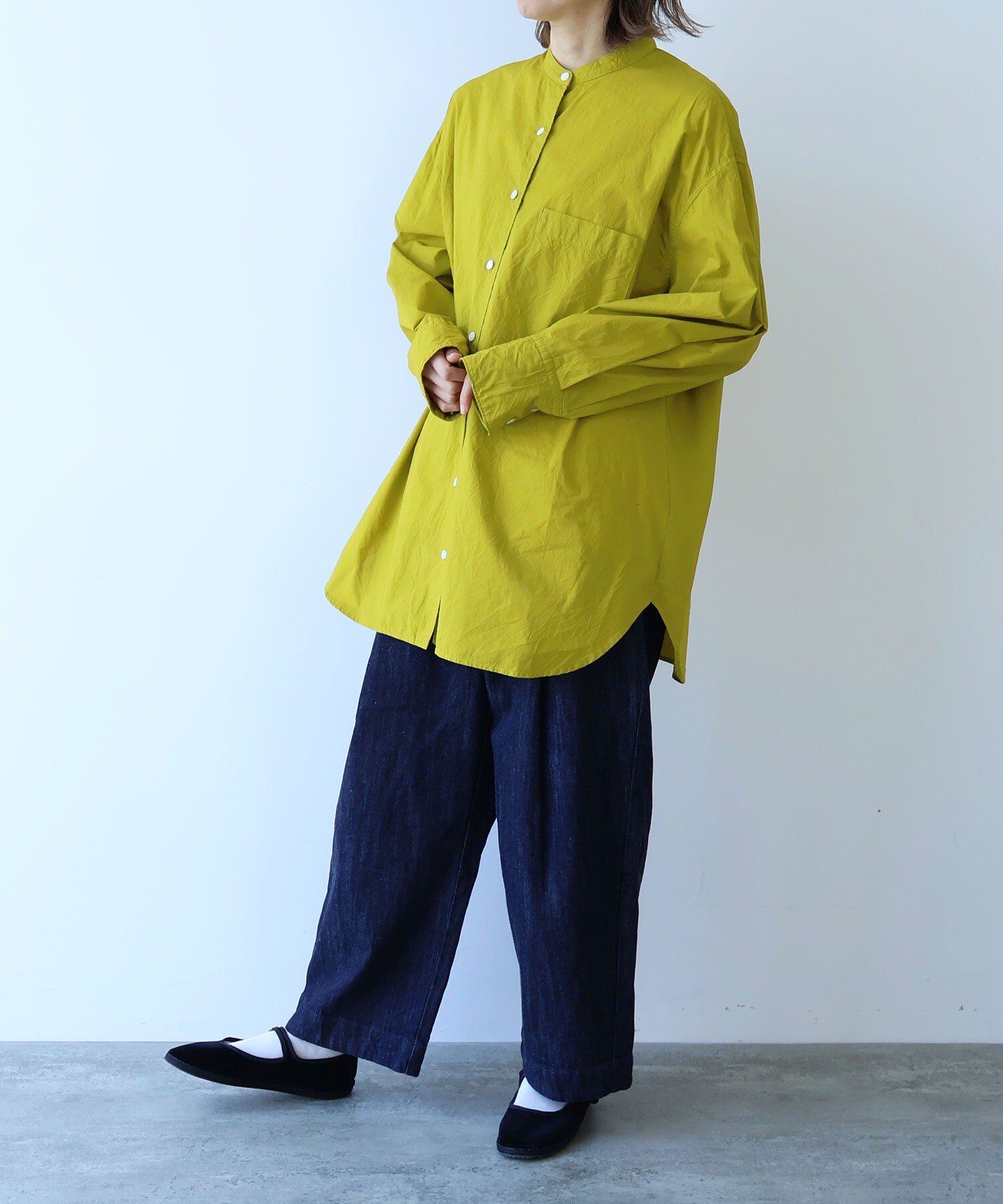 袖はゆったり、ちょっと長めで、メンズシャツを借りてきたみたいな抜け感も。