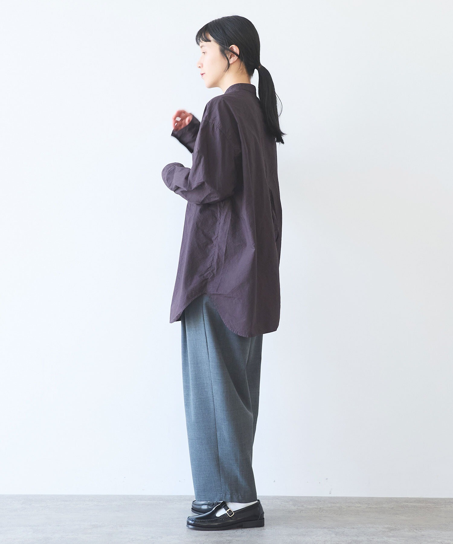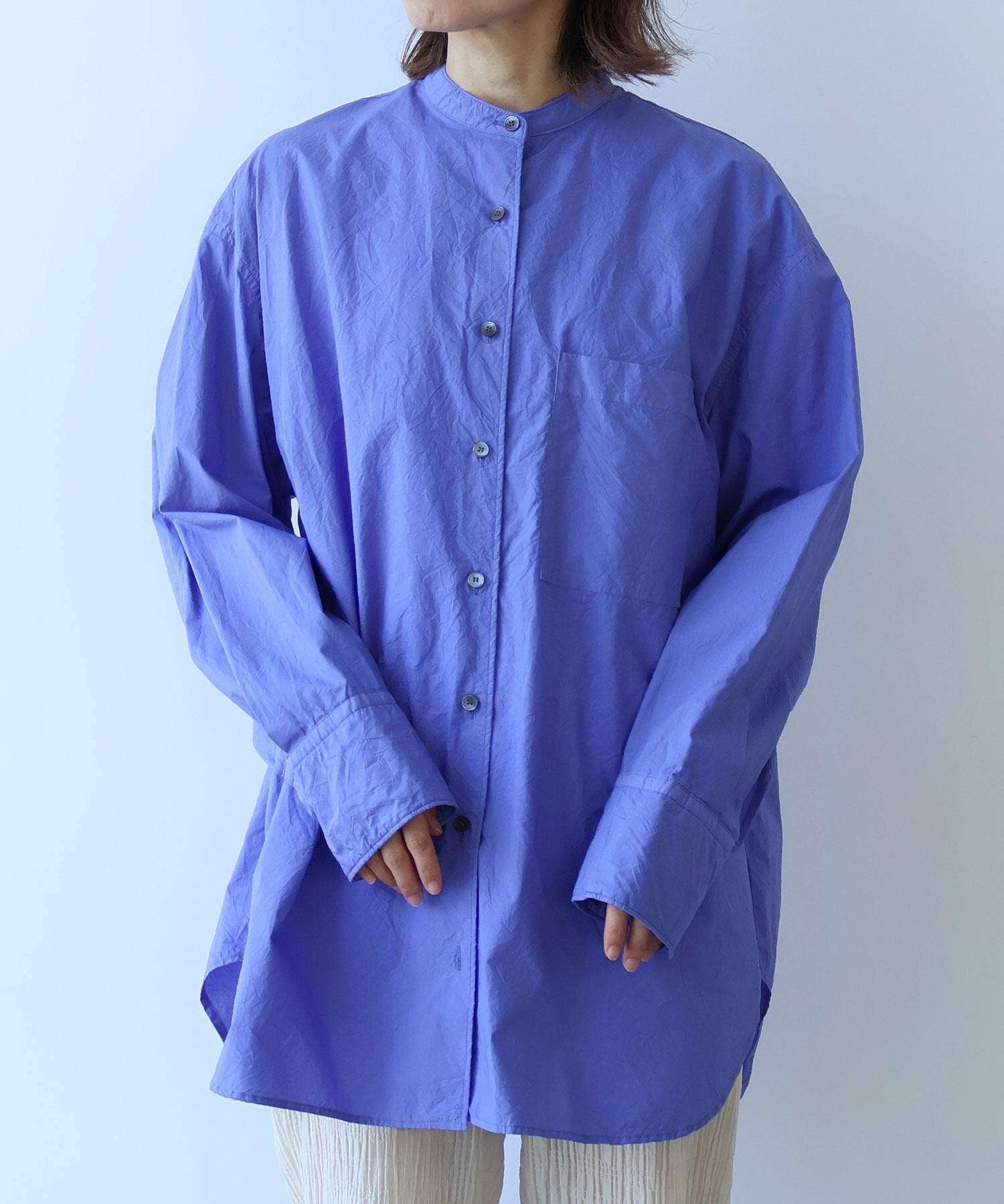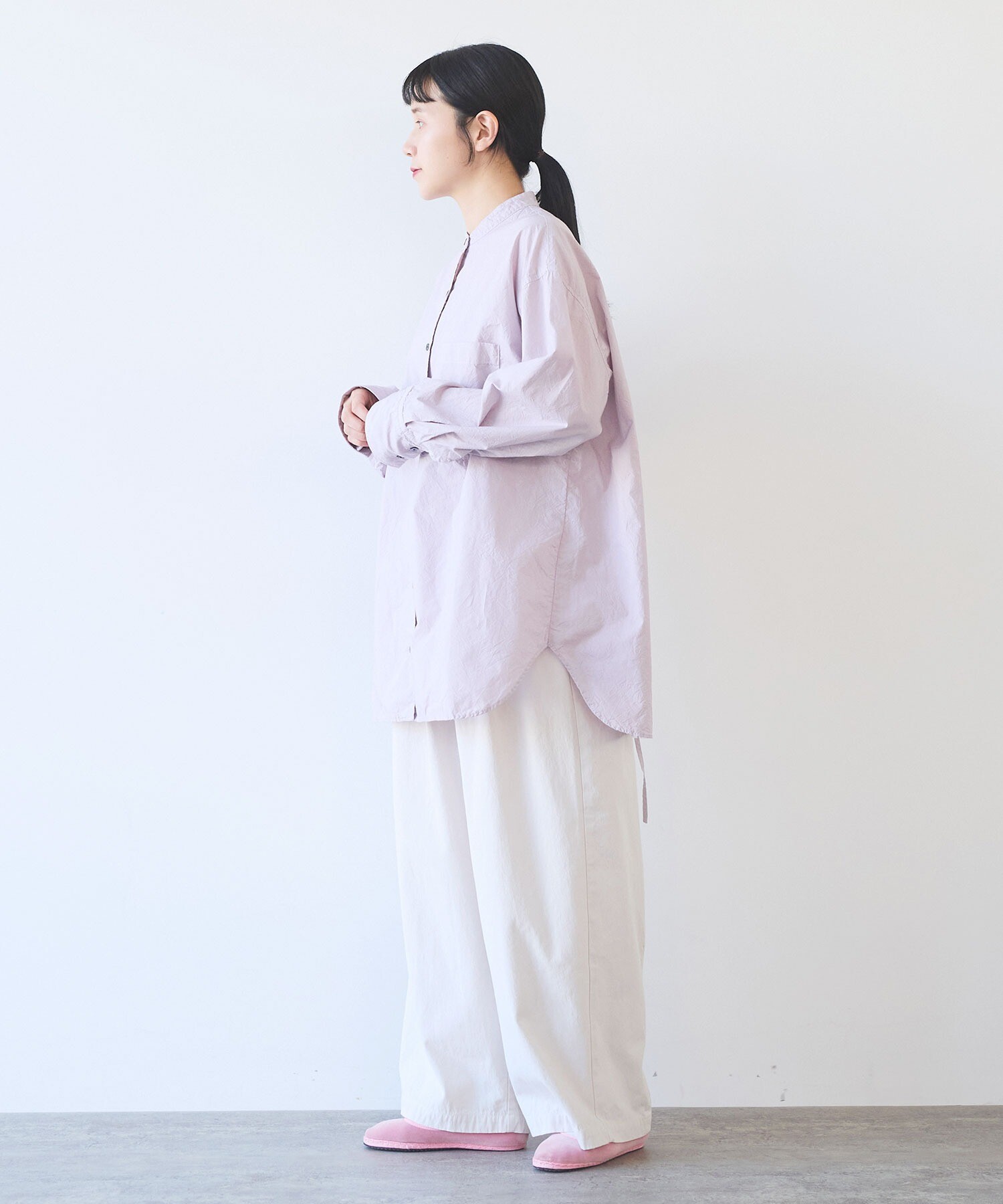 袖はゆったり、ちょっと長めで、メンズシャツを借りてきたみたいな抜け感も。