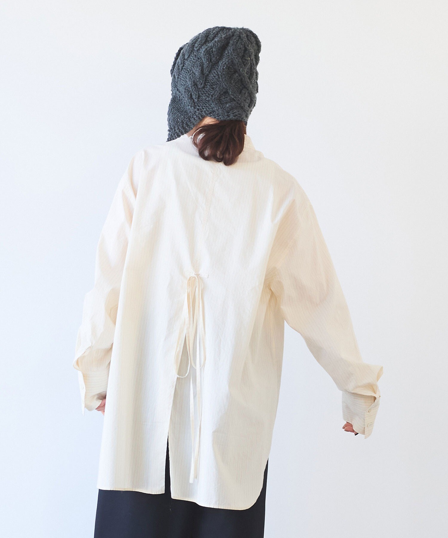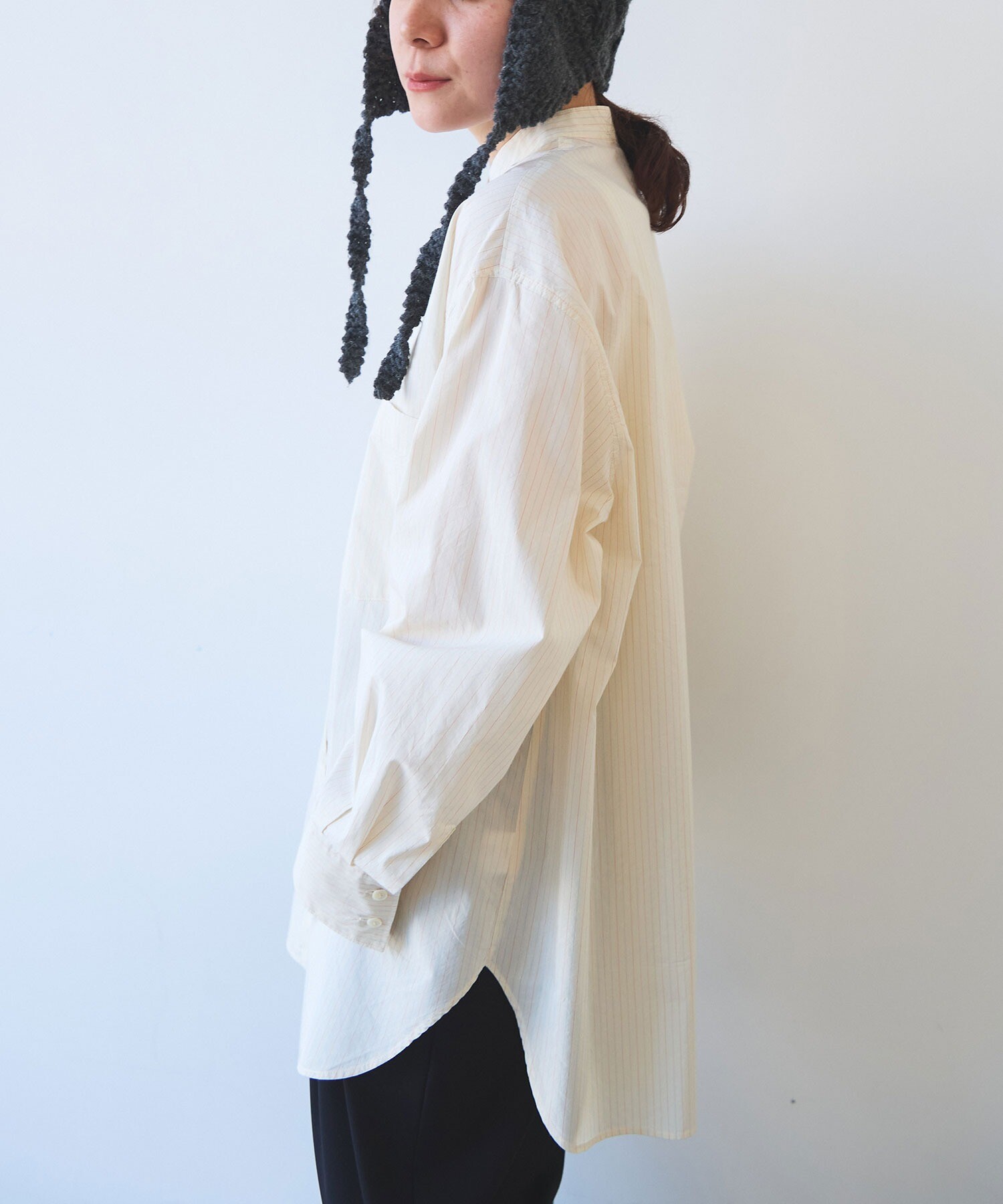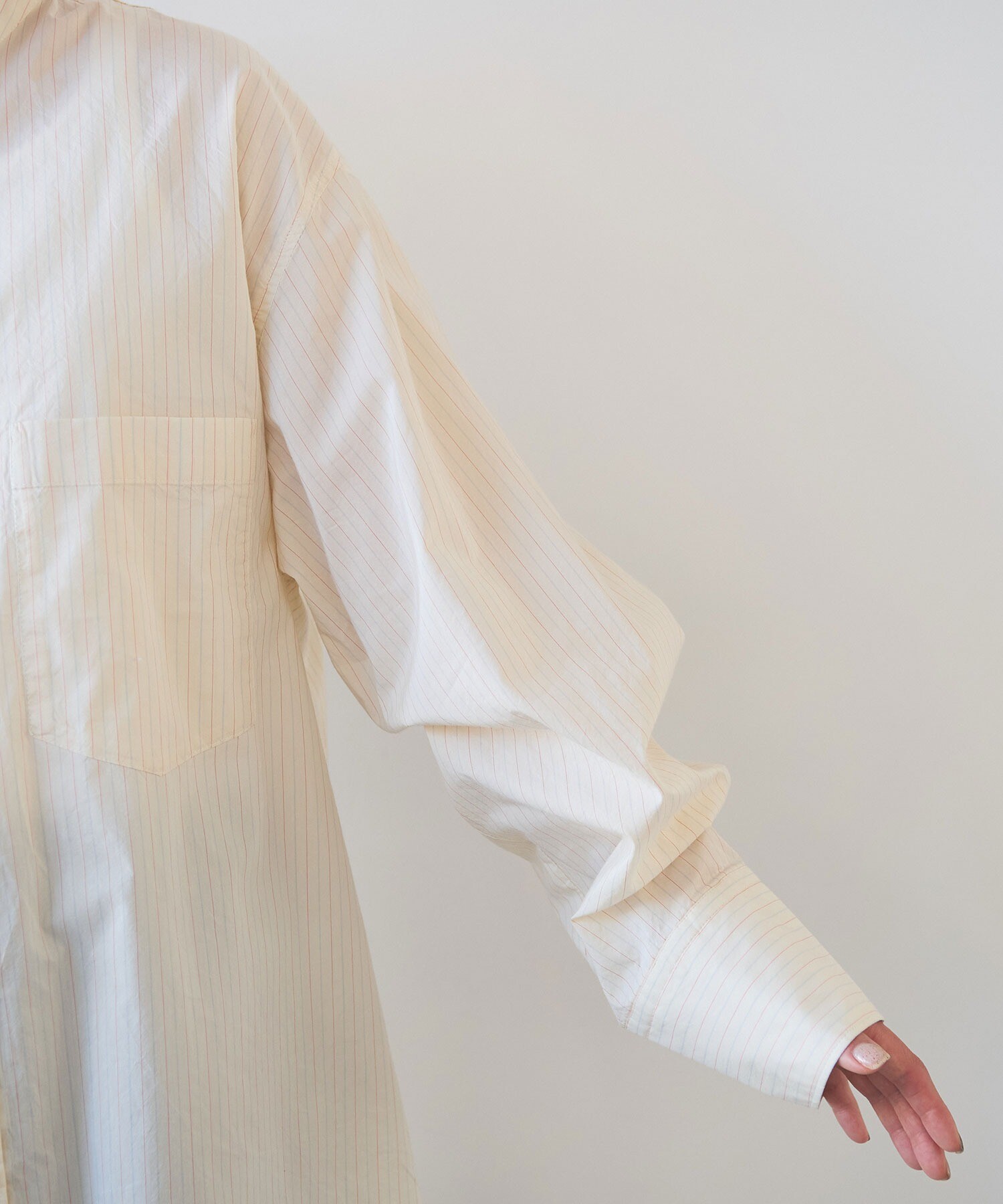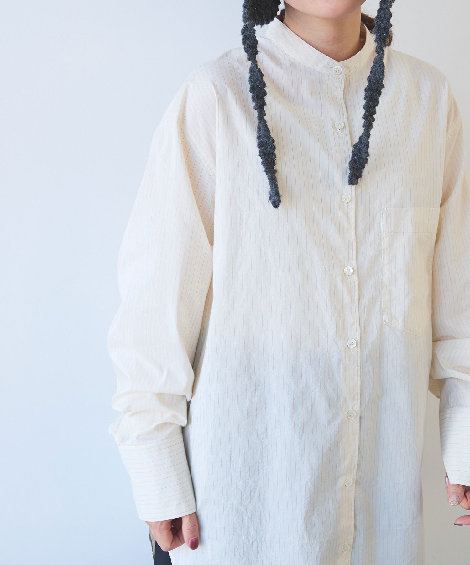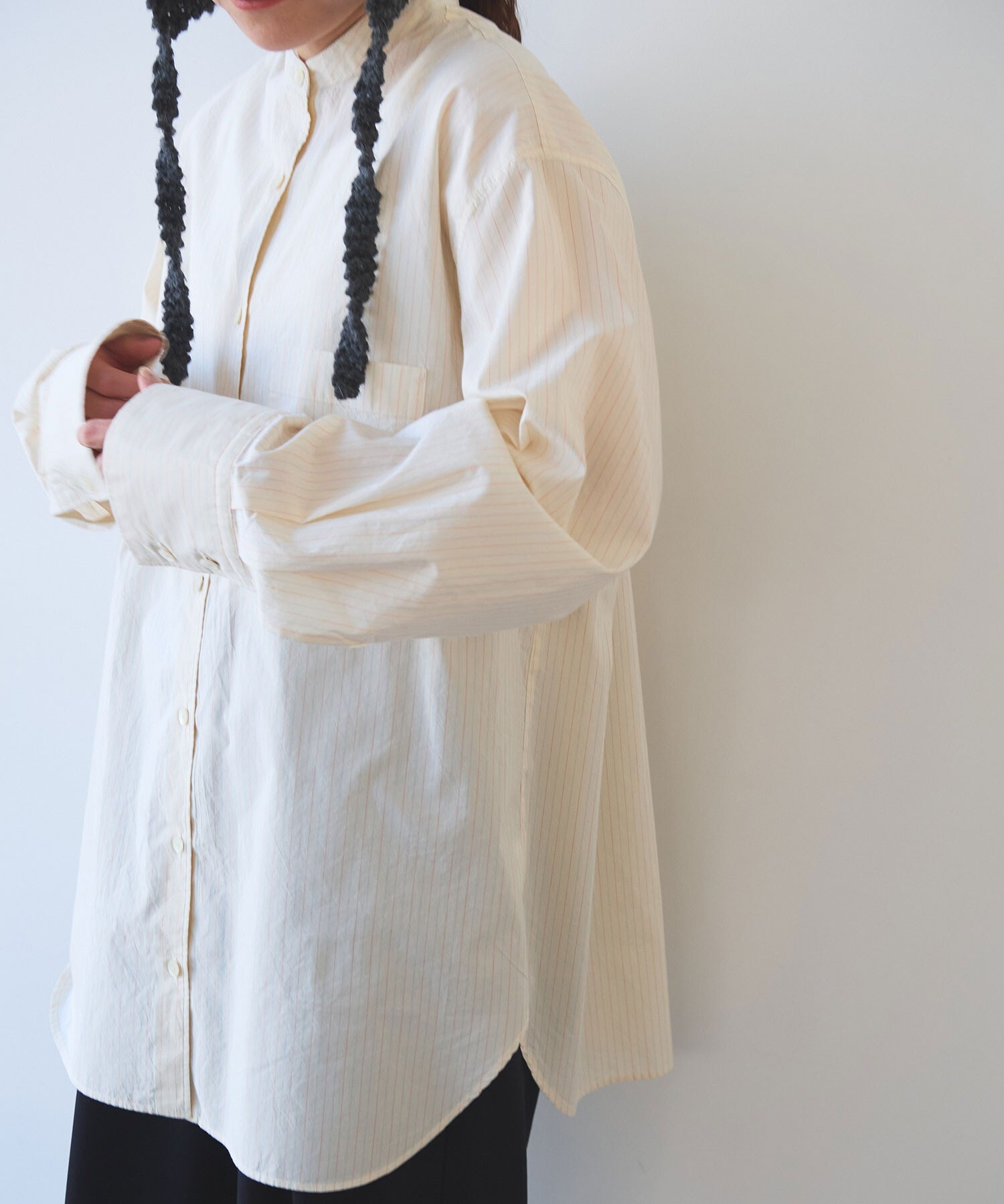 袖はゆったり、ちょっと長めで、メンズシャツを借りてきたみたいな雰囲気も。