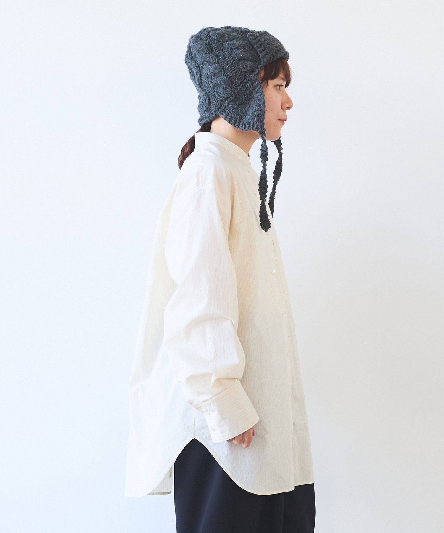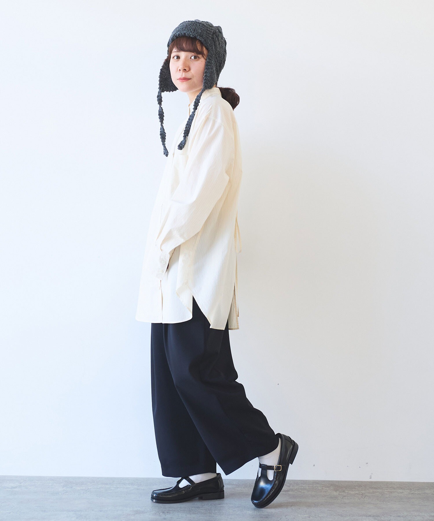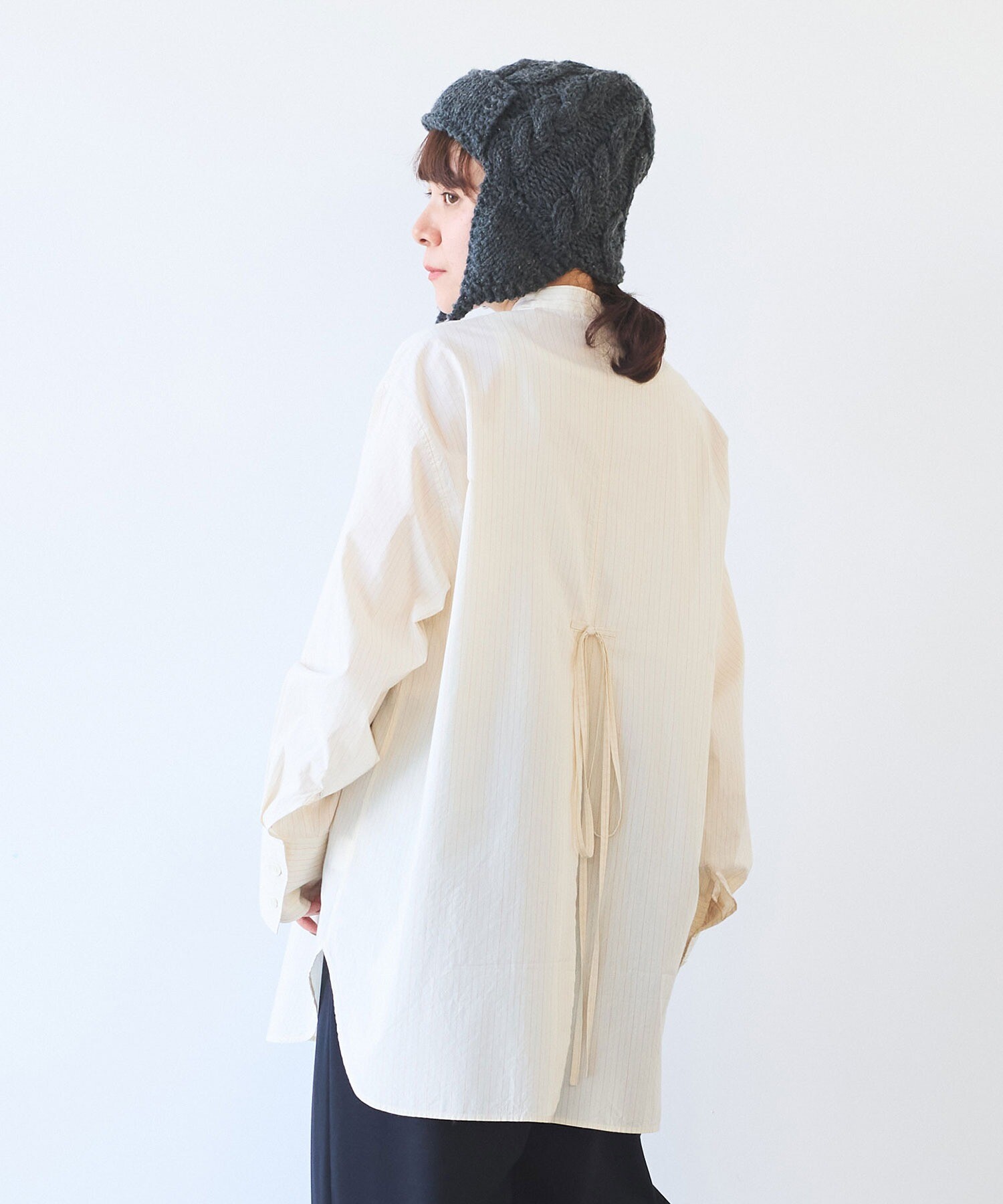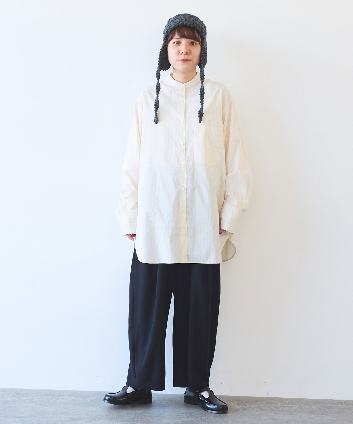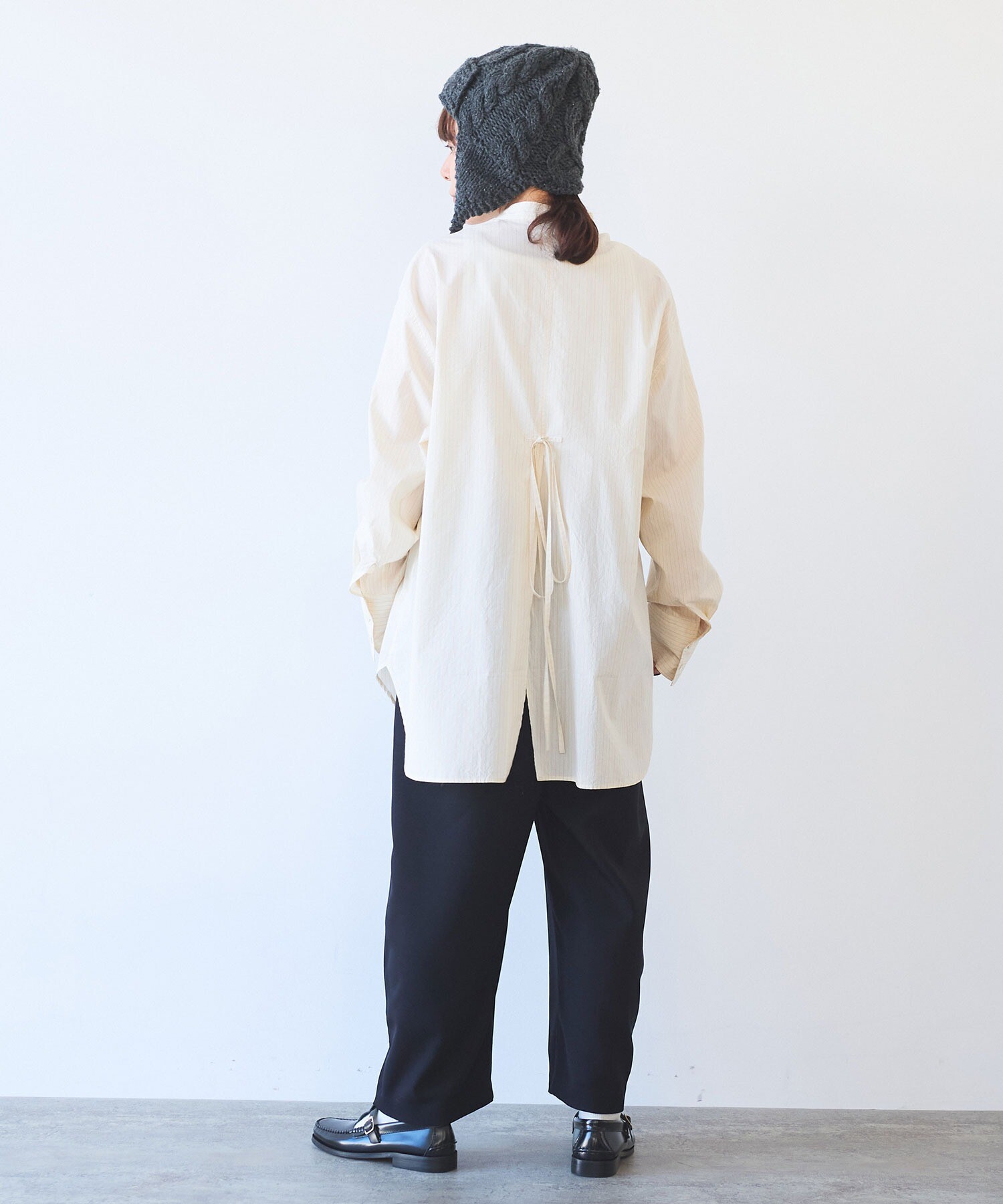 袖はゆったり、ちょっと長めで、メンズシャツを借りてきたみたいな雰囲気も。