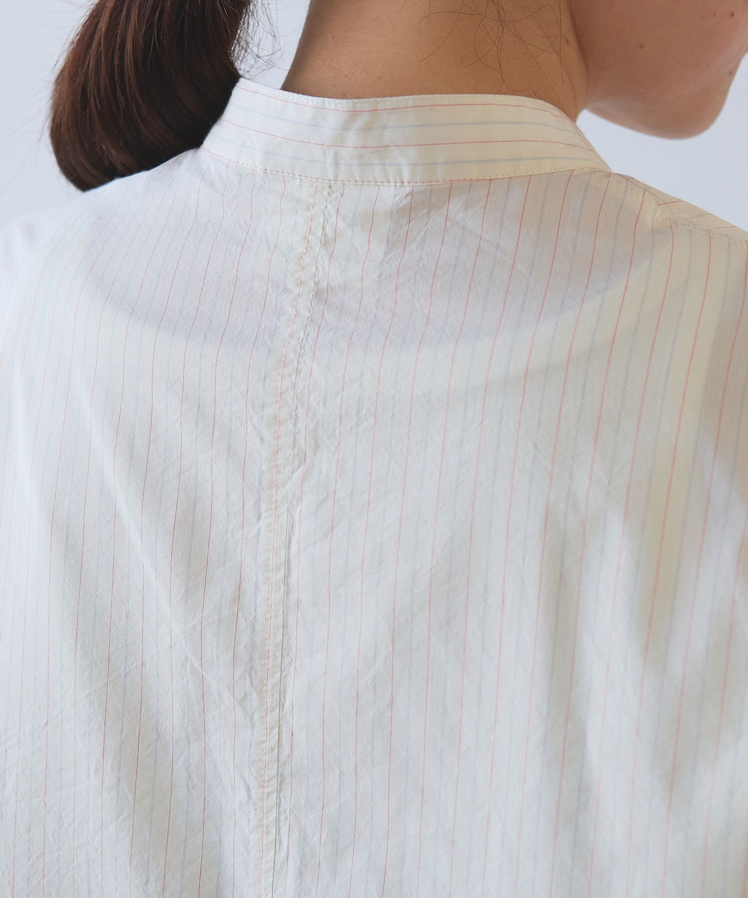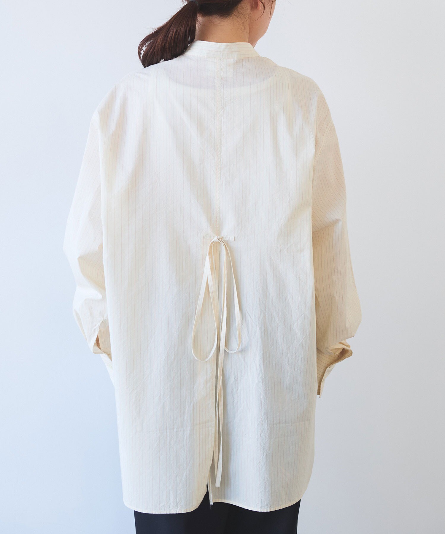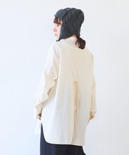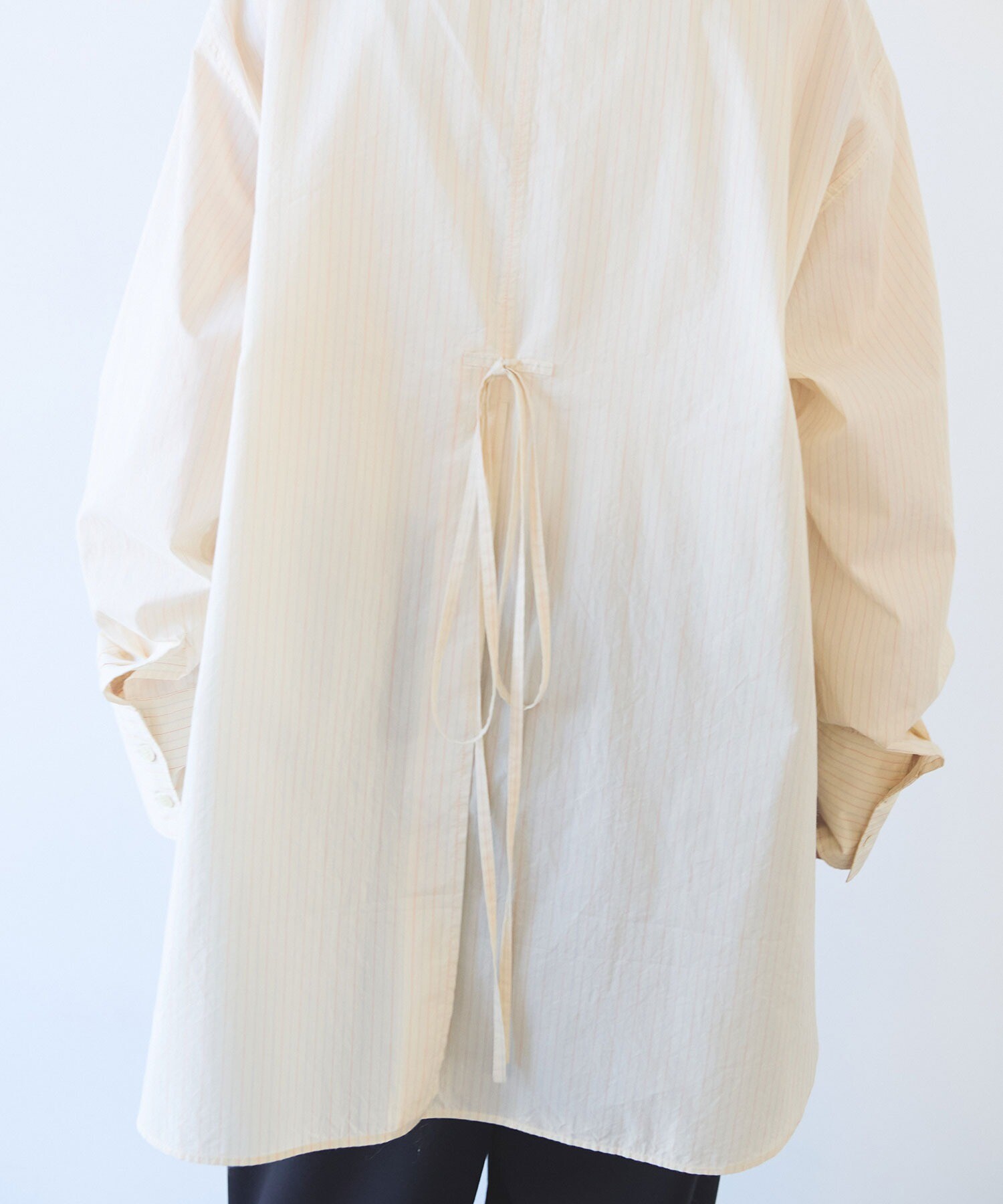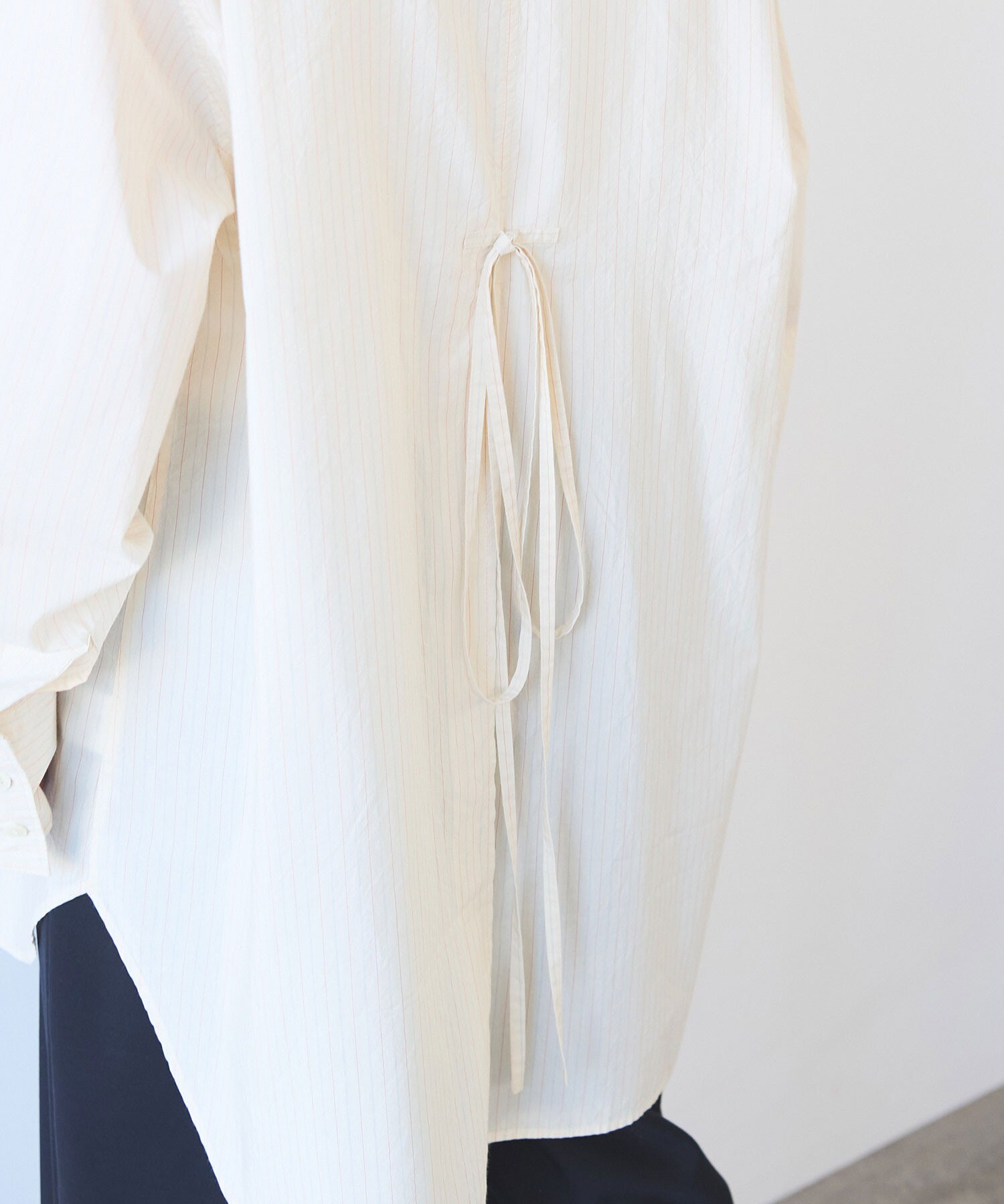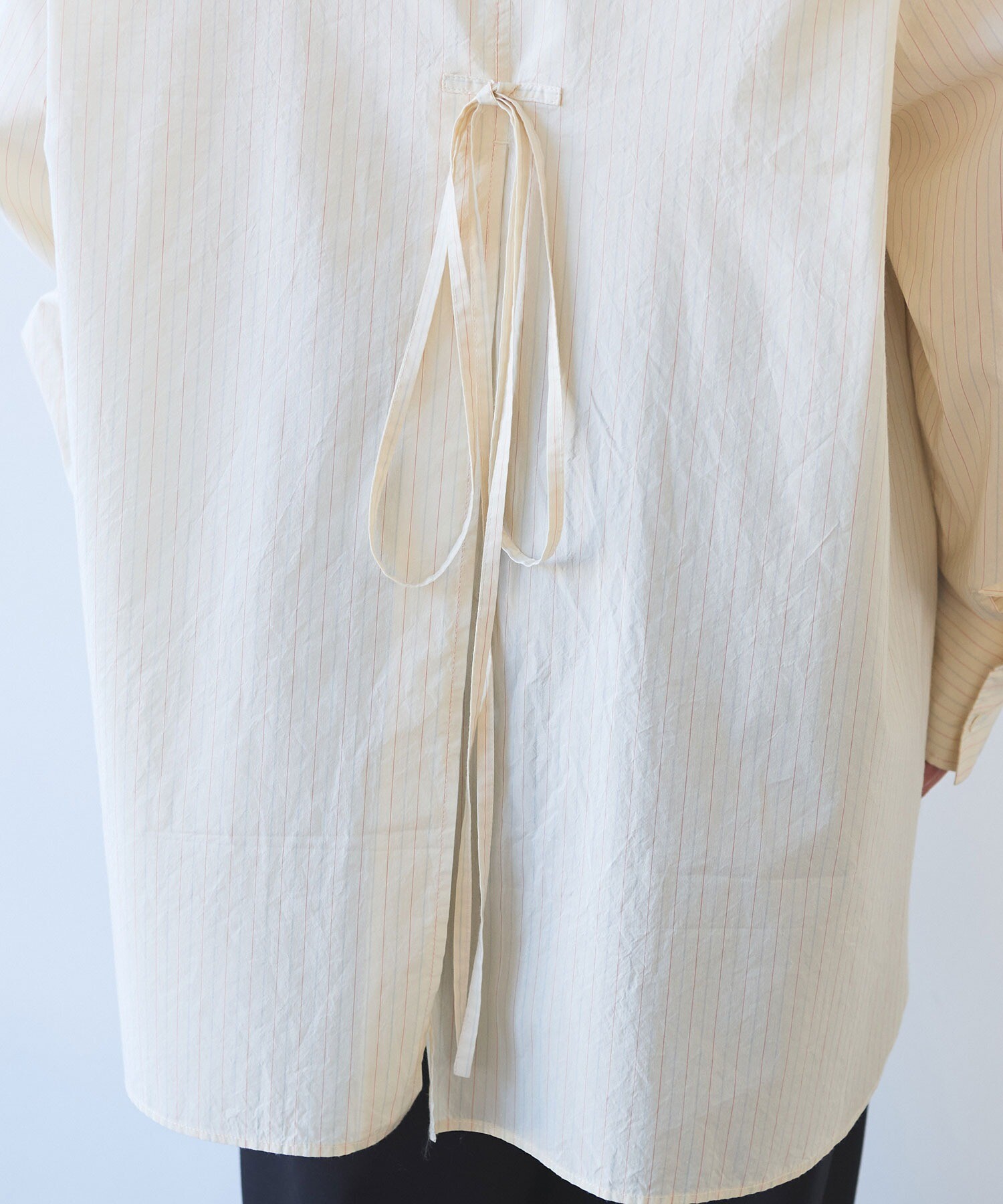 ●○コットンシルク ストライプ moe sleeves バックリボン シャツ