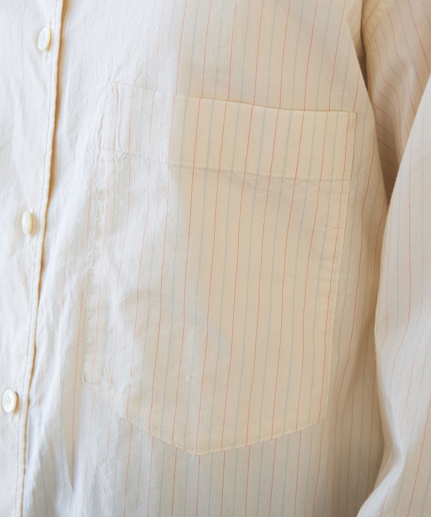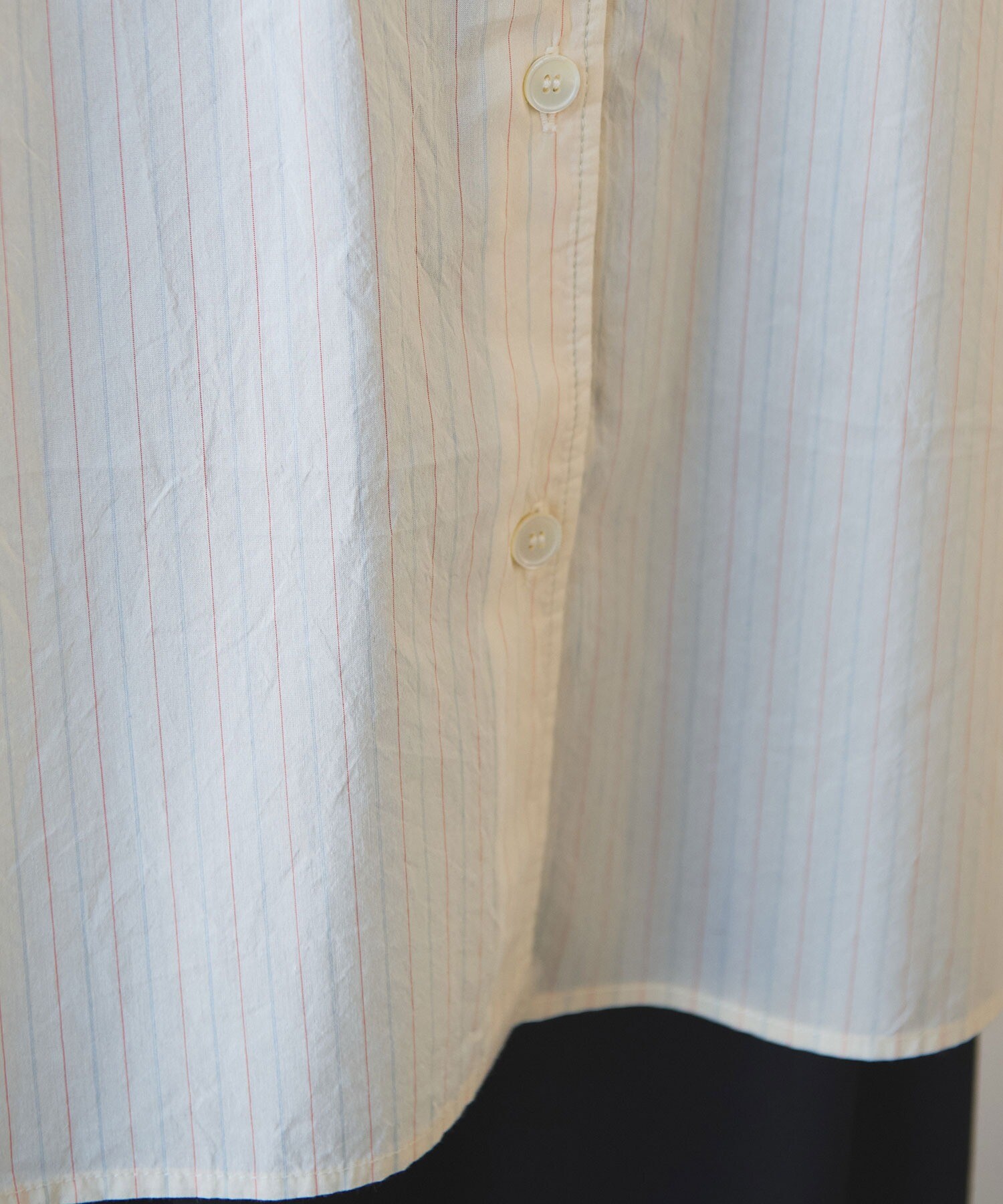 さりげないけれど、ちょっと嬉しいアクセントのあるコットンシルクのピンストライプシャツ。