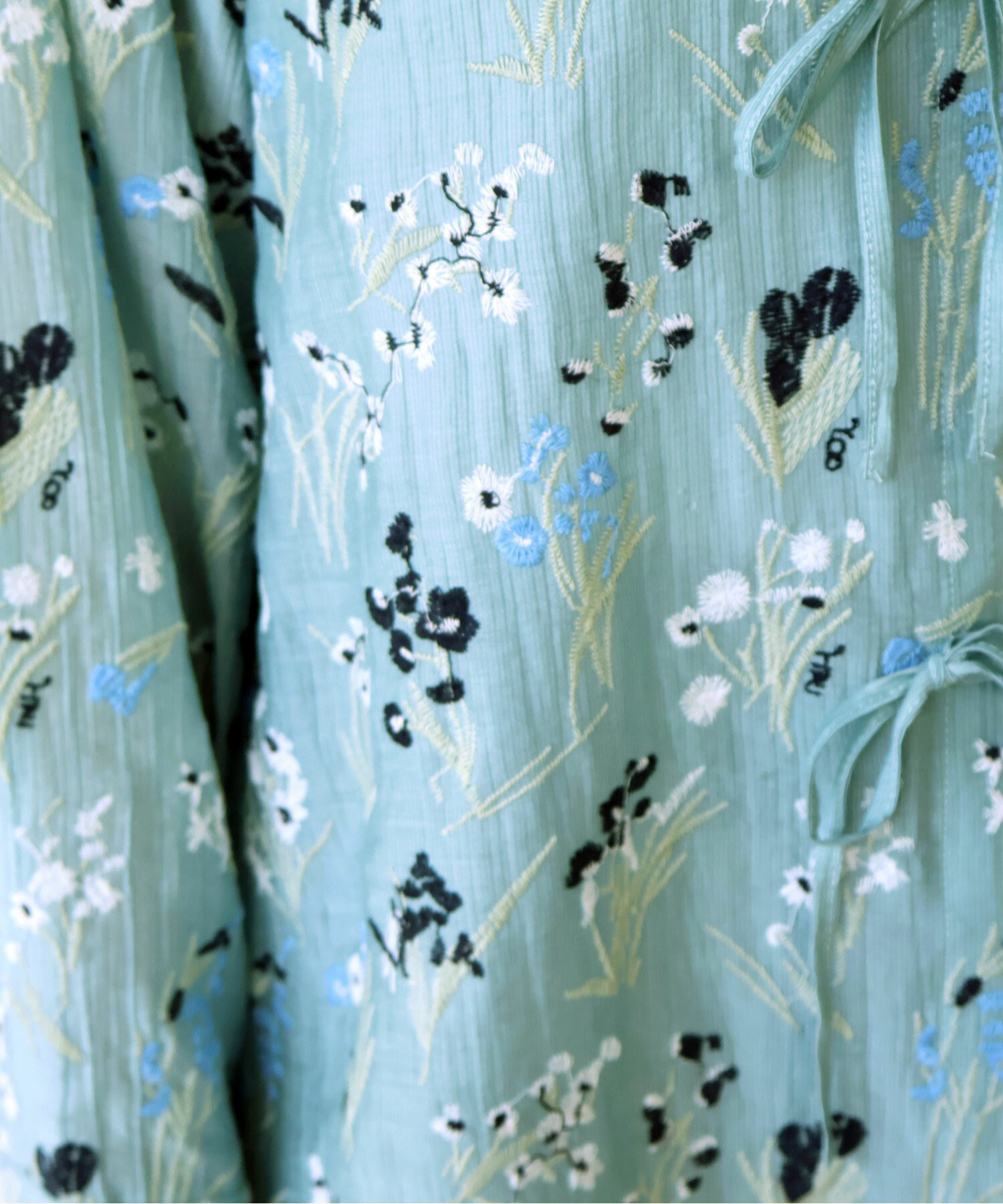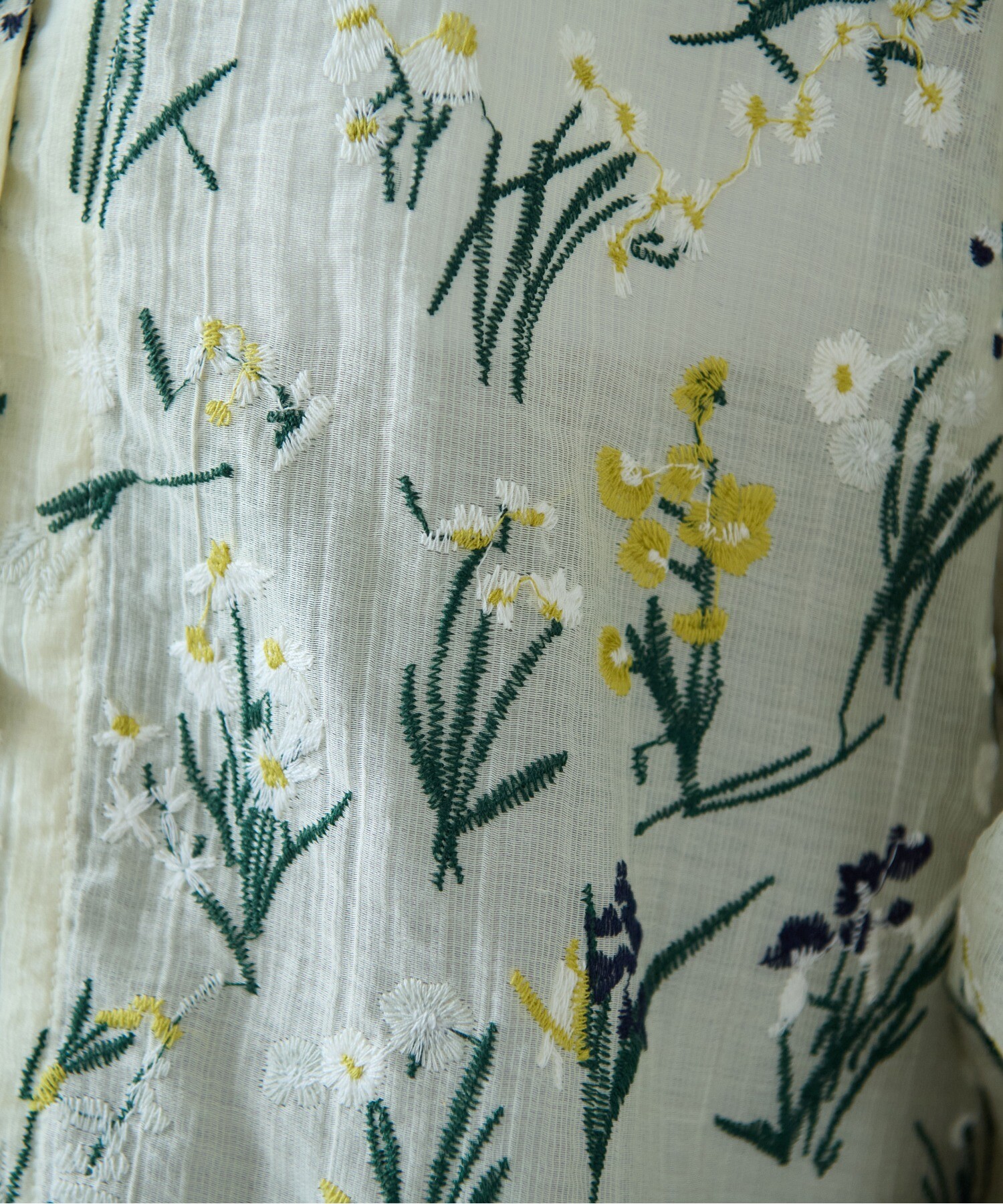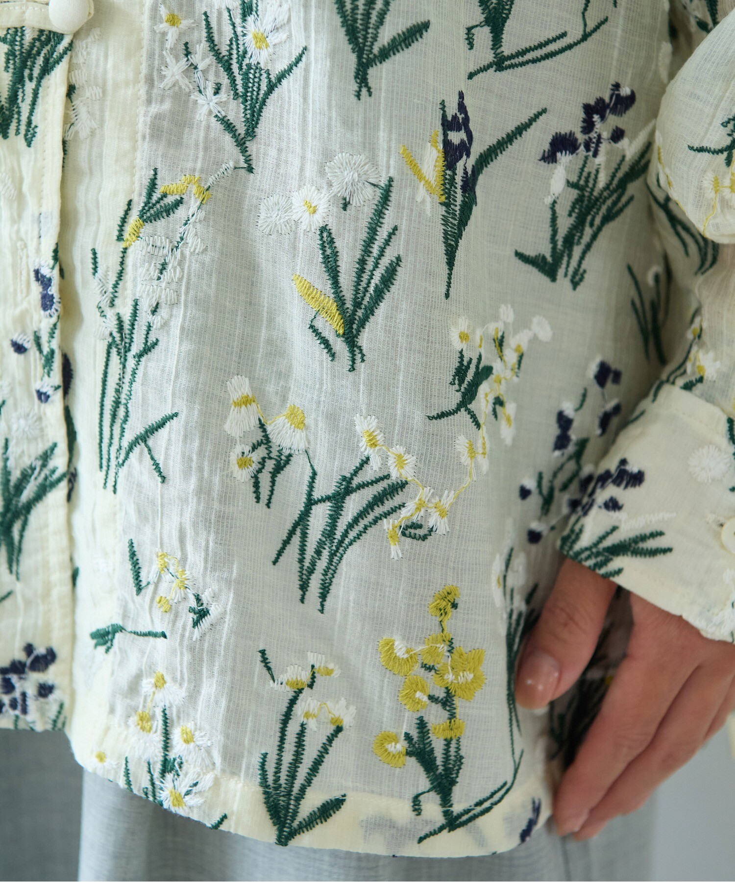 生地の質感と刺繍のコントラストがきいていて、一枚でしっかり“主役”になる存在感です。