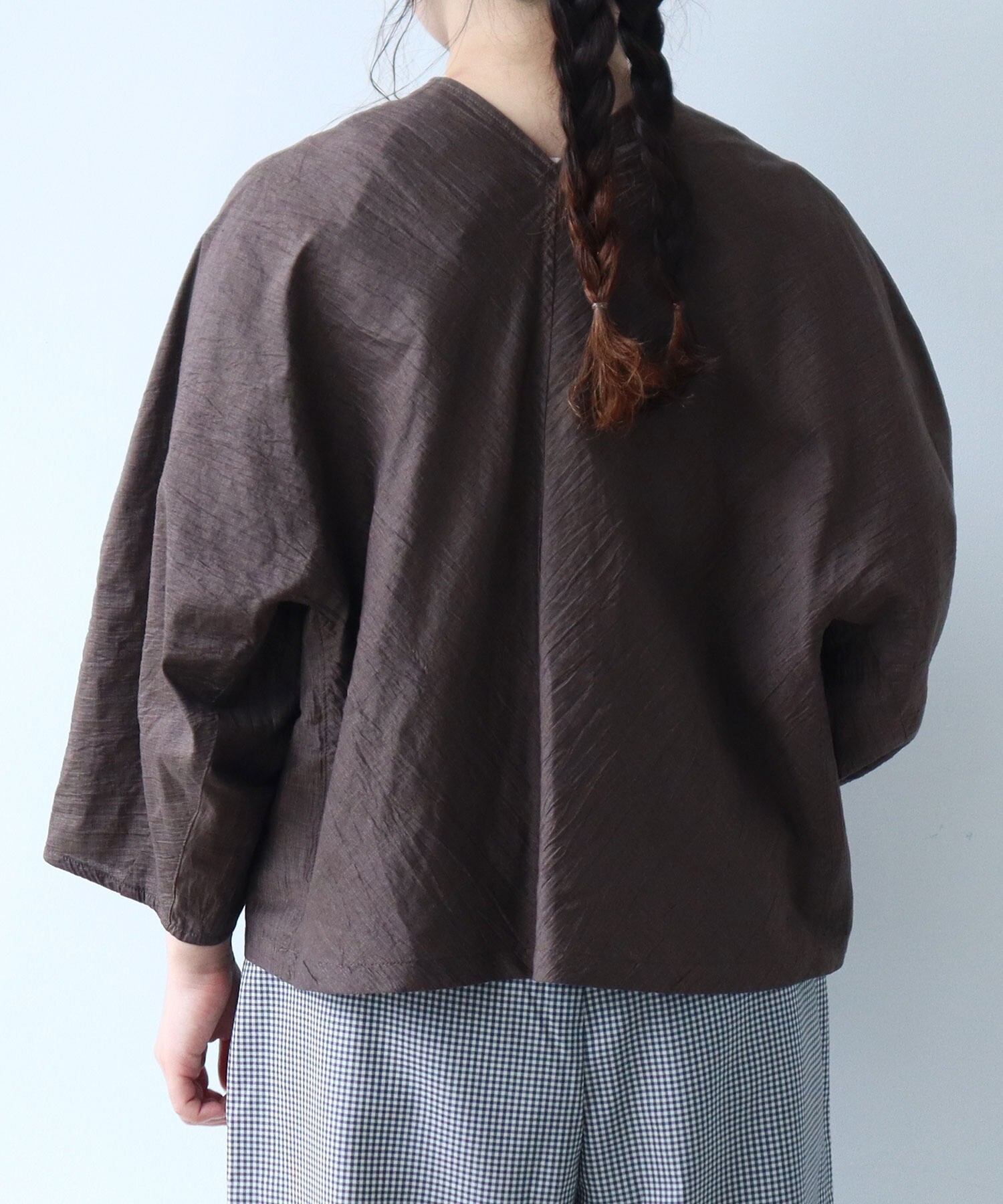 少しショートめな着丈は、バランス良く合わせやすく、デイリーシーンに気軽に手に取りたい一枚です。