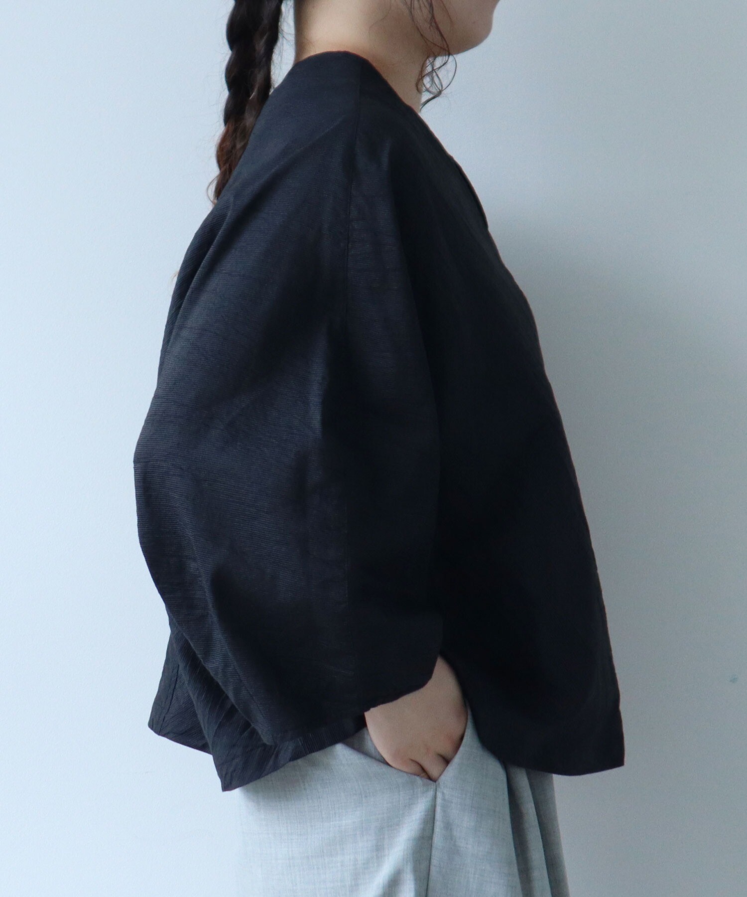 まち付きのドルマンスリーブや袖に向かって丸みを帯びたデザインなど、