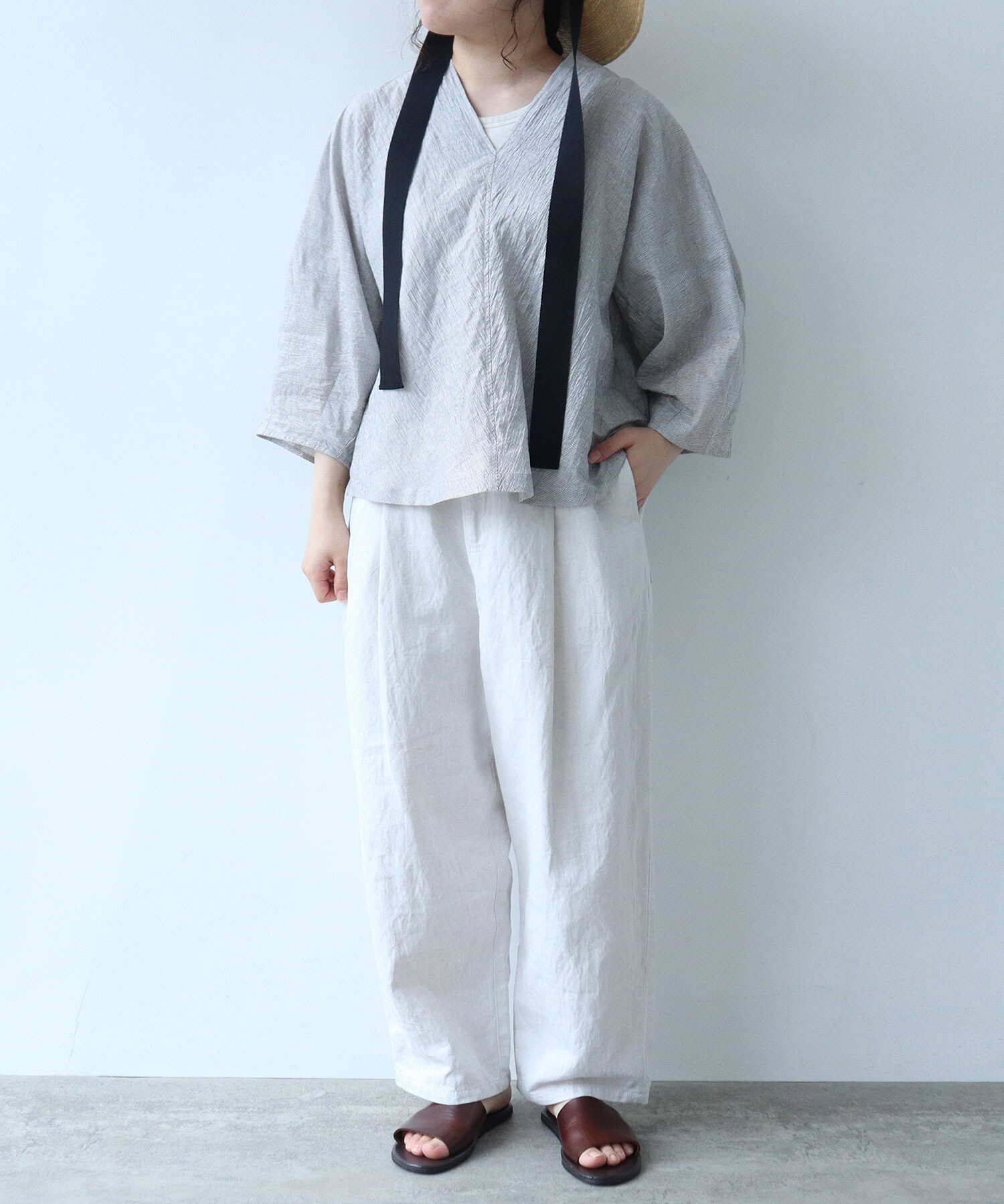 | 素材 | 【グリーン】麻 53%, コットン27%, ポリエステル20% 【チャ・ネイビー・クロ・クロ×クロ】麻54%, コットン27%, ポリエステル19% |